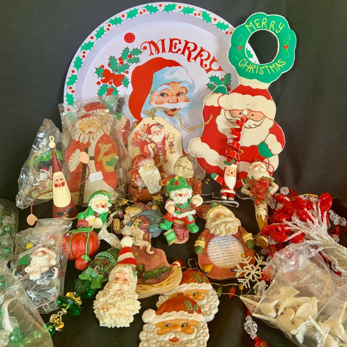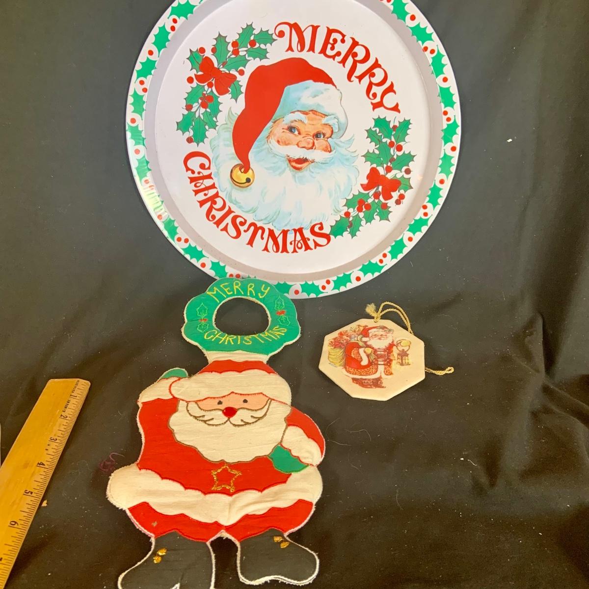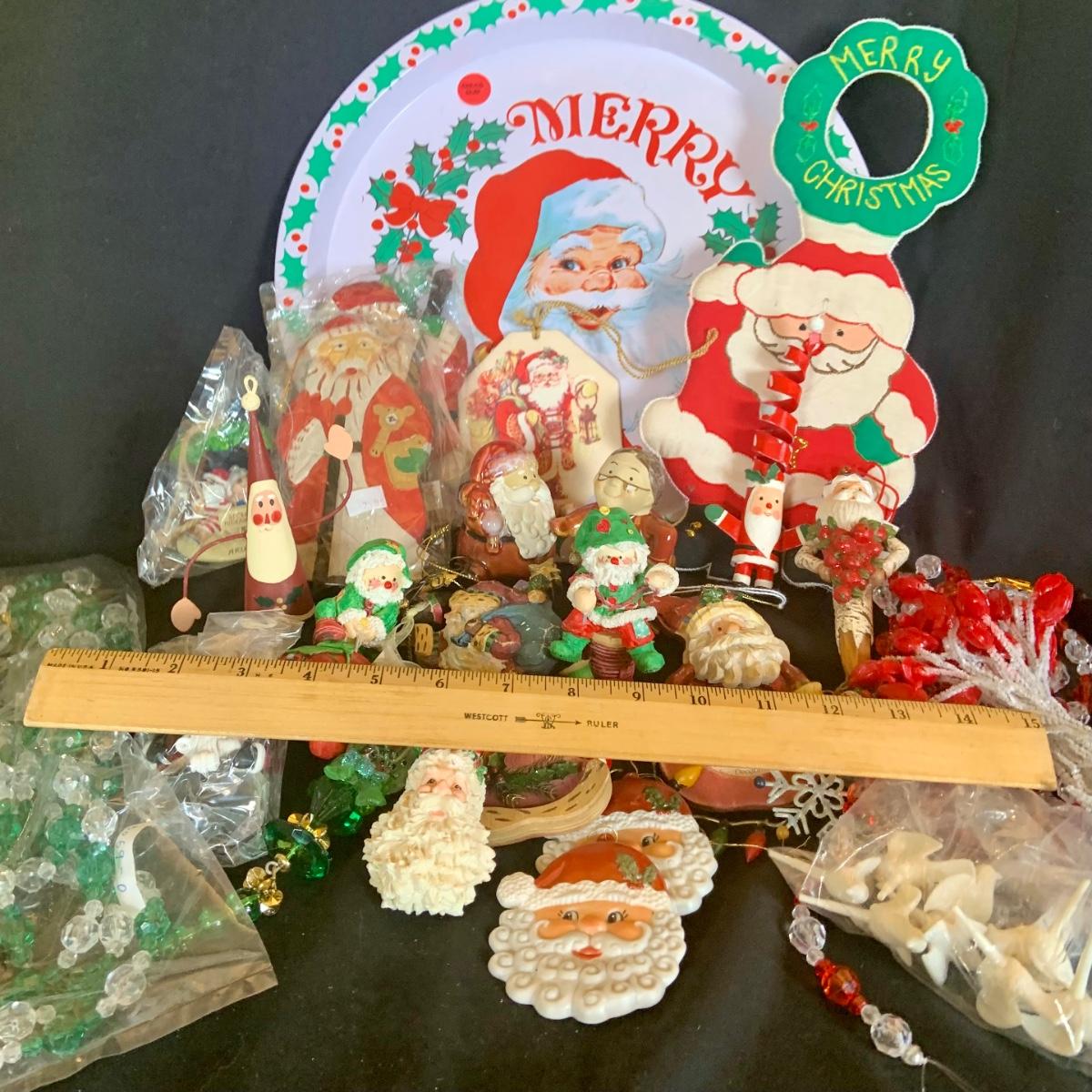 LOT:110: Vintage Santa Tray and Assortment Of St Nick Decorations