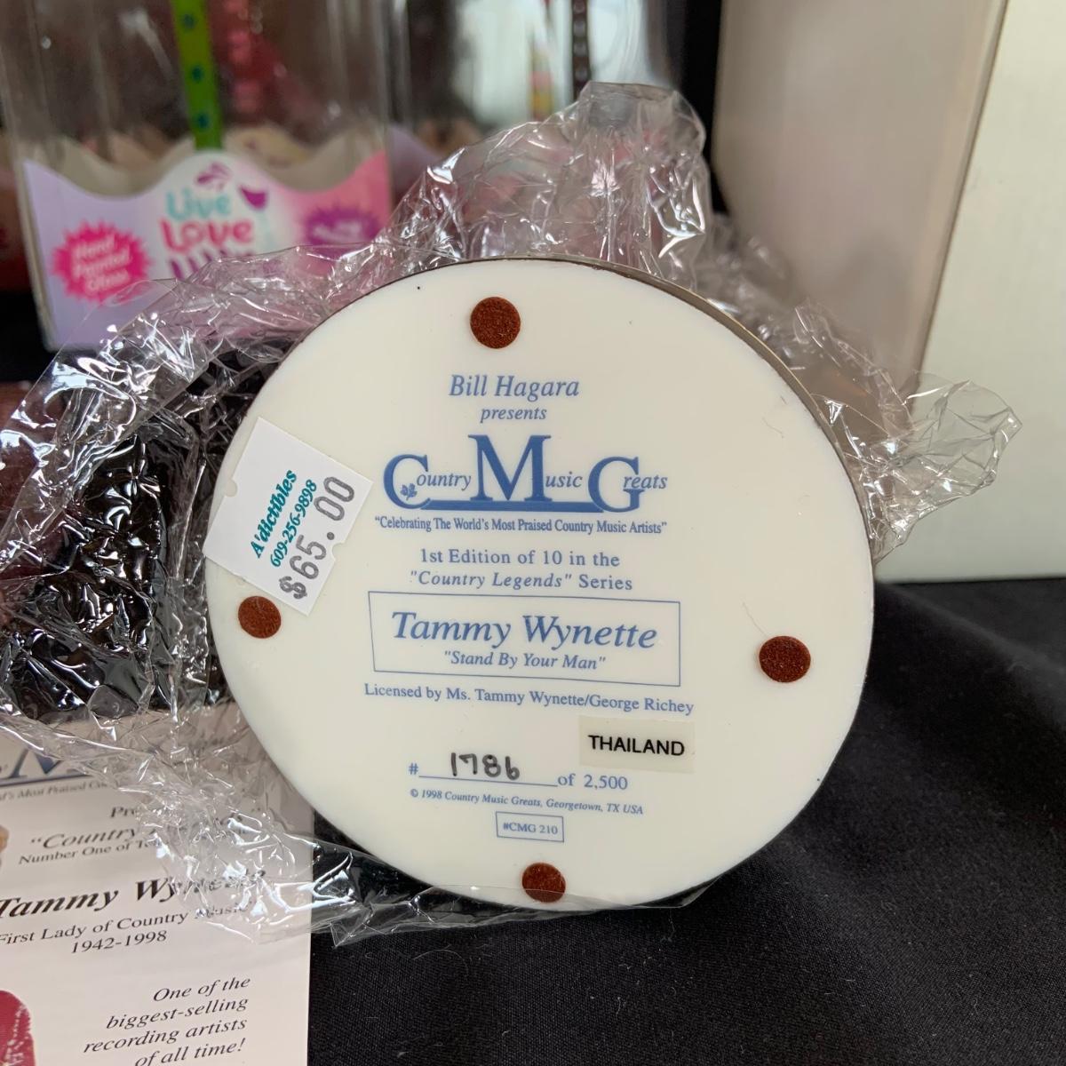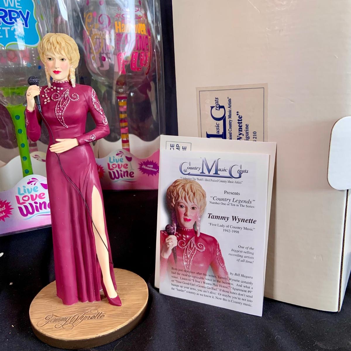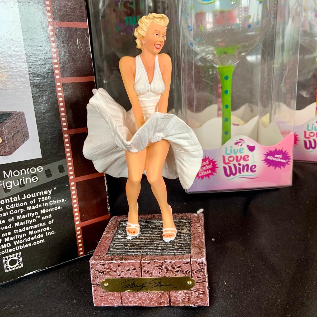 LOT:121: Cheers to Marilyn and Tammy- Rare Marilyn Monroe Music Box, a Tammy Wynette Numbered Statue and Whimsical Wine Glasses- All In Original Boxes