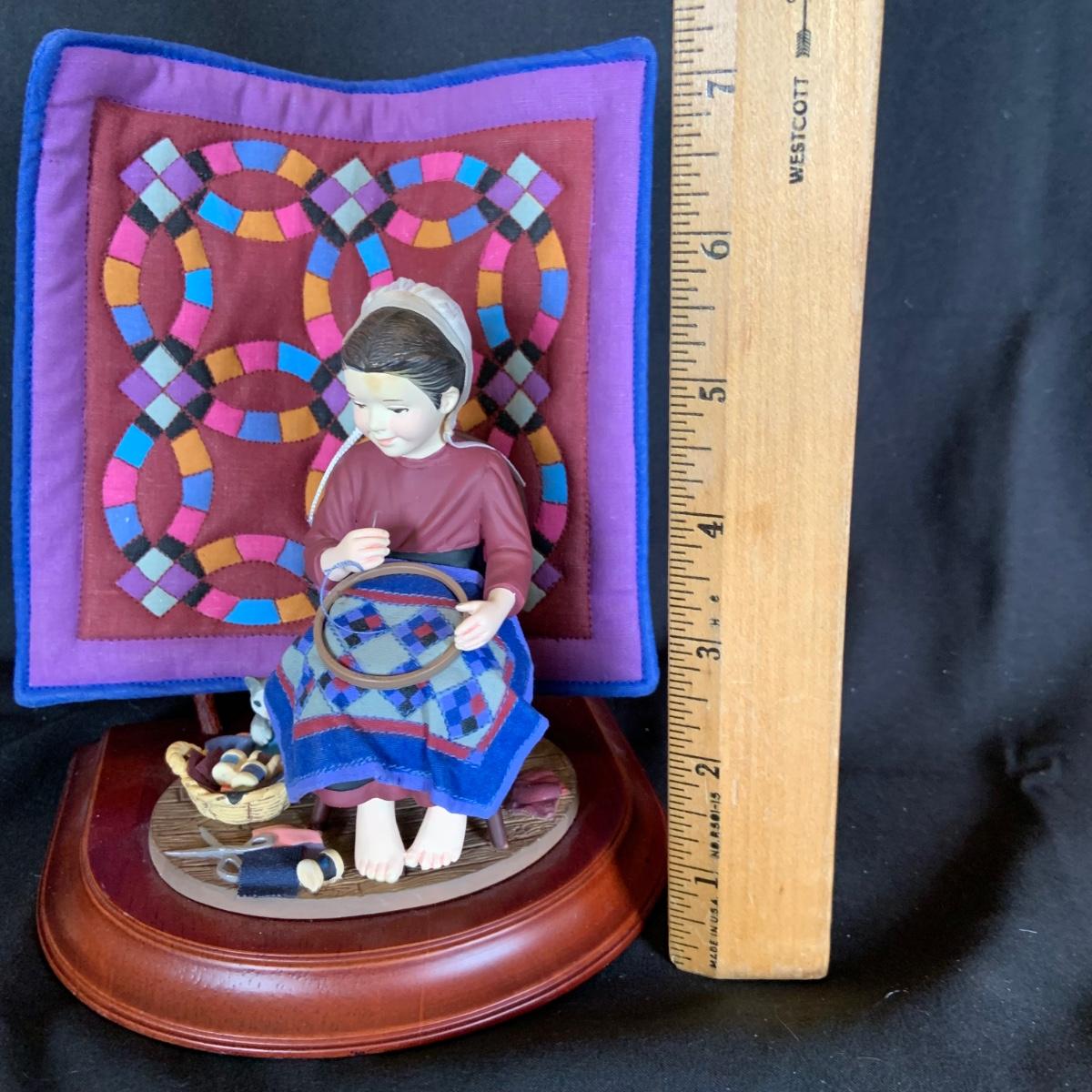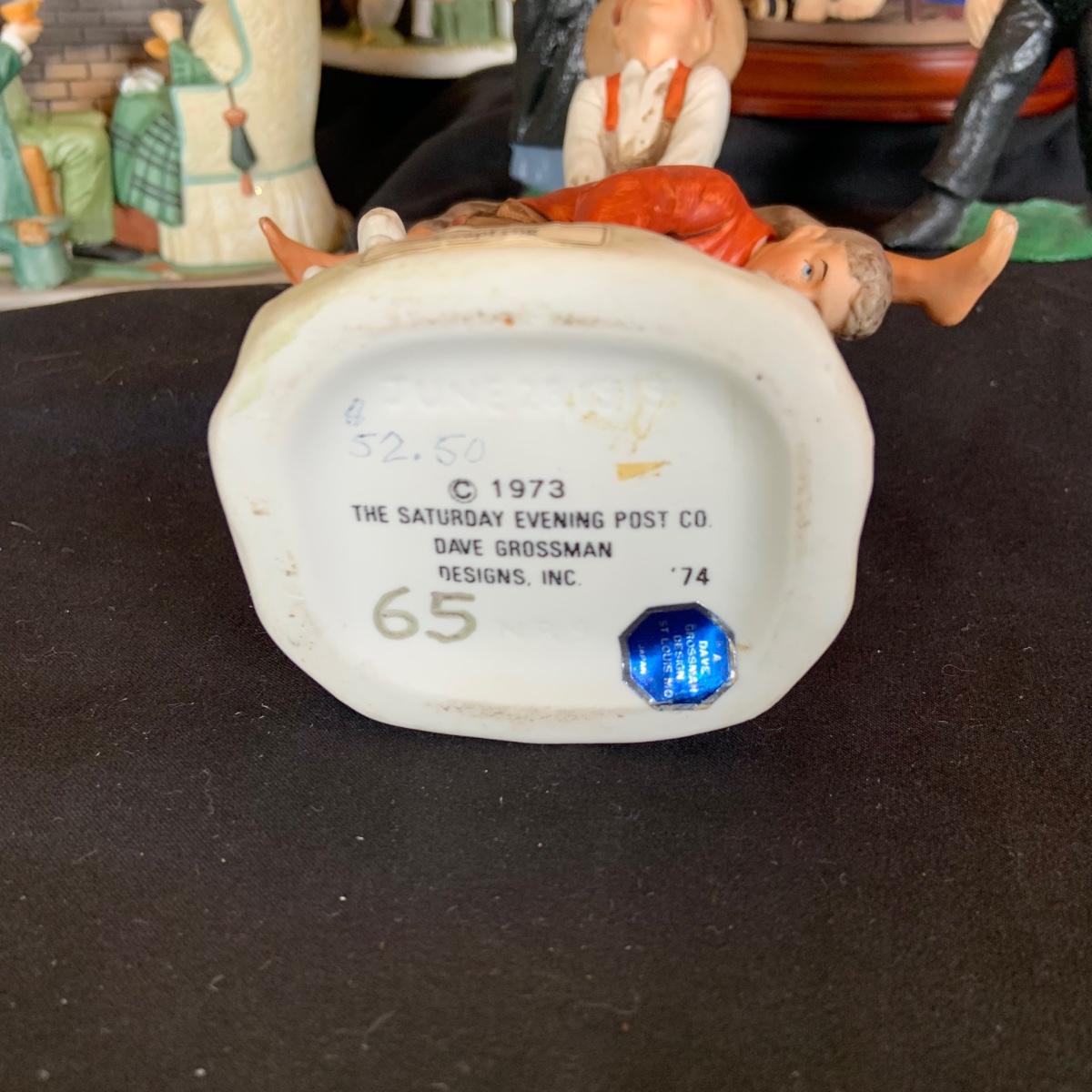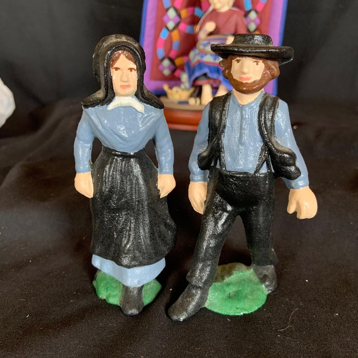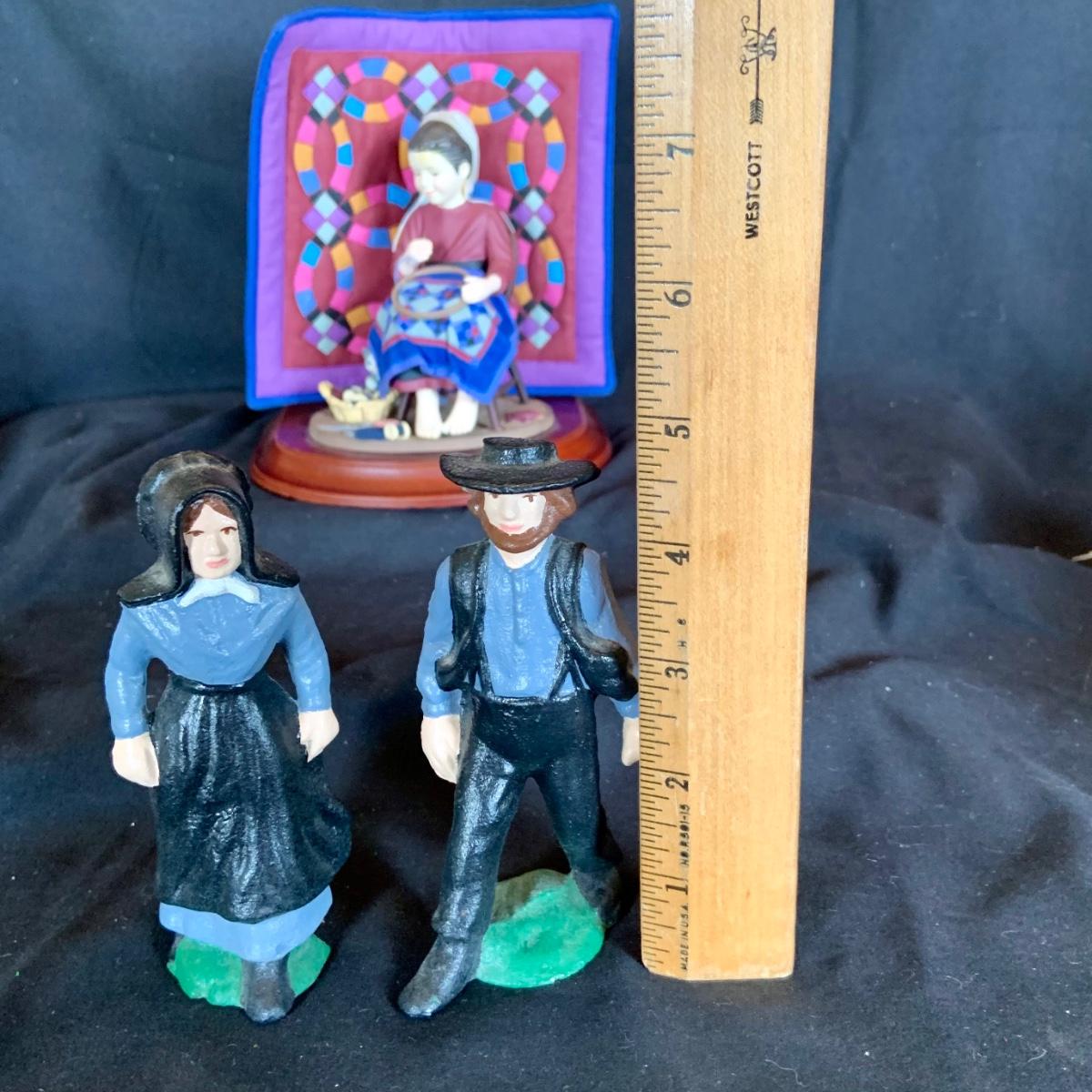 LOT:122: Country Living Collection Including Cast Iron Amish Couple, Amish Girl Quilting Figurine, Norman Rockwell Figurines, Homco Denim Day Figurines and More
