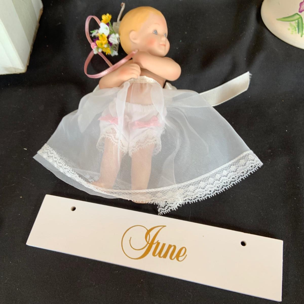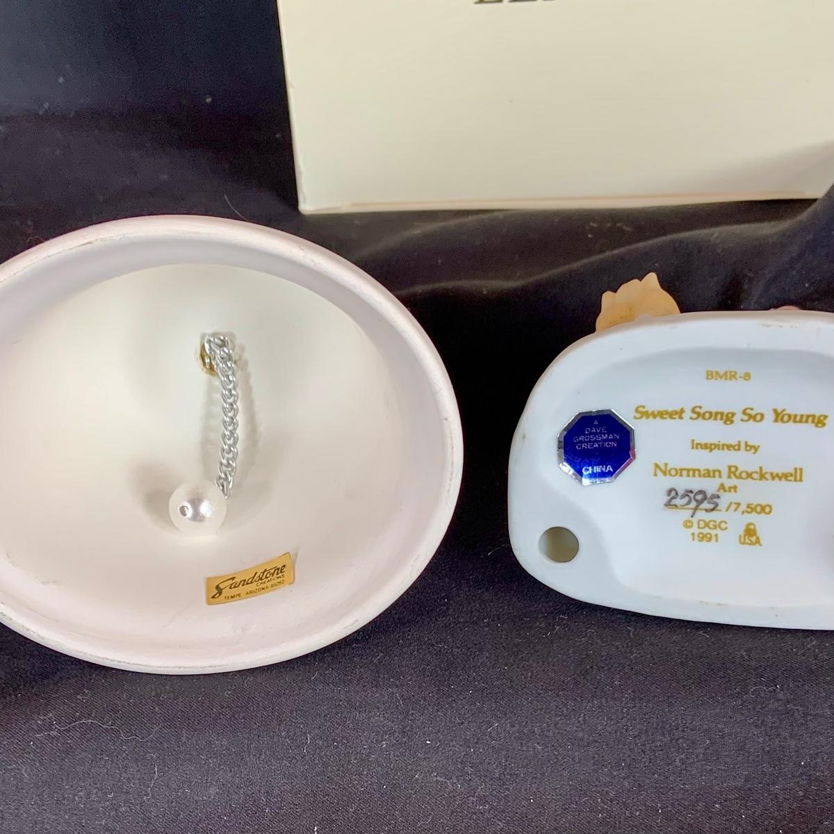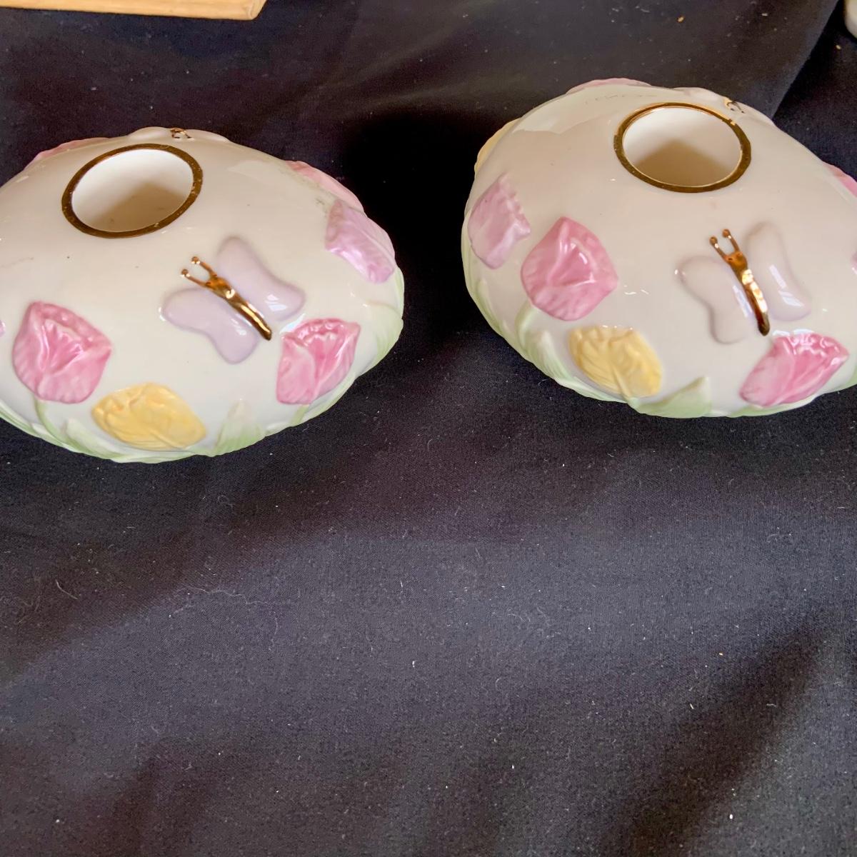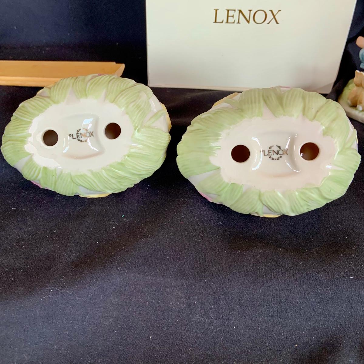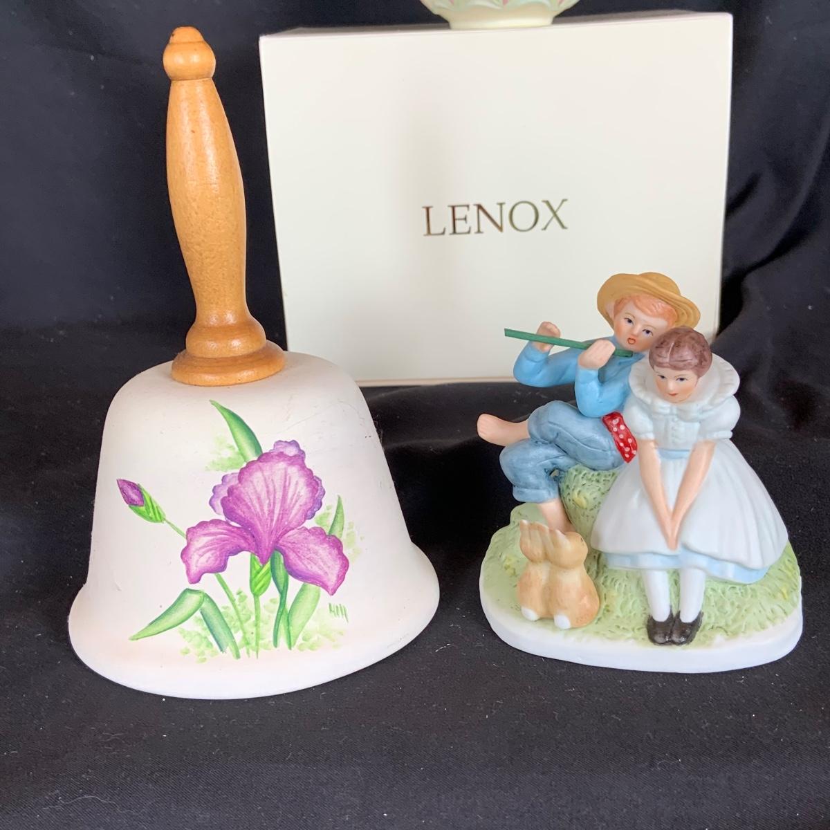 LOT:124: Think Spring - Lenox Spring Egg Shaped Candle Holders, Lenox Egg Shaped Trinket Box with Chick In Original Box, Ashton Drake June Bride Doll, Flag, Bell and More