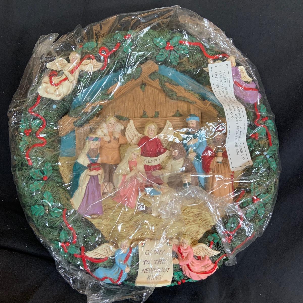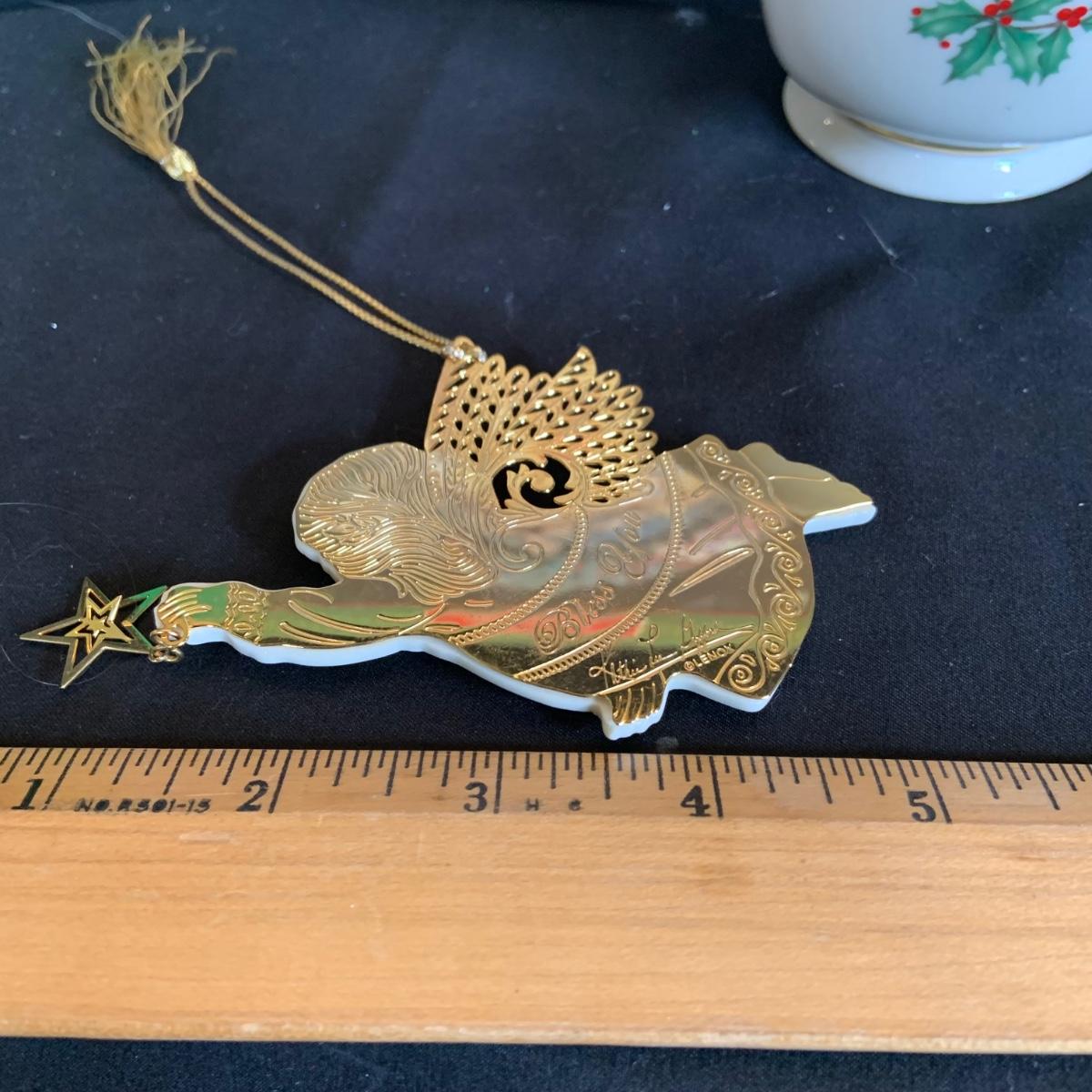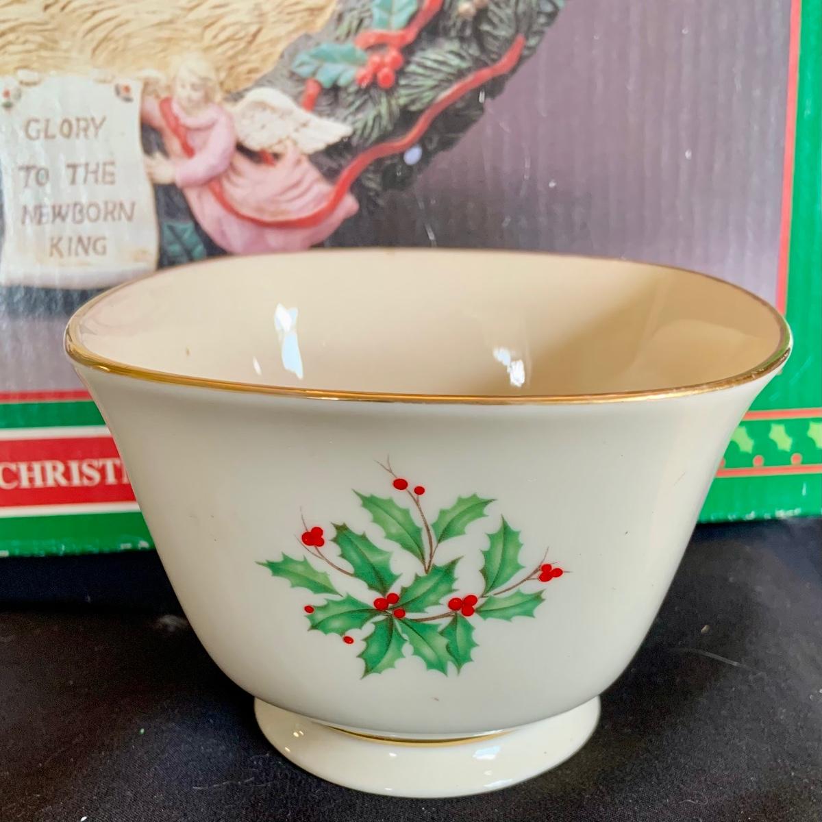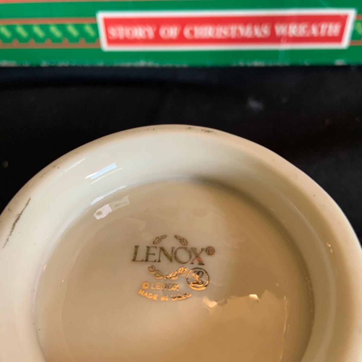 LOT:140: Lenox Holly and Berry Pattern Plates and Bowl, Lenox Angel and Heart Ornaments and a Story of Christmas Wreath In Box