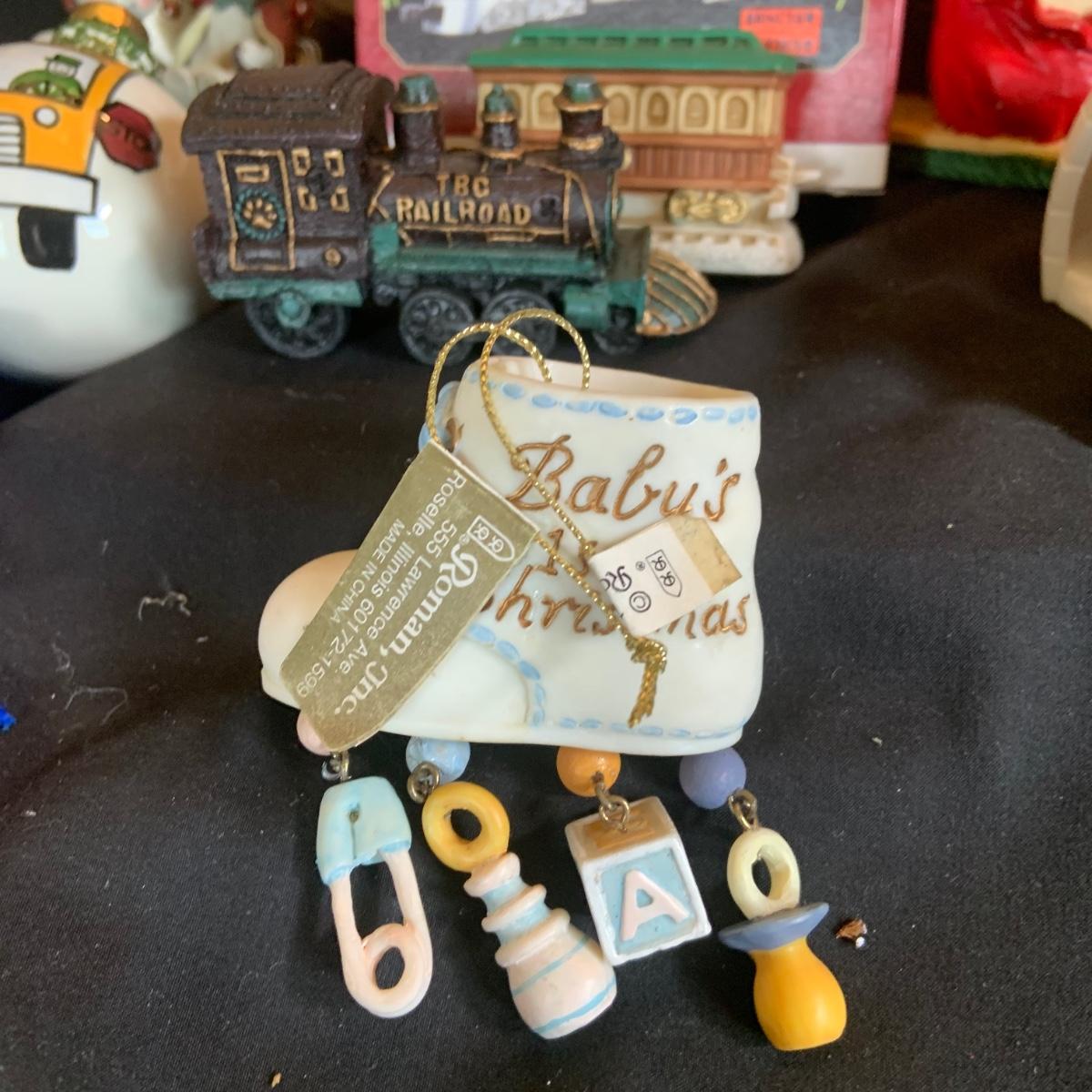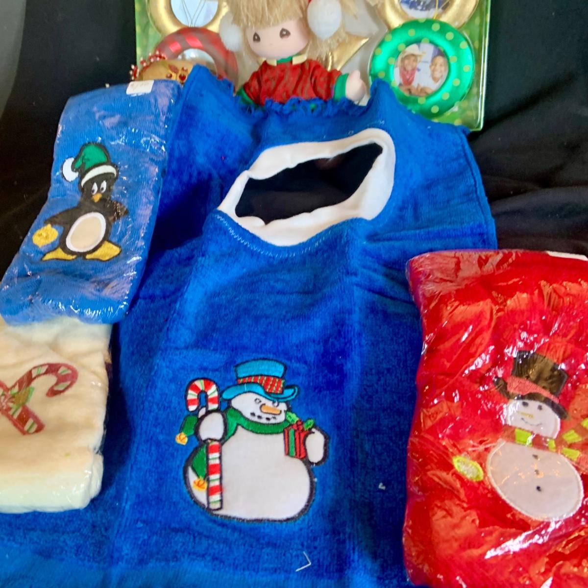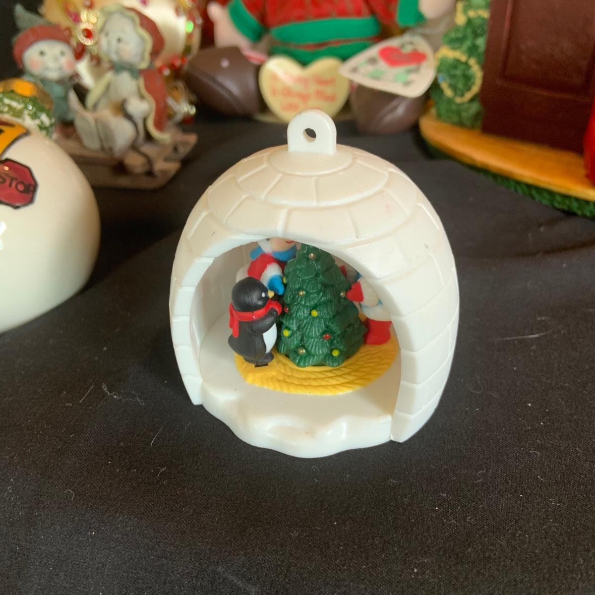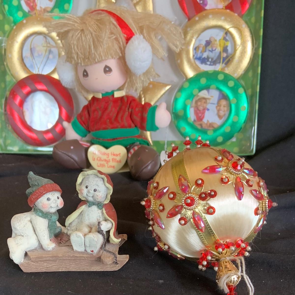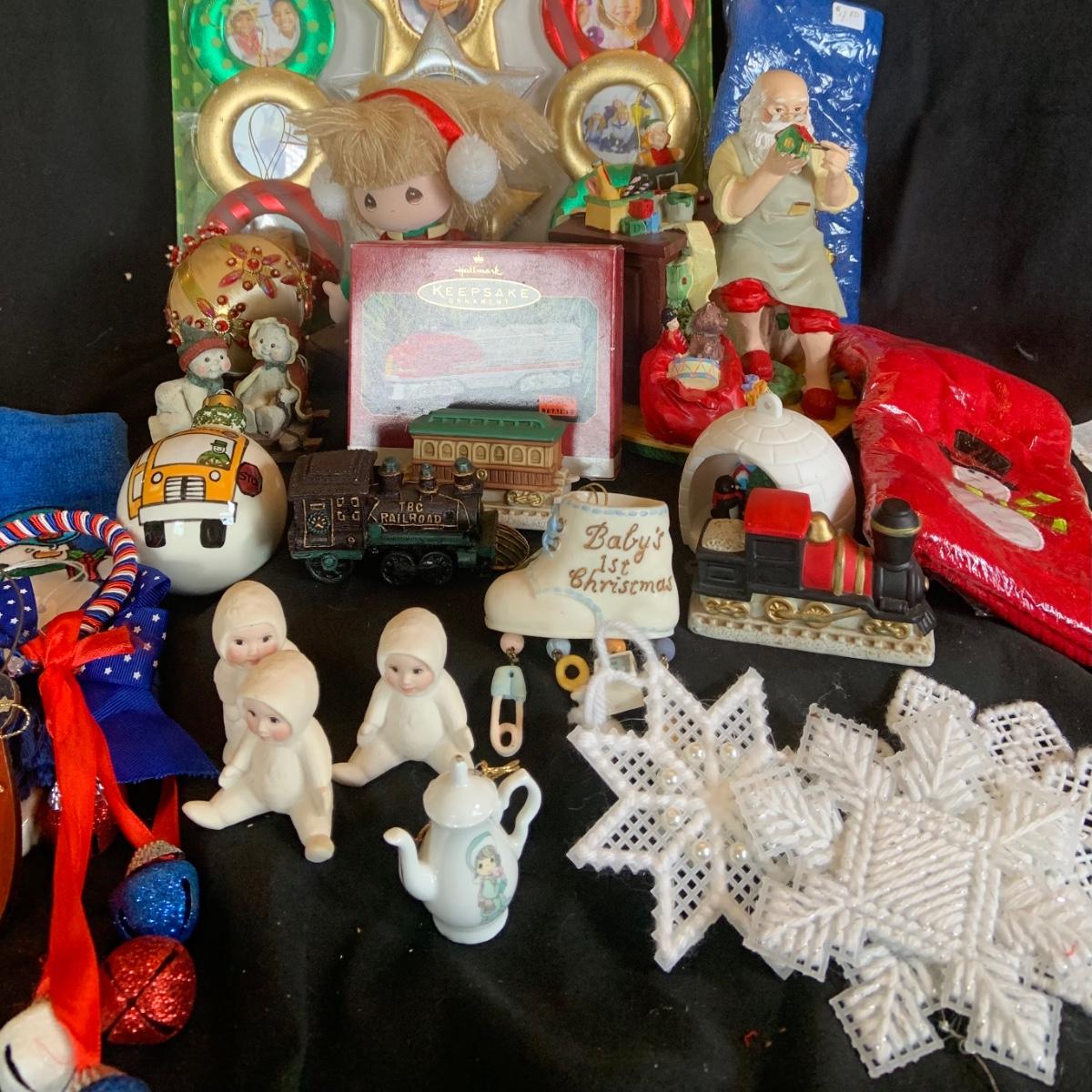 LOT:141: Holiday Decor Including Snow Babies, Precious Moments, Hallmark and Handcrafted Snowflakes More