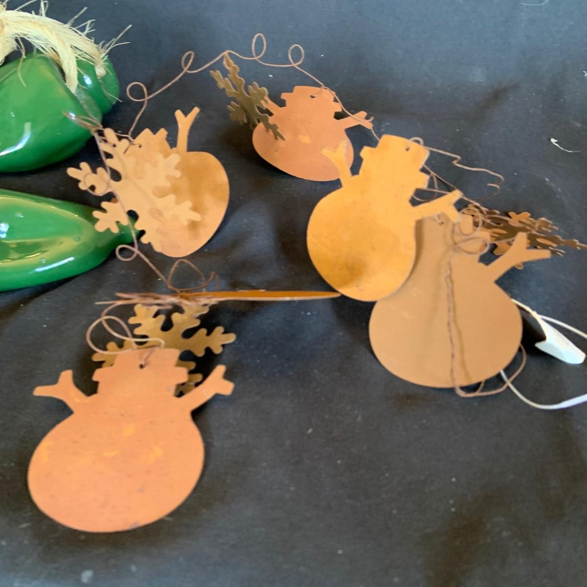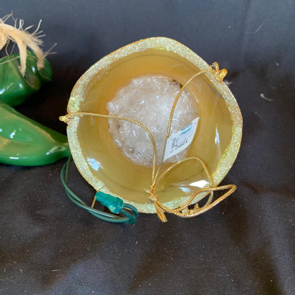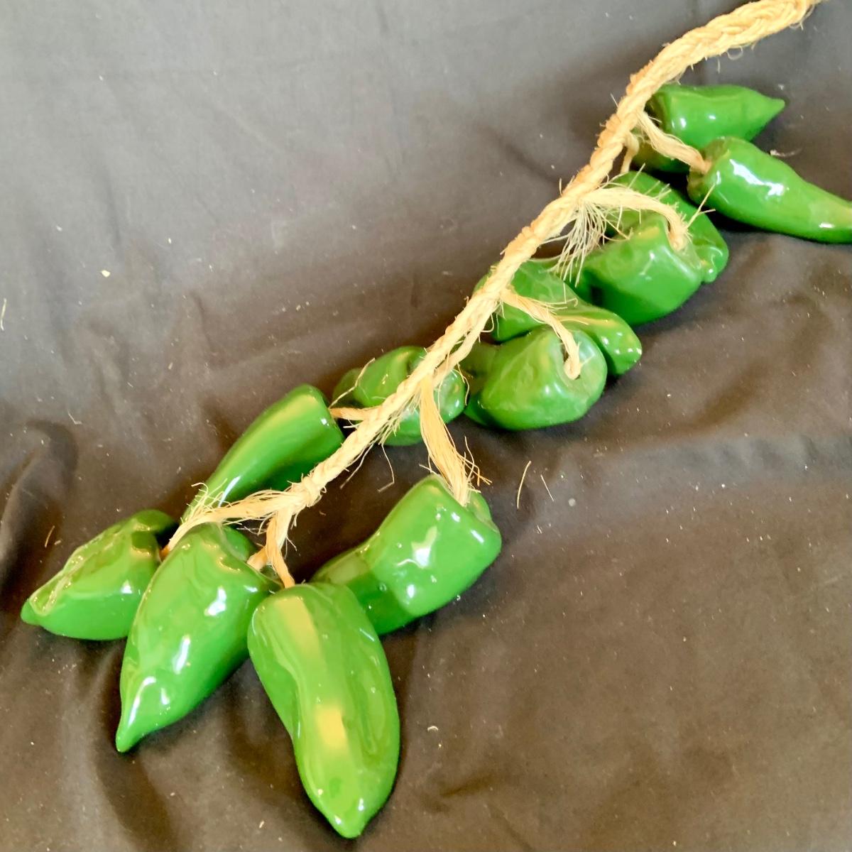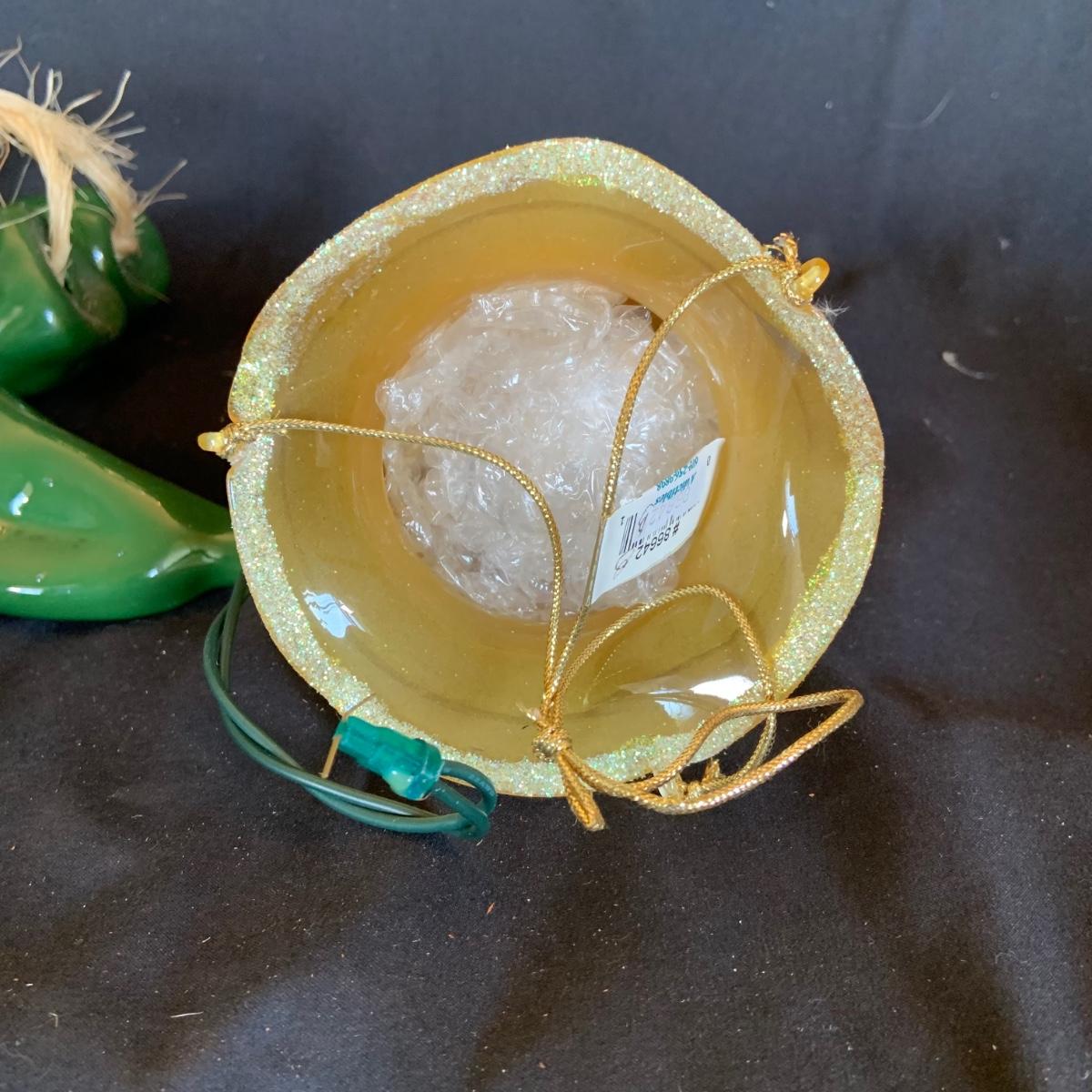 LOT :145: Vintage Snapple Holiday Lights, Hanging String of Porcelain Peppers, Bell Shaped Light and Metal Garland