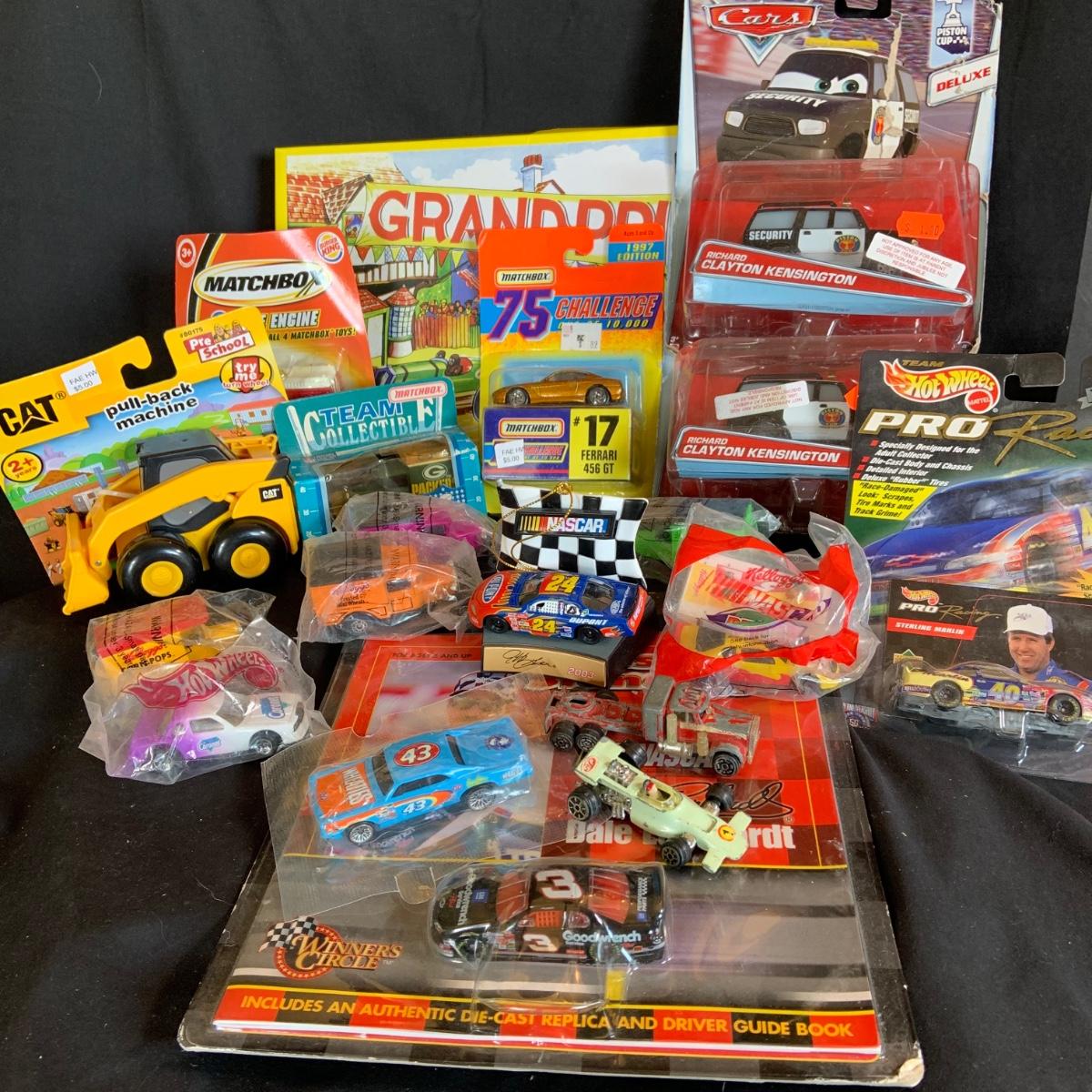 LOT:151: Assortment of Toy Cars Including Matchbox, Hot Wheels, Winner Circle, Disney Cars, a Grand Prix Game and More