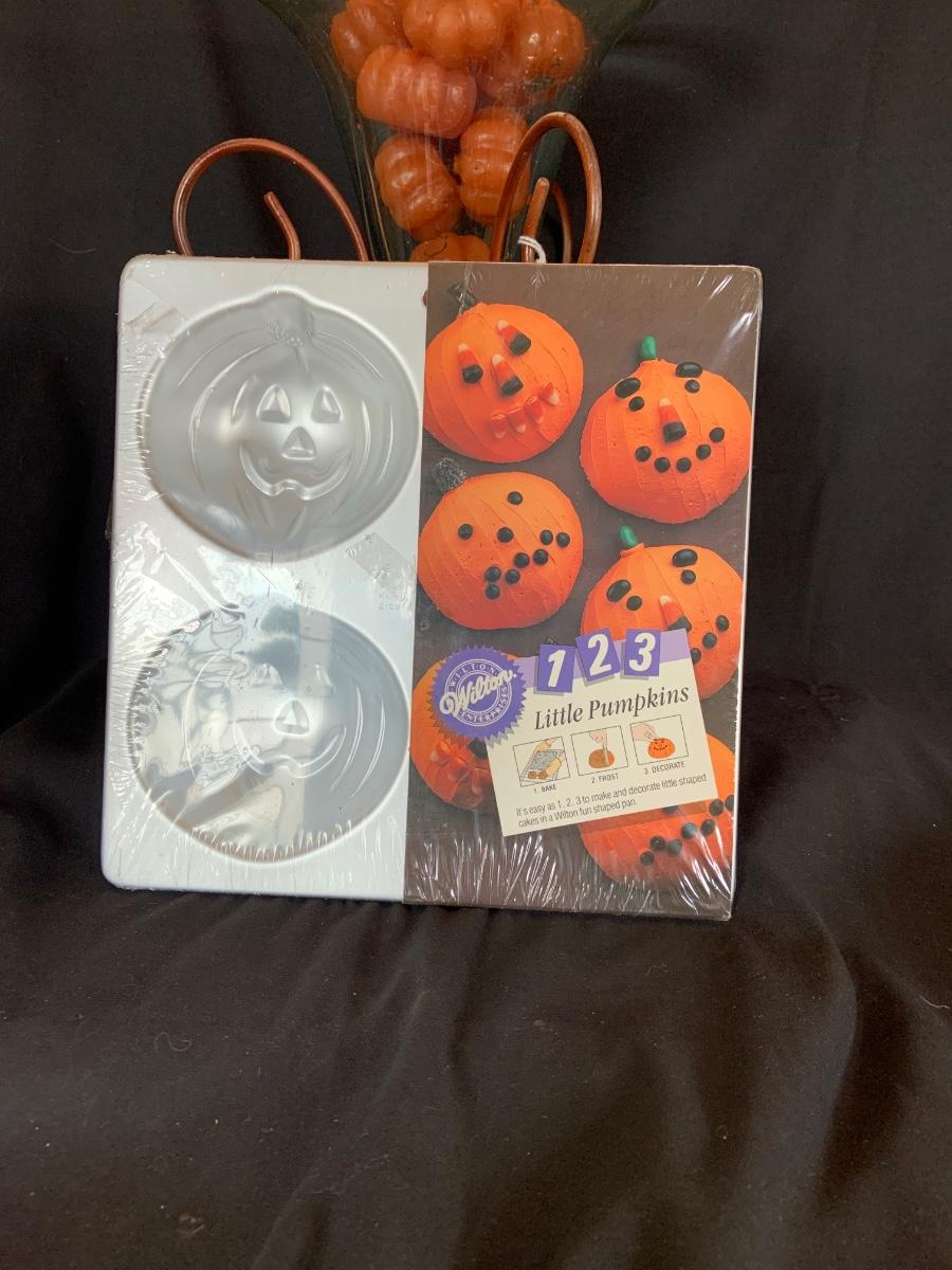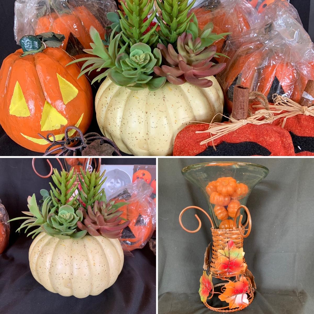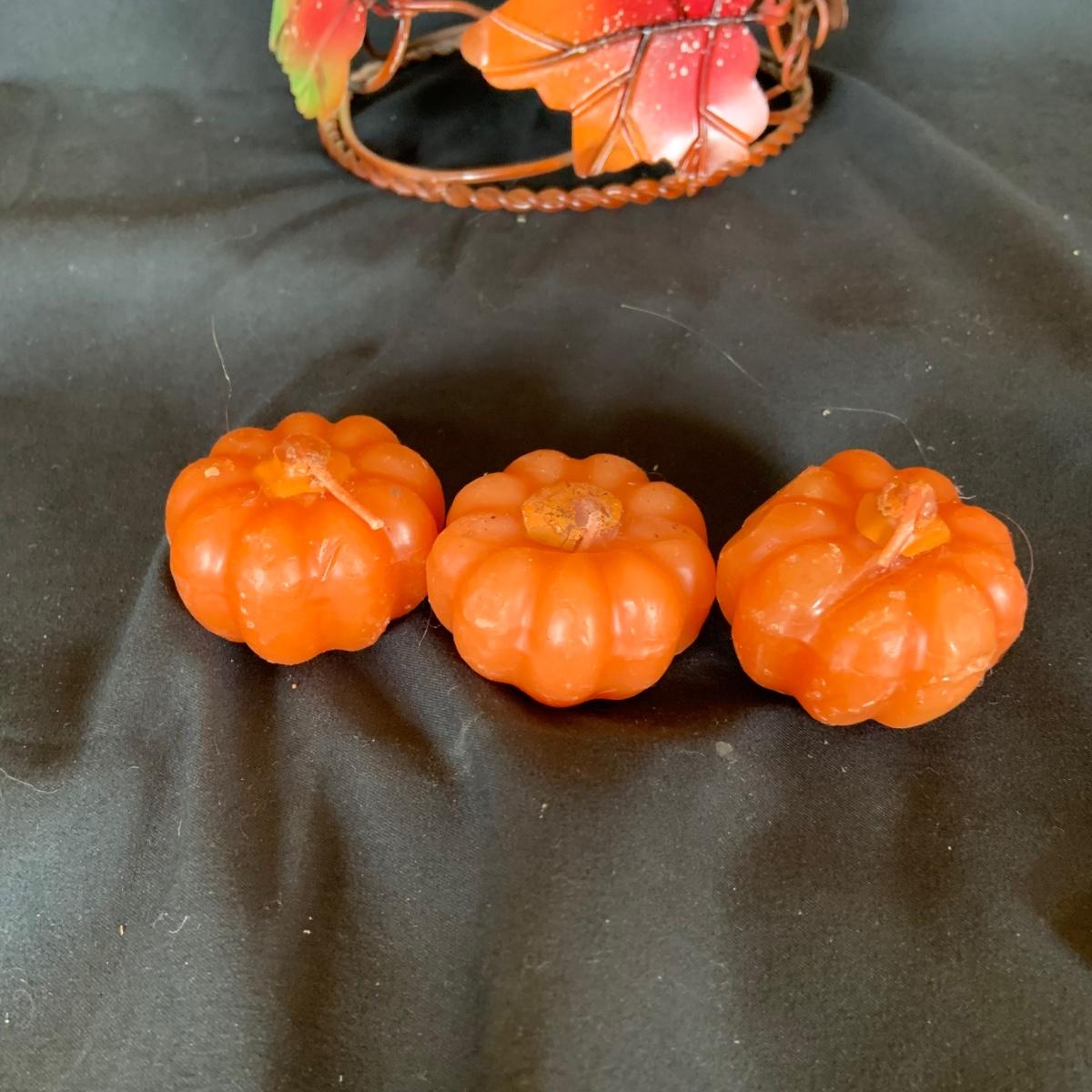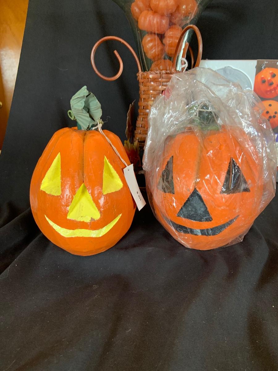 LOT:166: Fall and Halloween Pumpkin Decorations Including Jack-o-Lantern Cupcake Pans, Candles and More