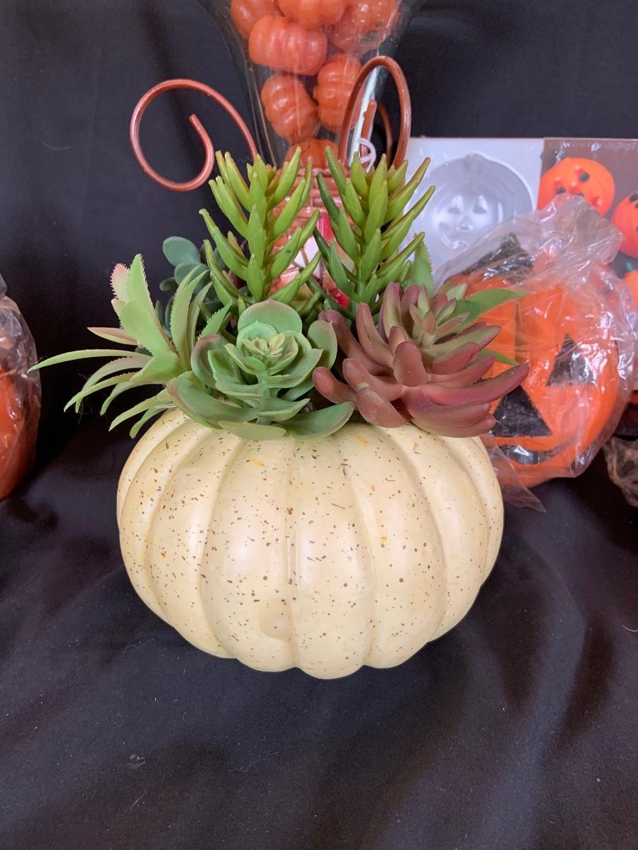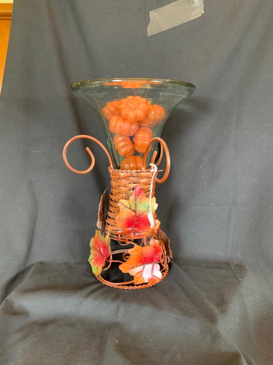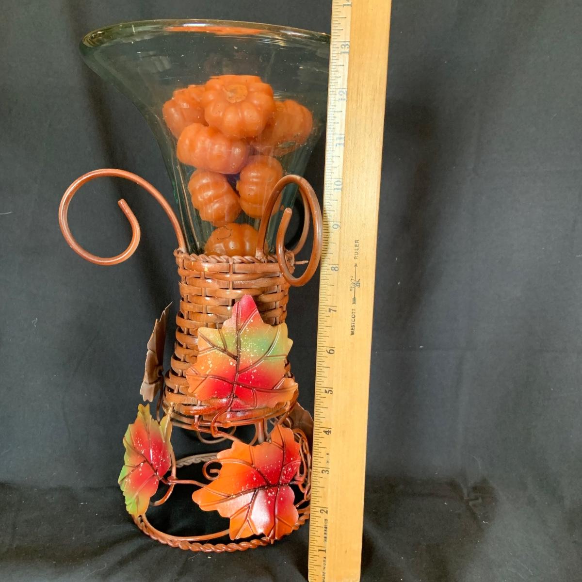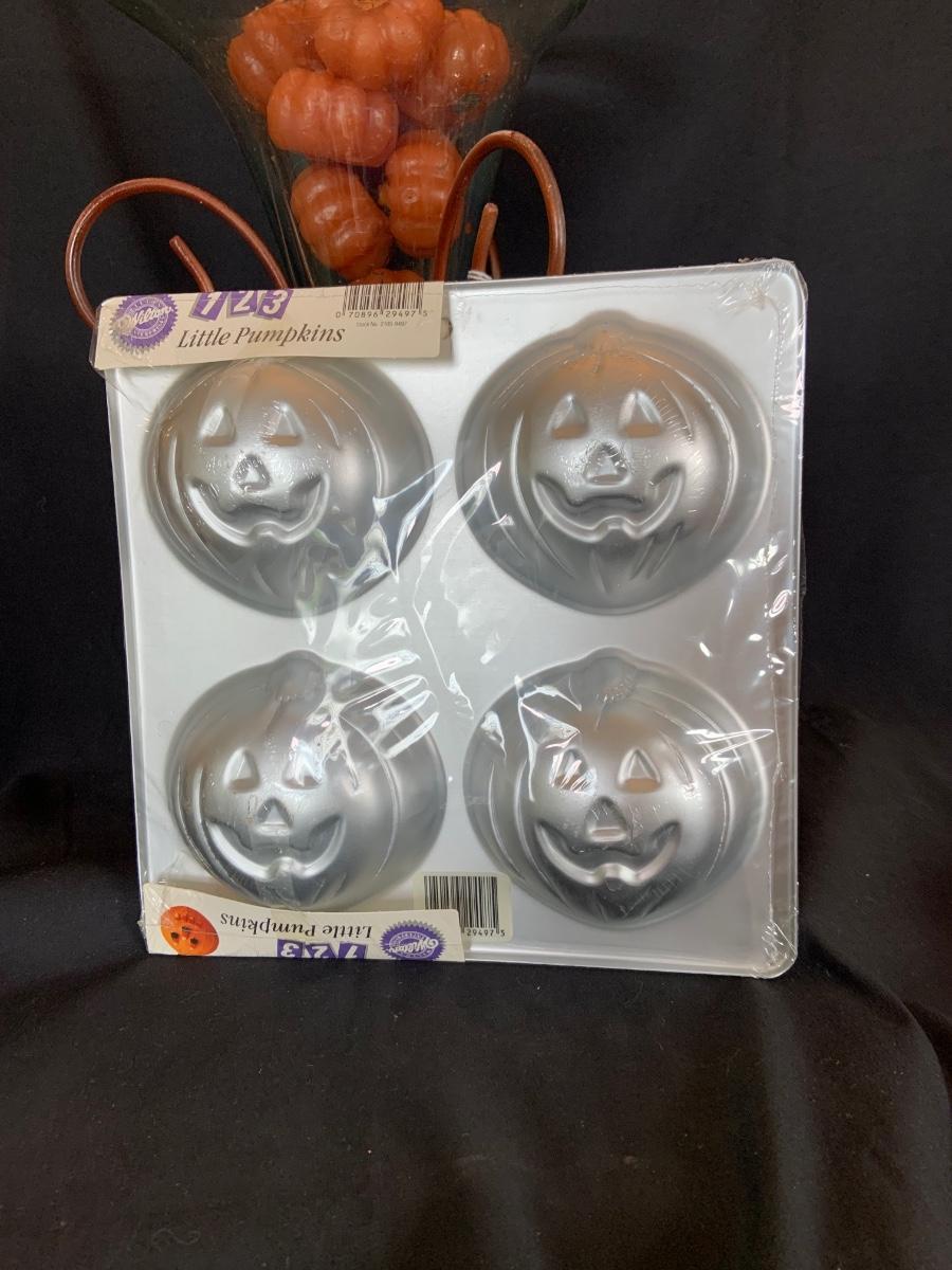 LOT:166: Fall and Halloween Pumpkin Decorations Including Jack-o-Lantern Cupcake Pans, Candles and More