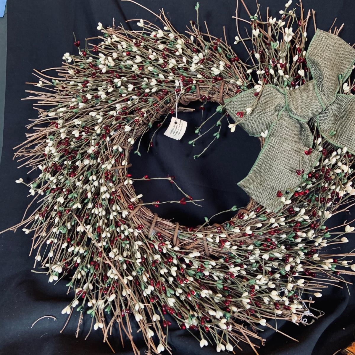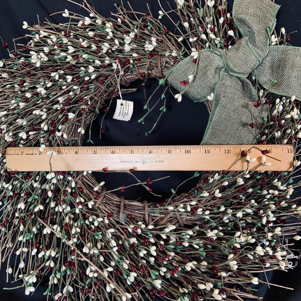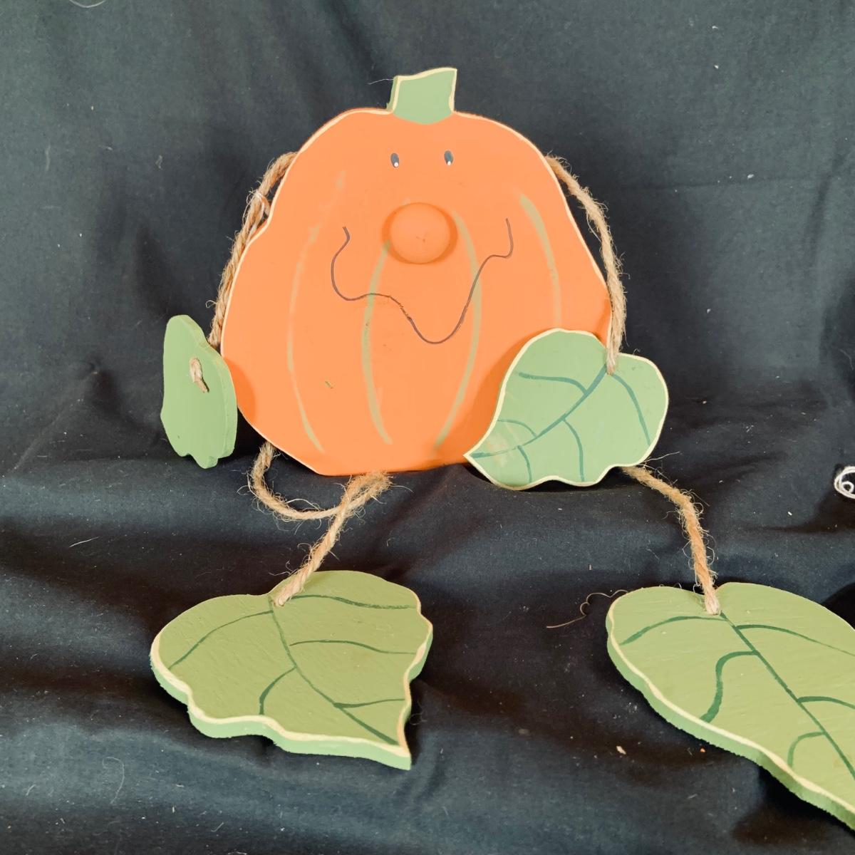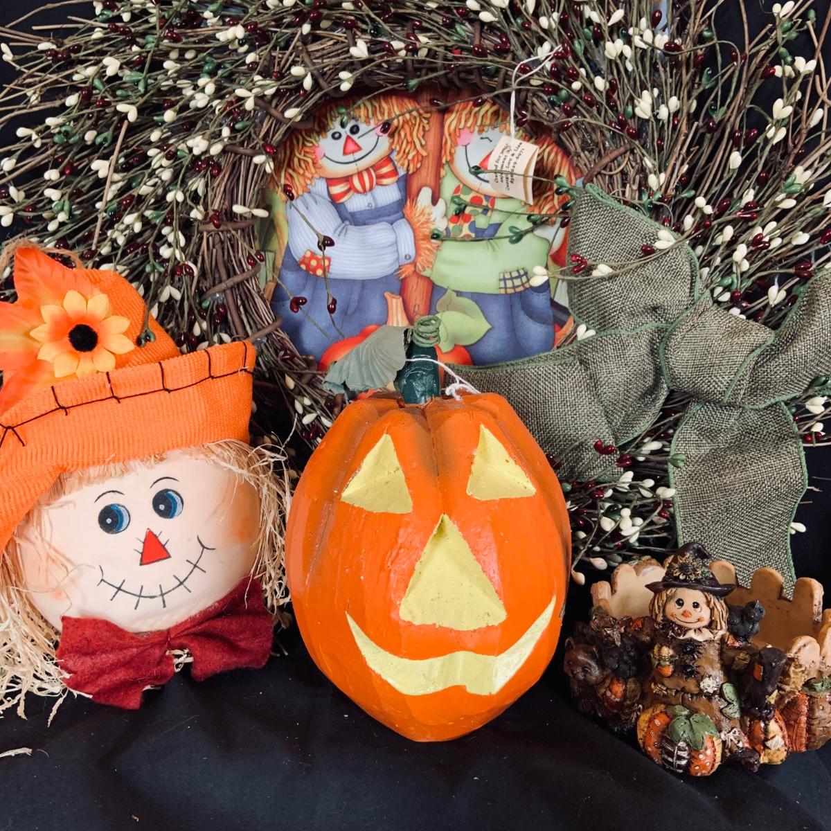 LOT:167: Autumn Decor Including Rustic Wood Candle Holder Wreath, Flag, Leaf Shaped Dishes and More