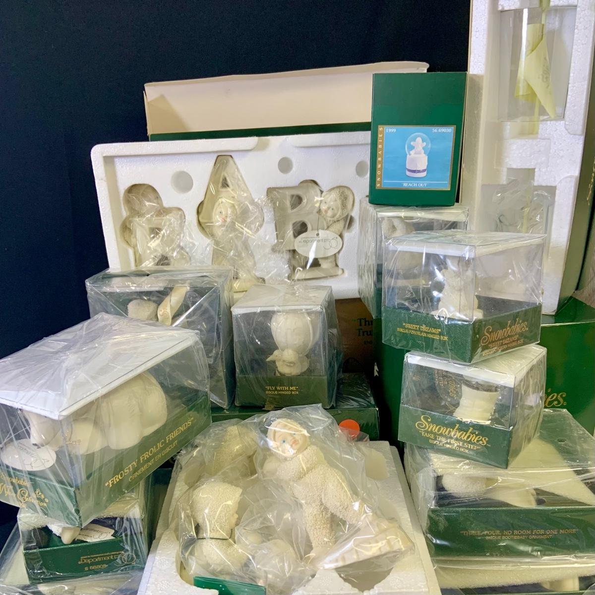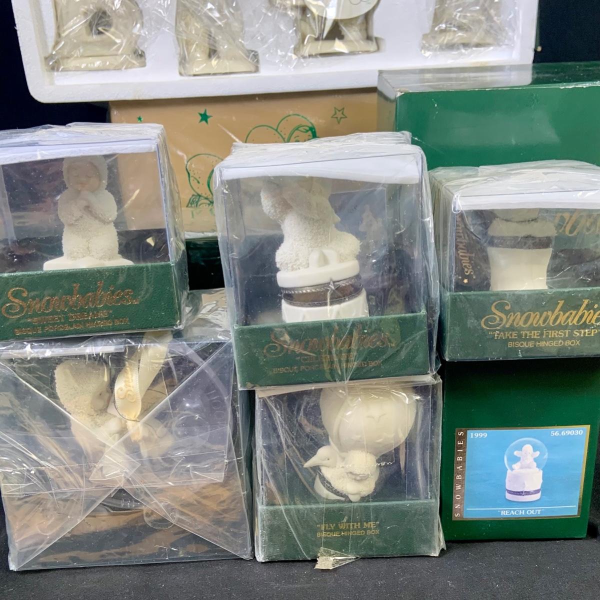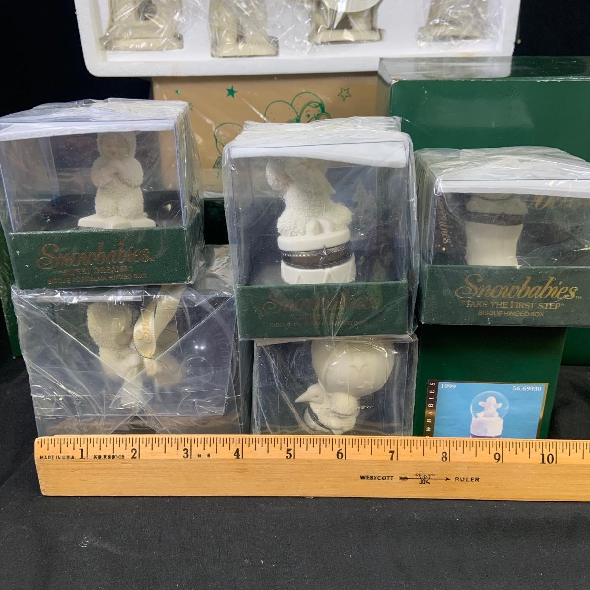 LOT:175:Large Selection of Dept 56 Snowbabies Porcelain Figurines Including Snow Globe Trinket Boxes and More