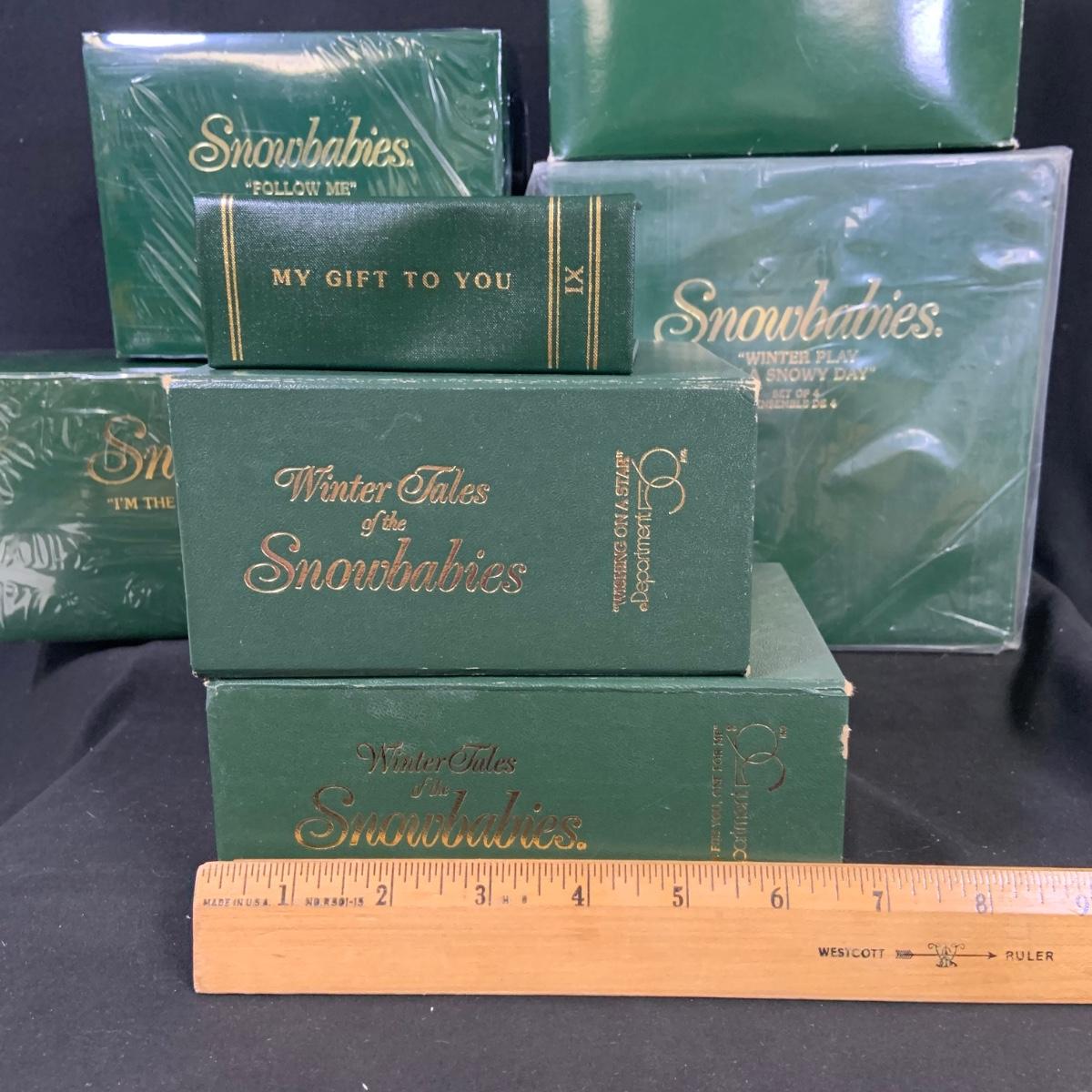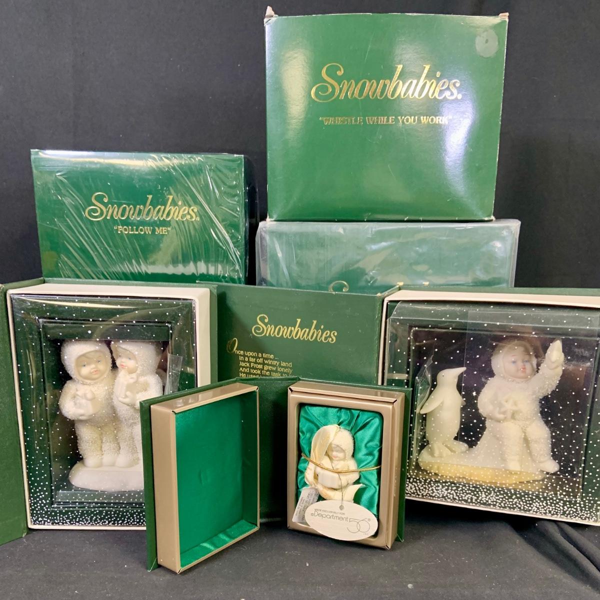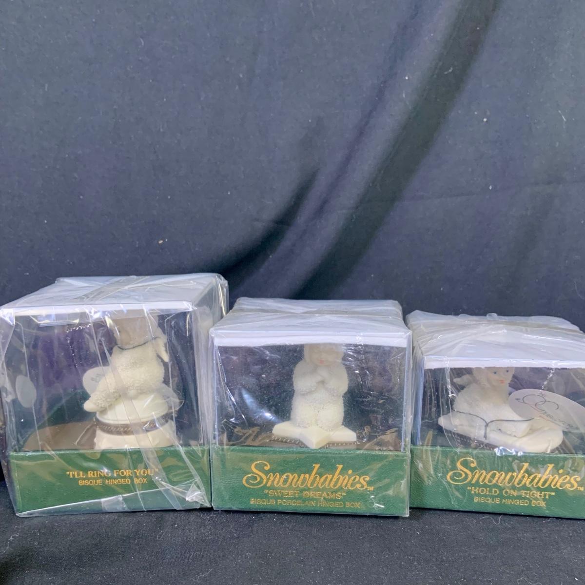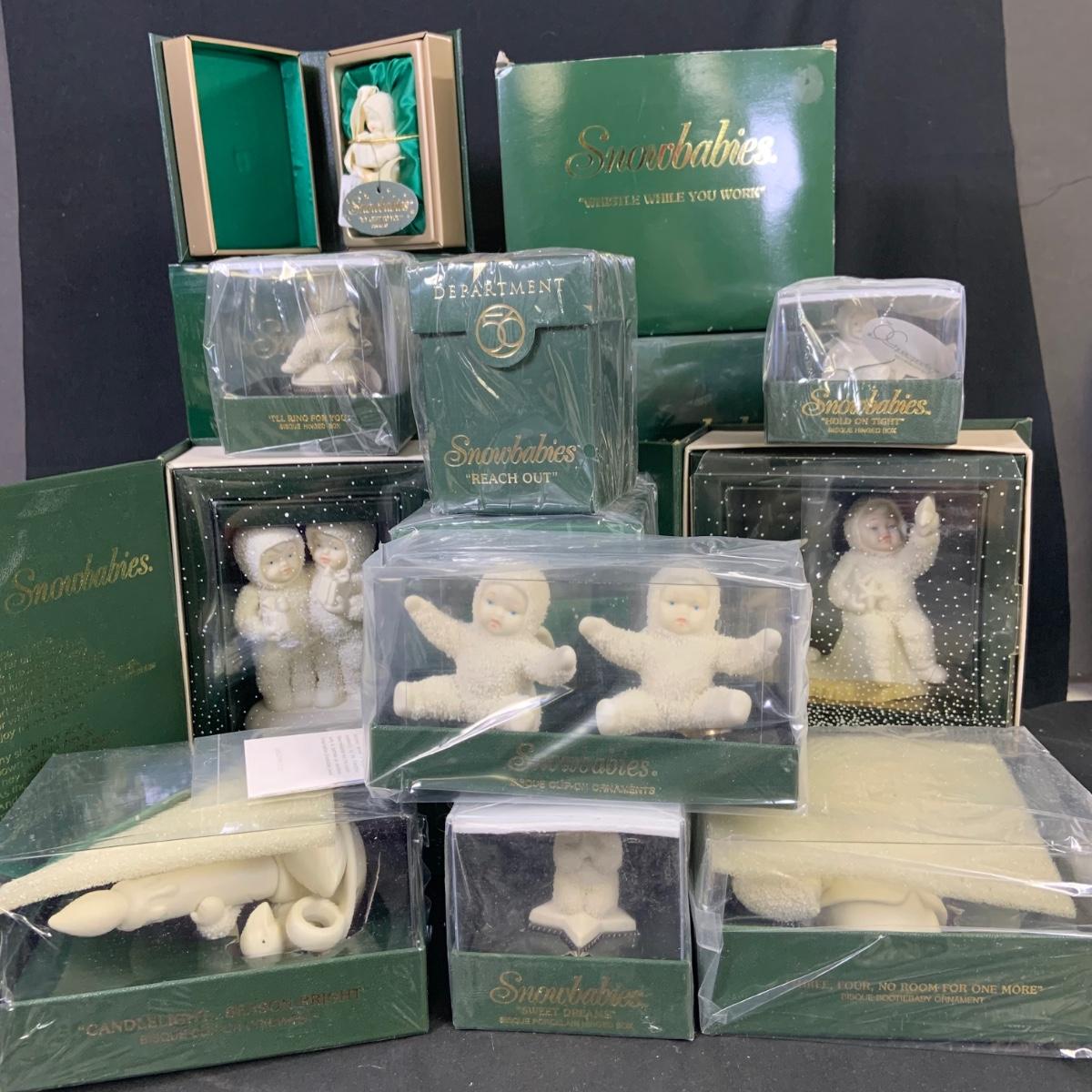 LOT:177: Large Selection of Dept 56 Snowbabies Porcelain Figurines Trinket Boxes and More- All in Original Boxes Most Unopened