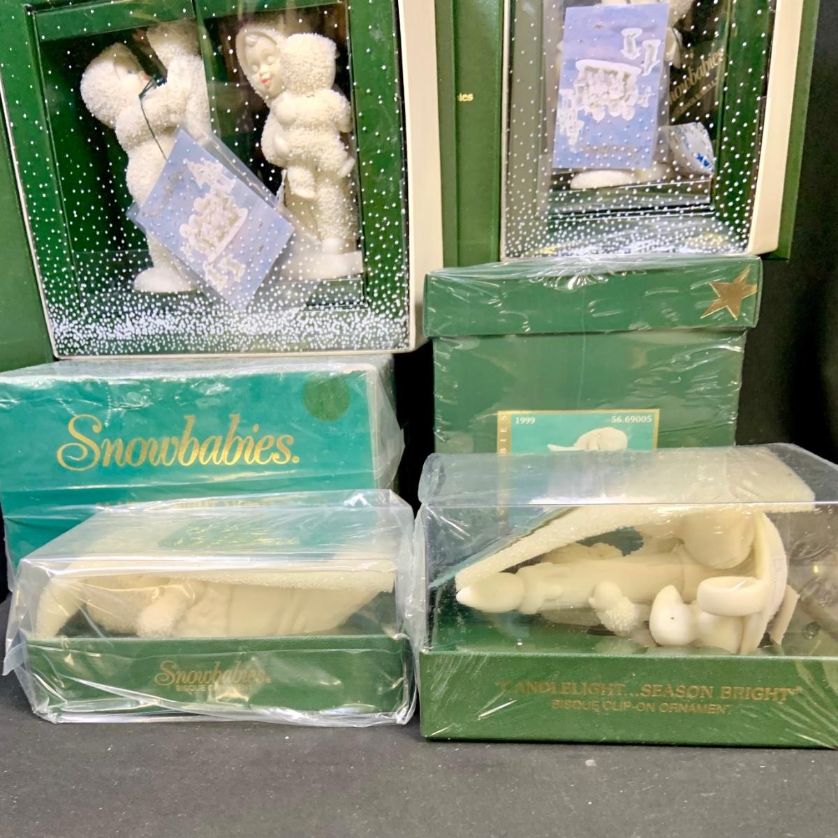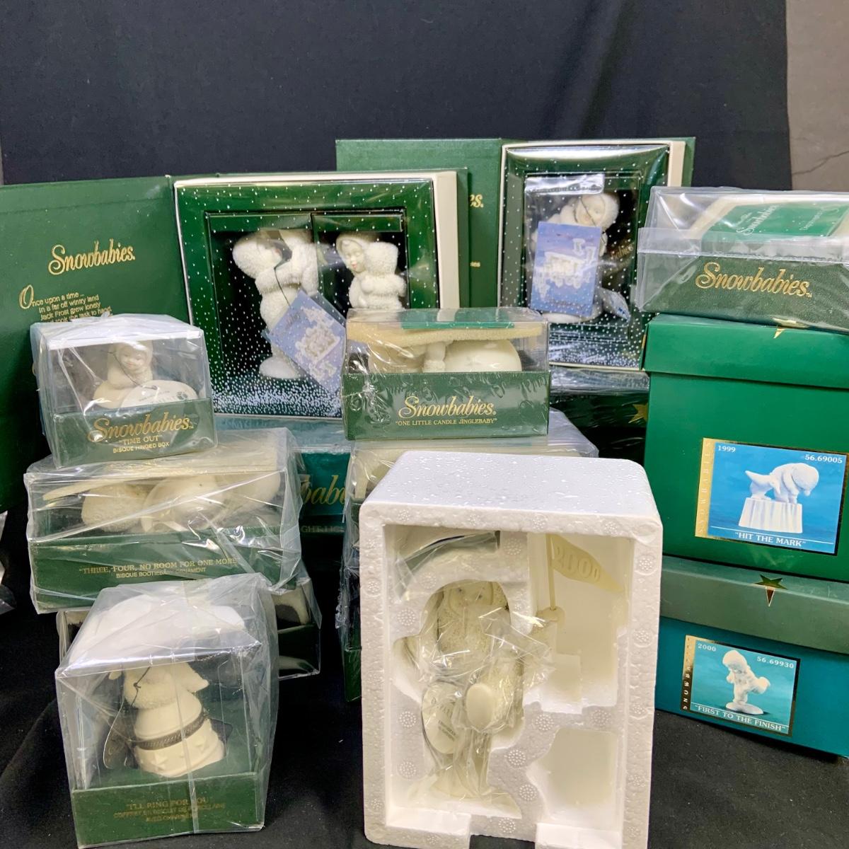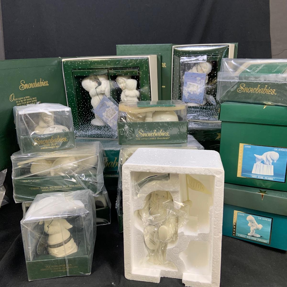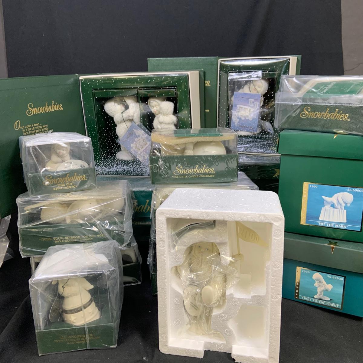 LOT:179: Large Selection of Dept 56 Snowbabies Porcelain Figurines and More - All in Original Boxes Most Unopened