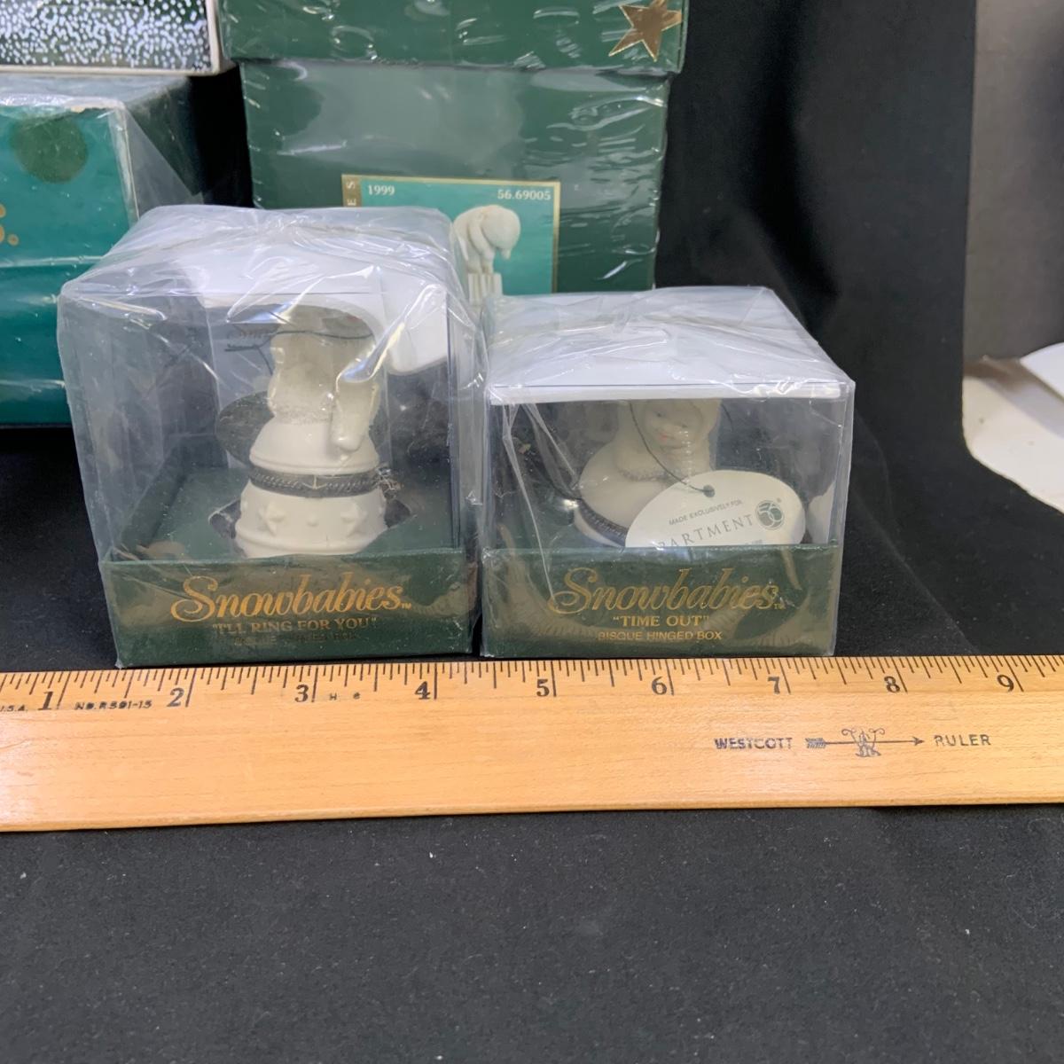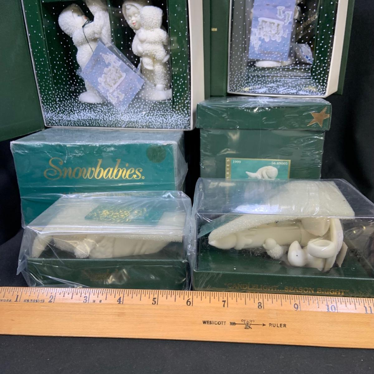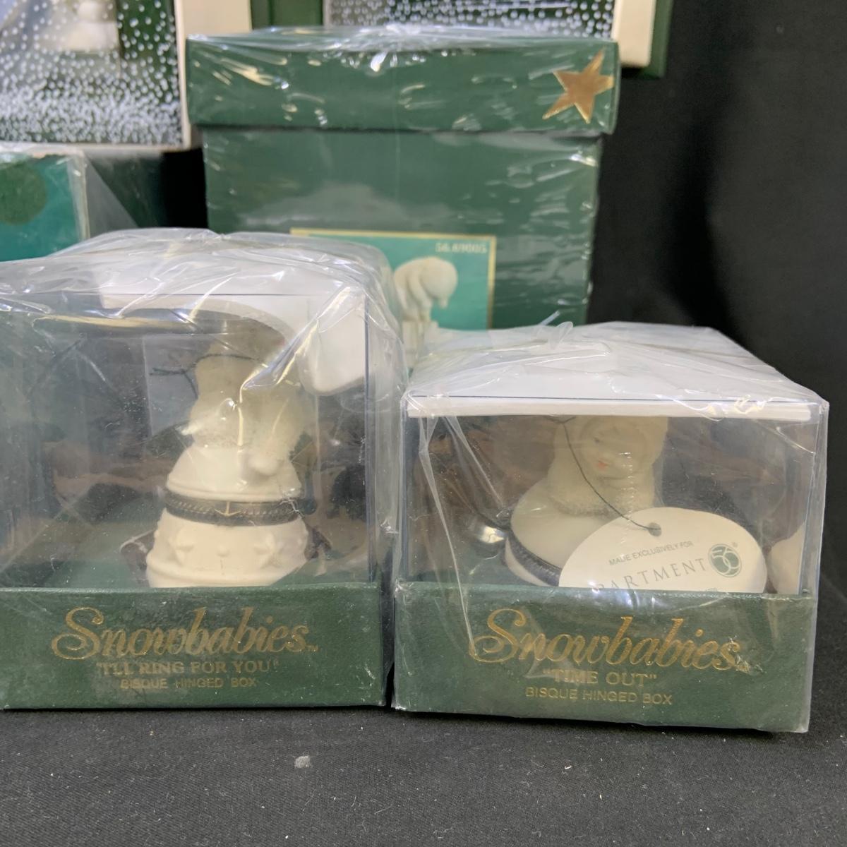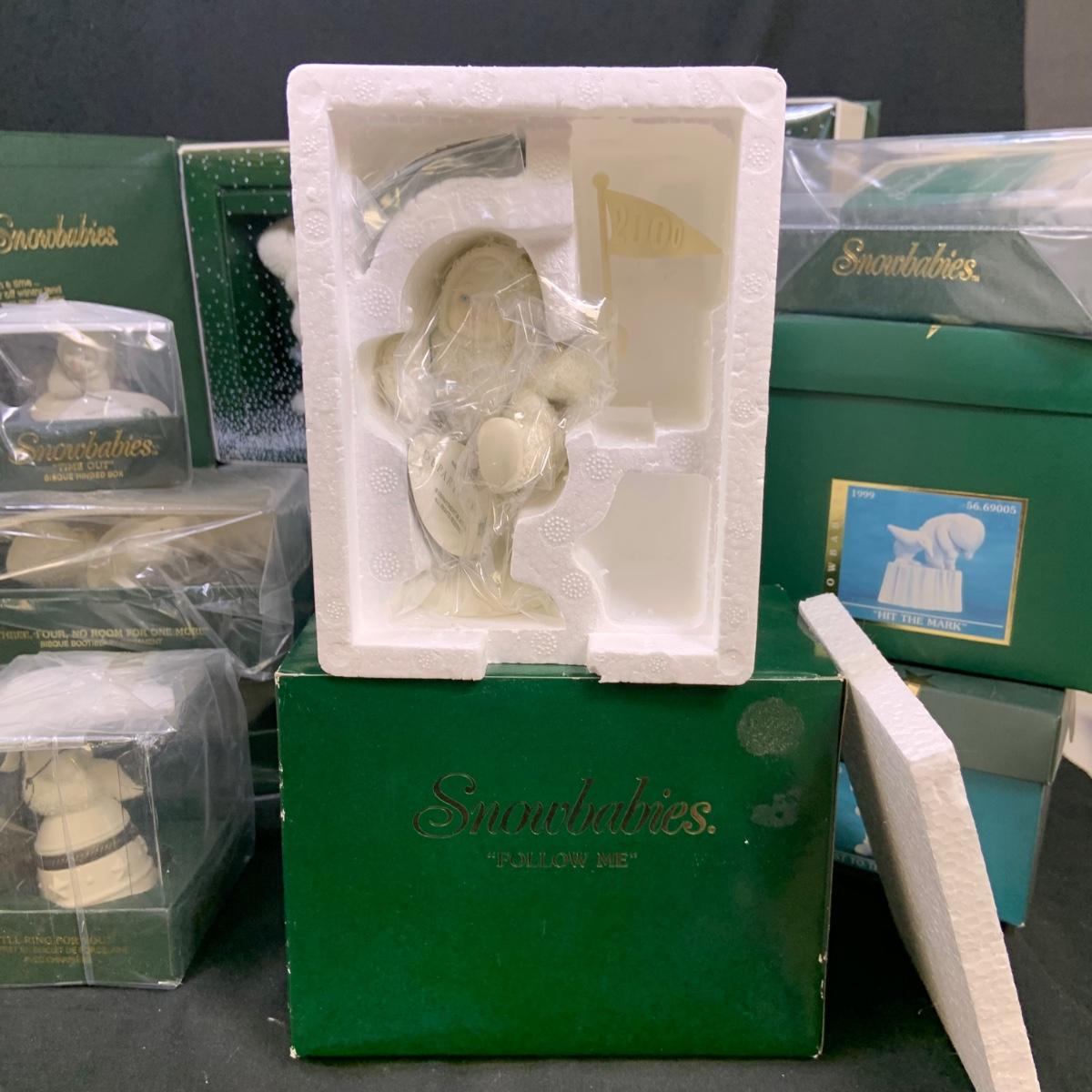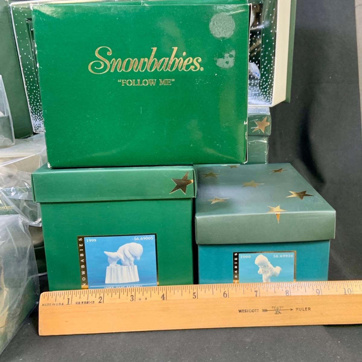 LOT:179: Large Selection of Dept 56 Snowbabies Porcelain Figurines and More - All in Original Boxes Most Unopened