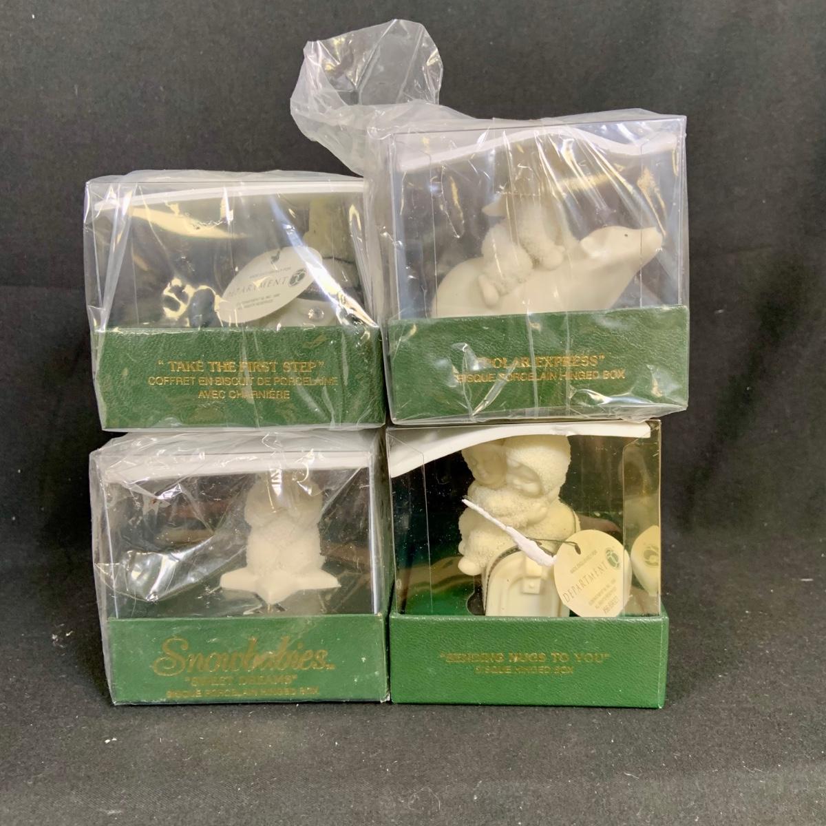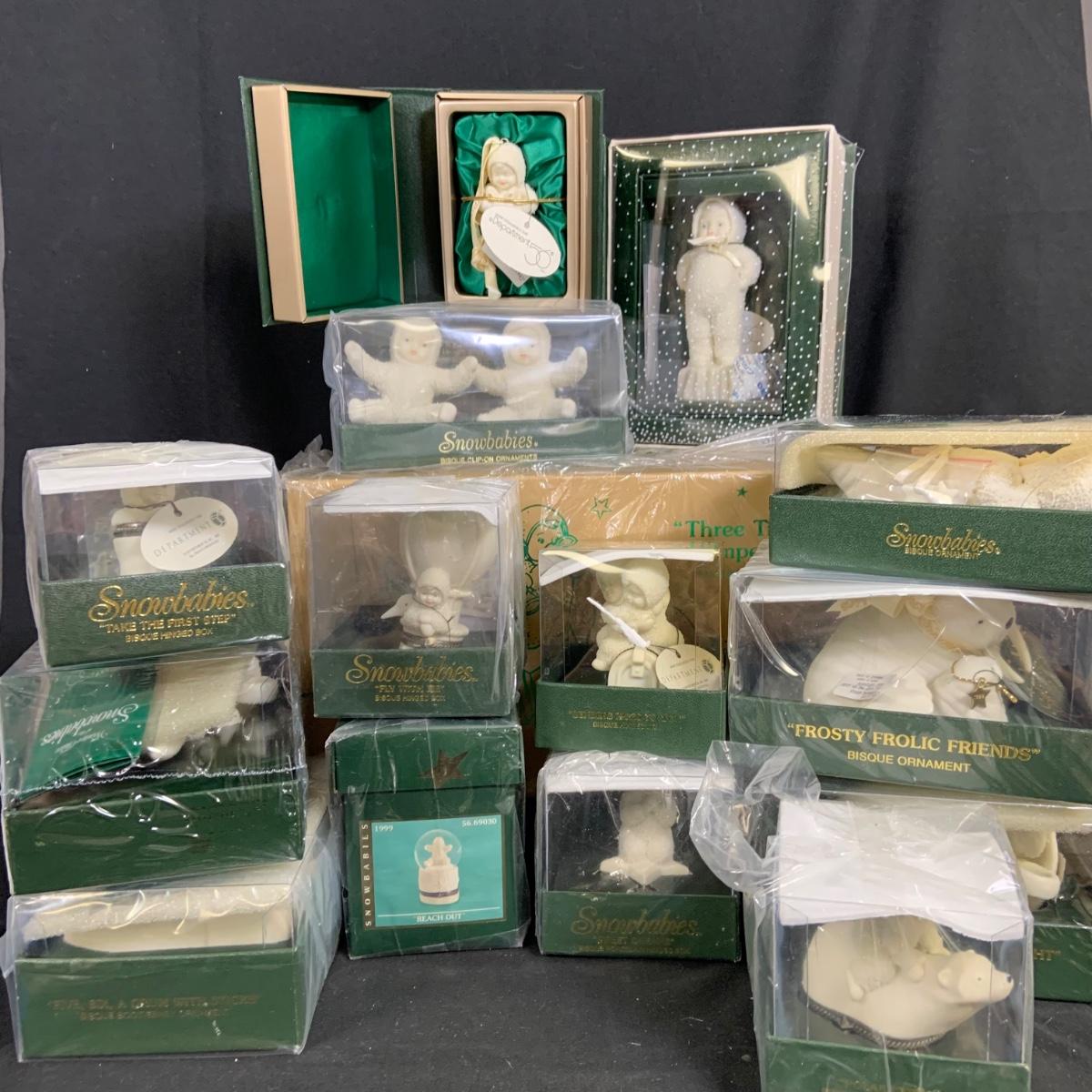 LOT:182: Large Selection of Dept 56 Snowbabies Porcelain Figurines, Ornaments, Trinket Boxes and More All in Original Boxes Most Unopened