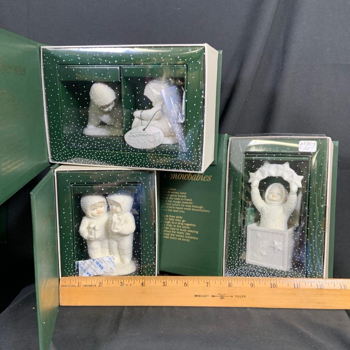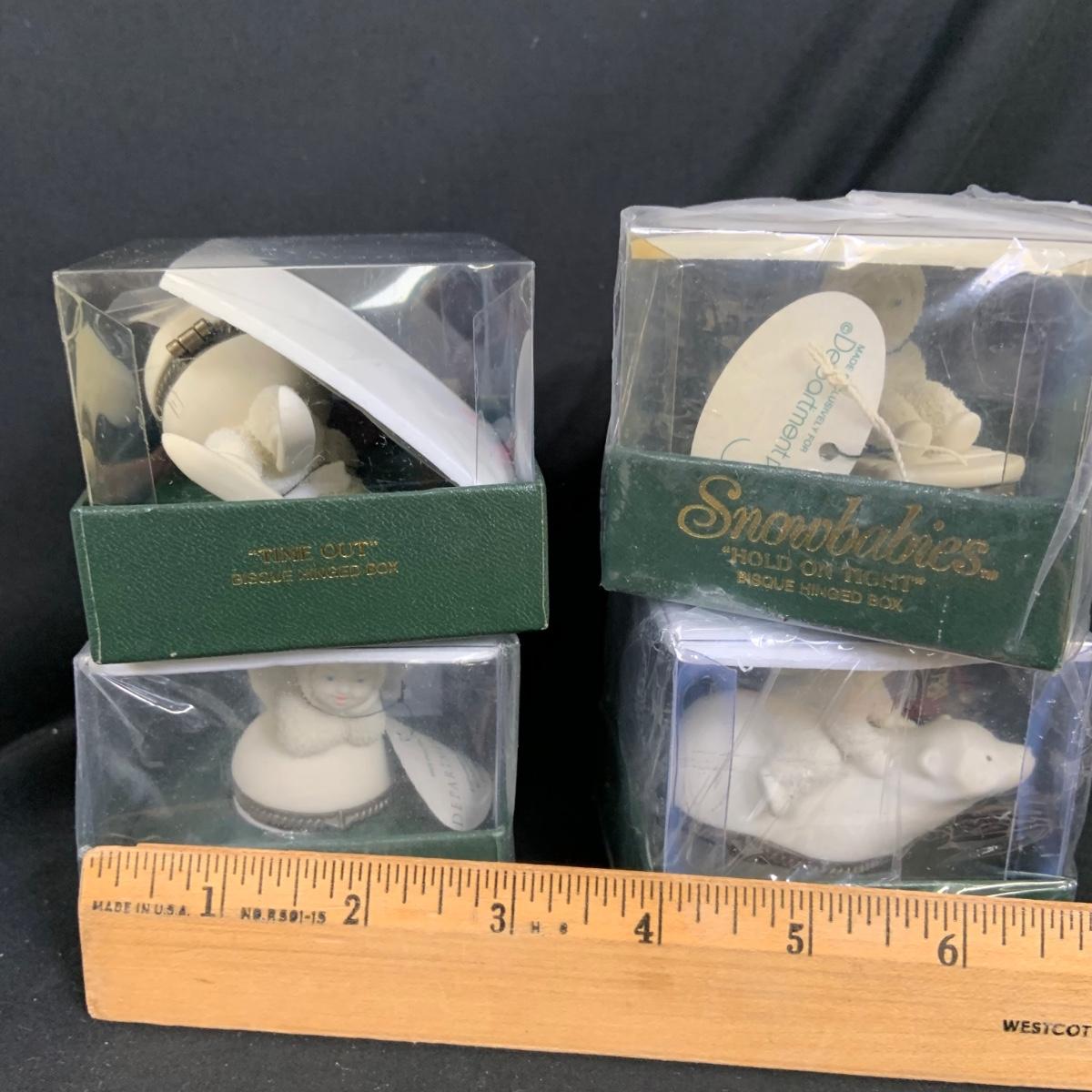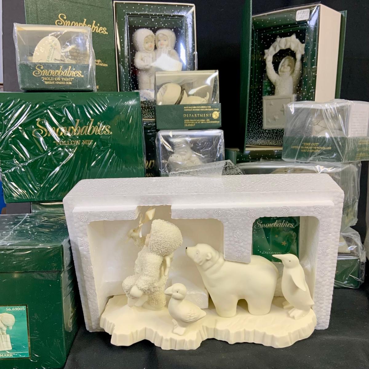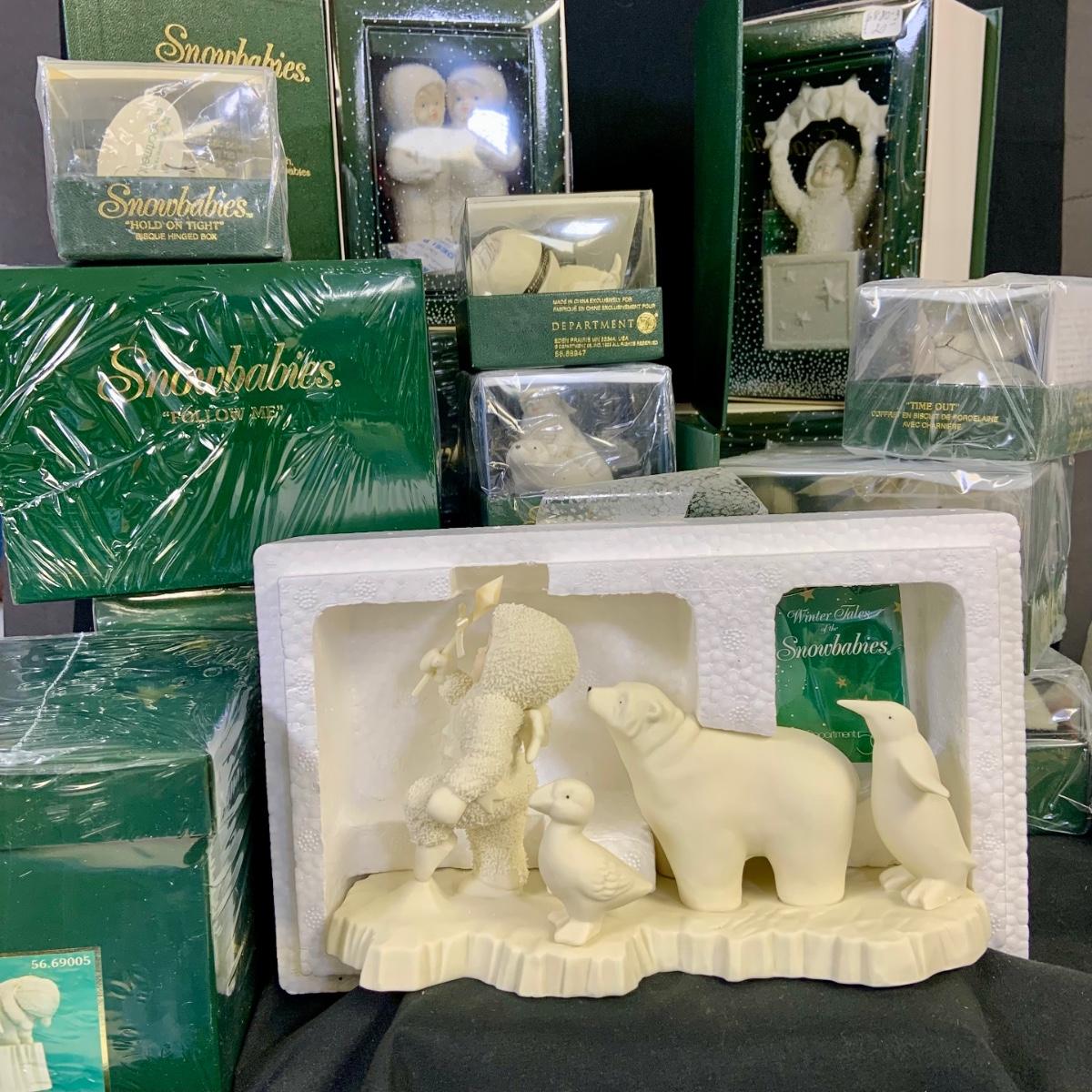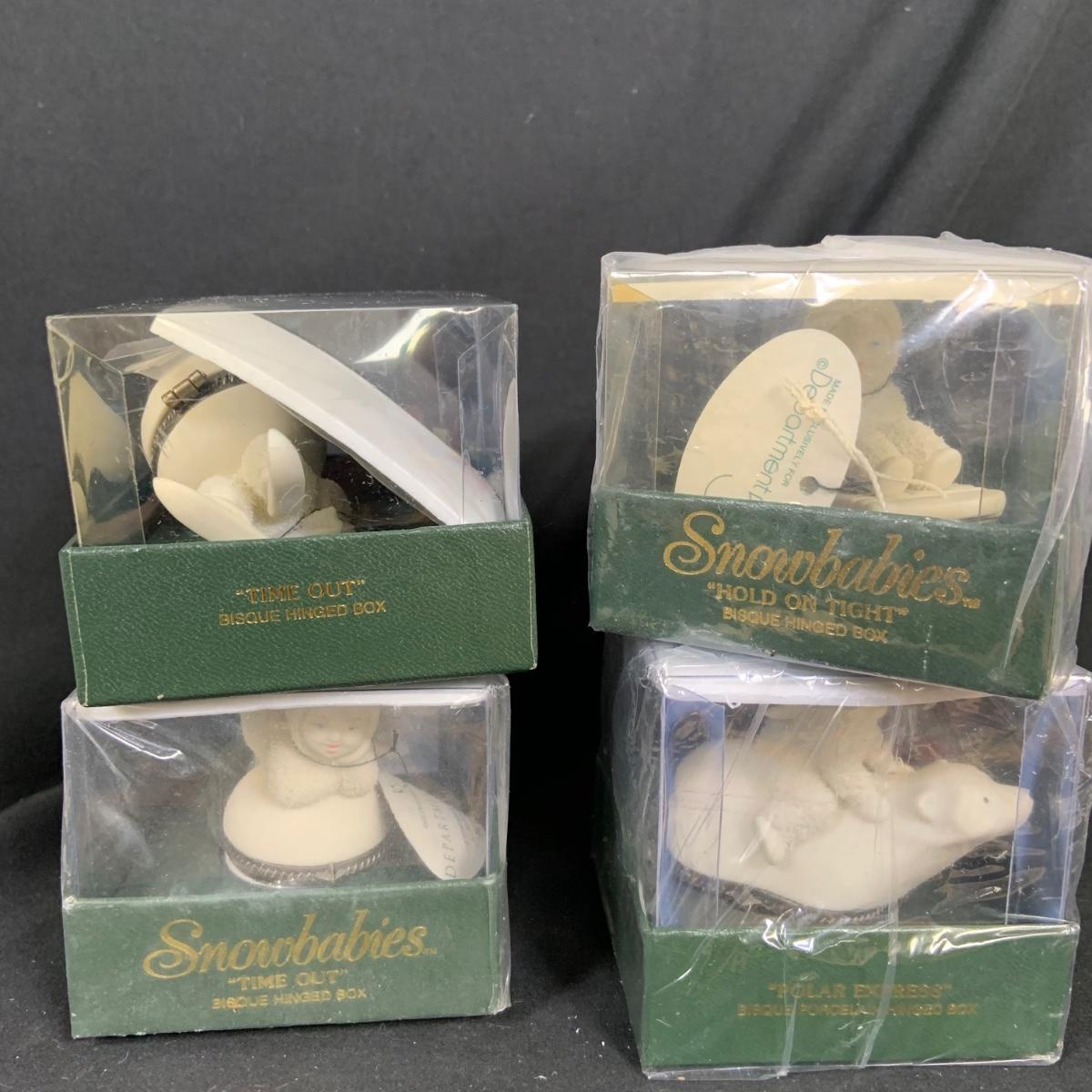 LOT:184: Large Selection of Dept 56 Snowbabies Porcelain Figurines Trinket Boxes and More All in Original Boxes Most Unopened