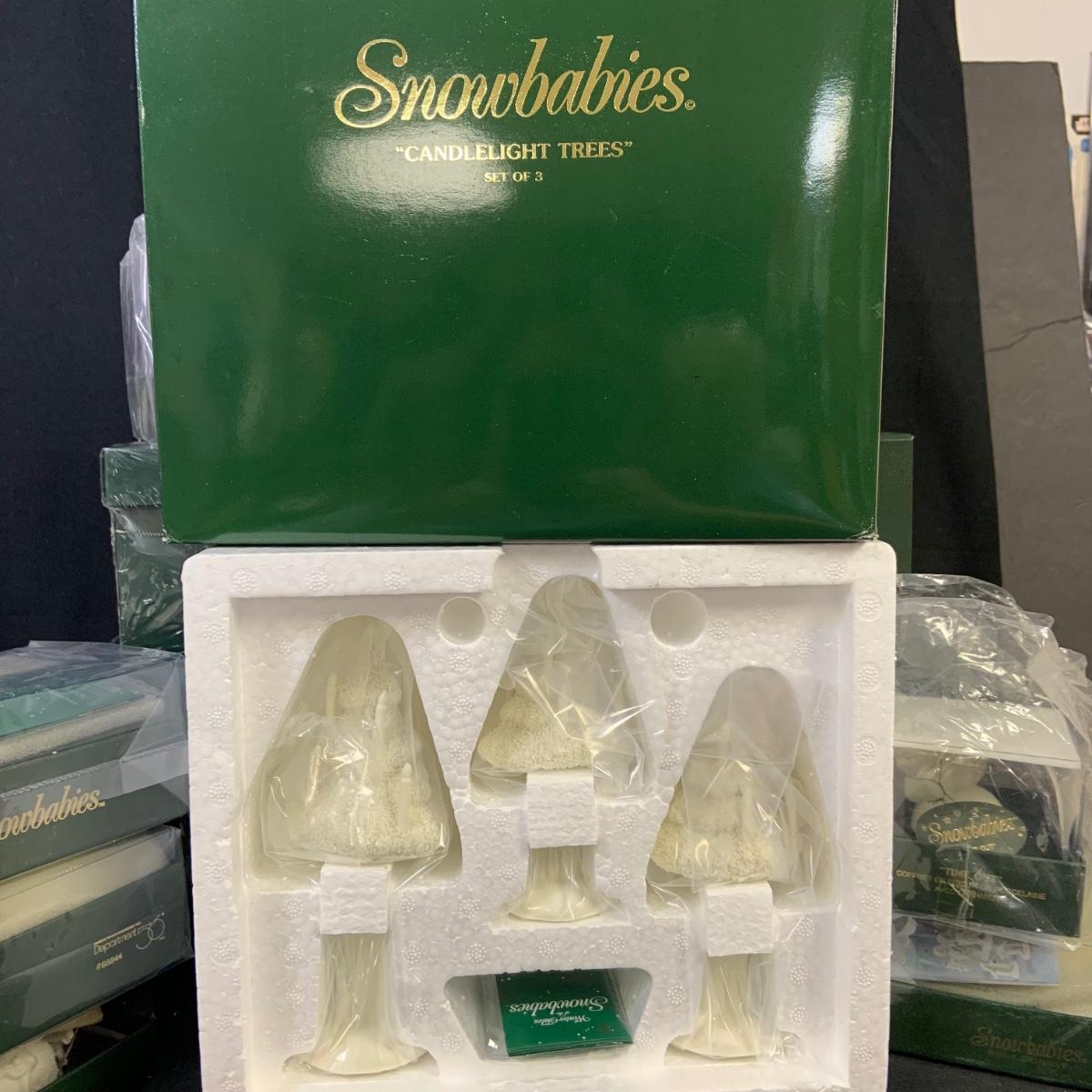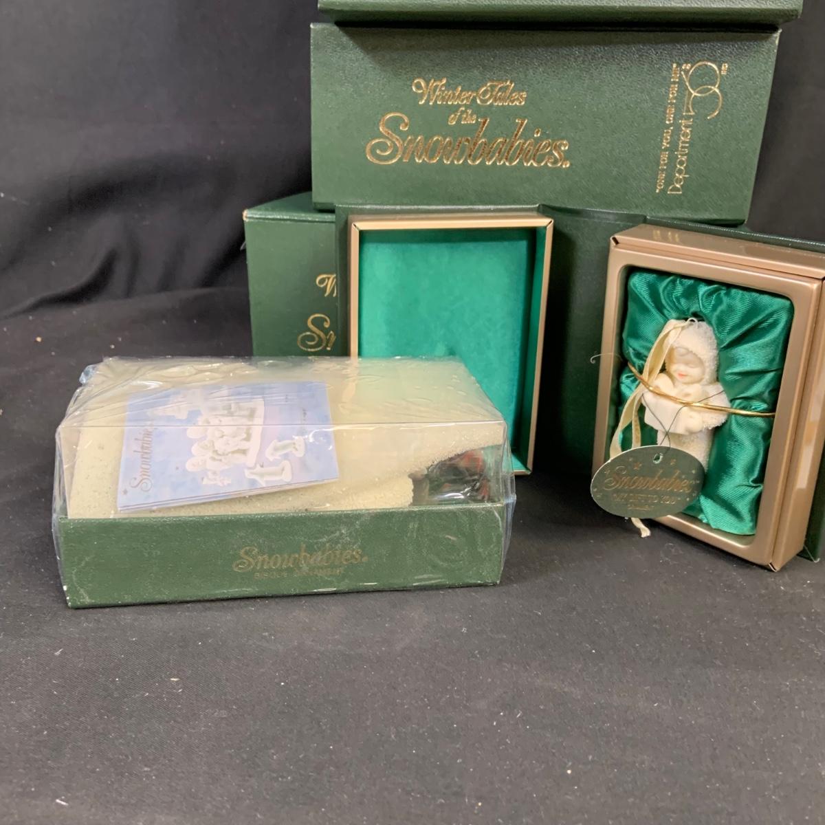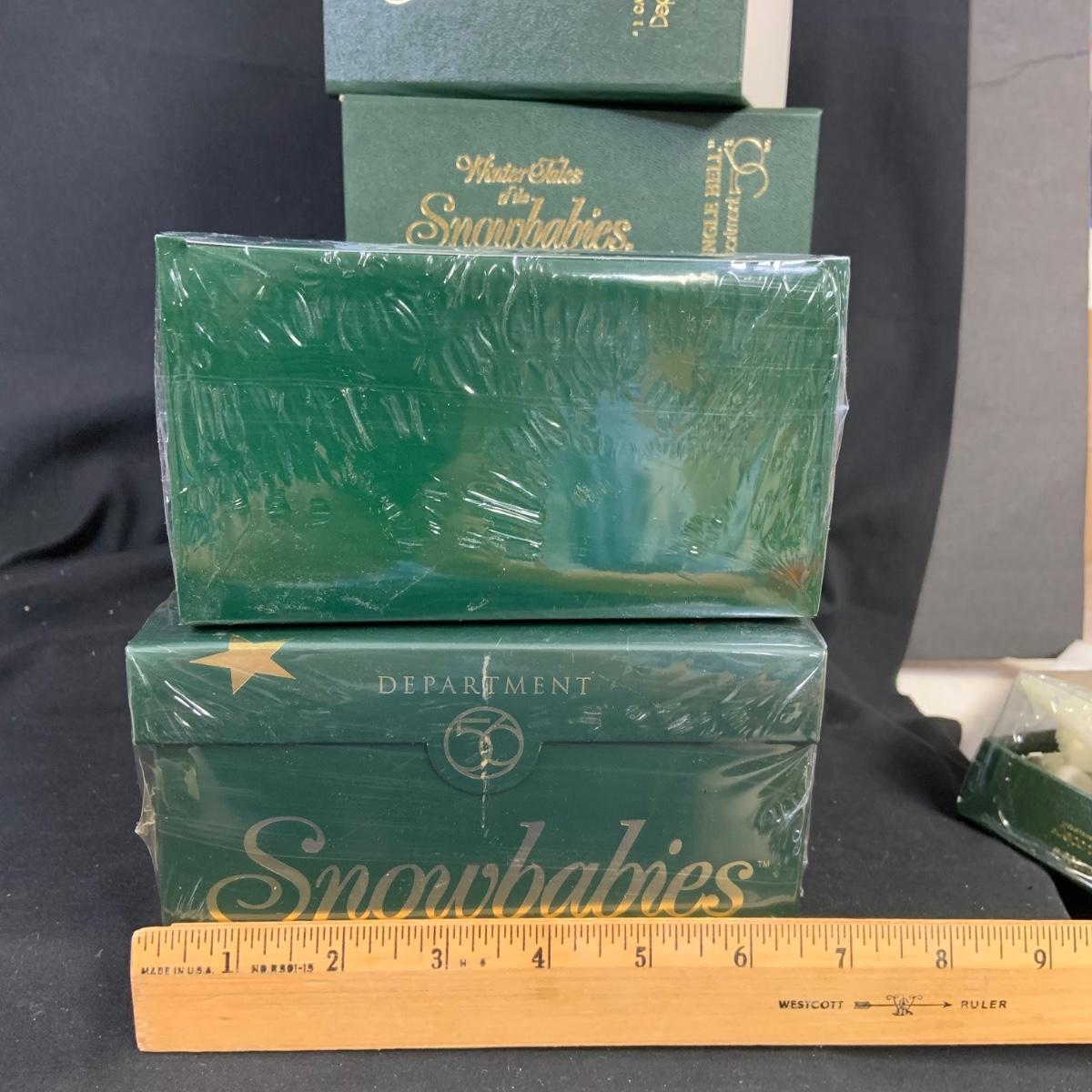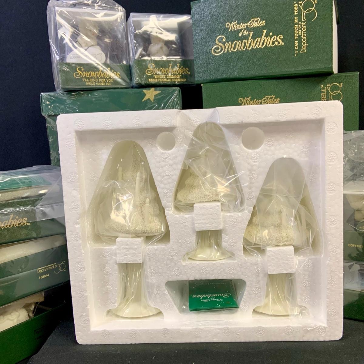 LOT:185: Large Selection of Dept 56 Snowbabies Porcelain Figurines, Trees, Trinket Boxes and More All in Original Boxes Most Unopened