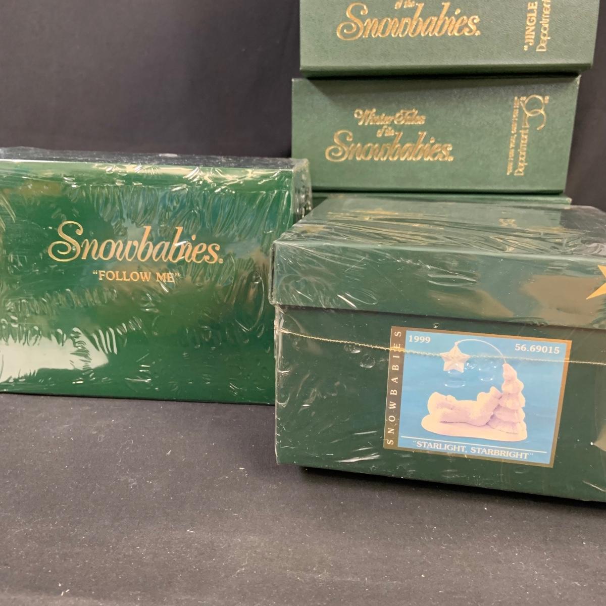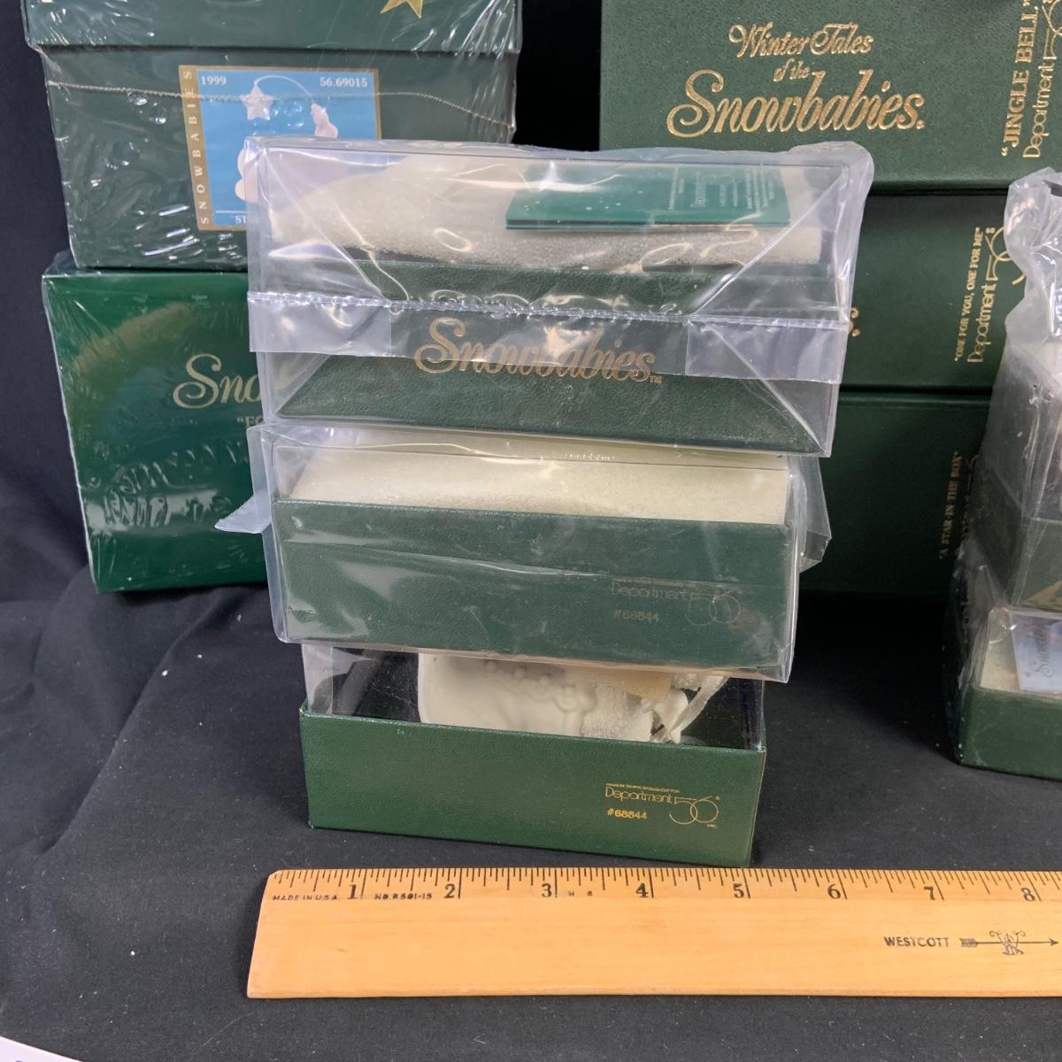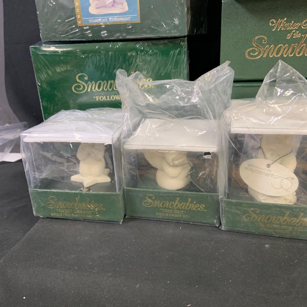 LOT:185: Large Selection of Dept 56 Snowbabies Porcelain Figurines, Trees, Trinket Boxes and More All in Original Boxes Most Unopened