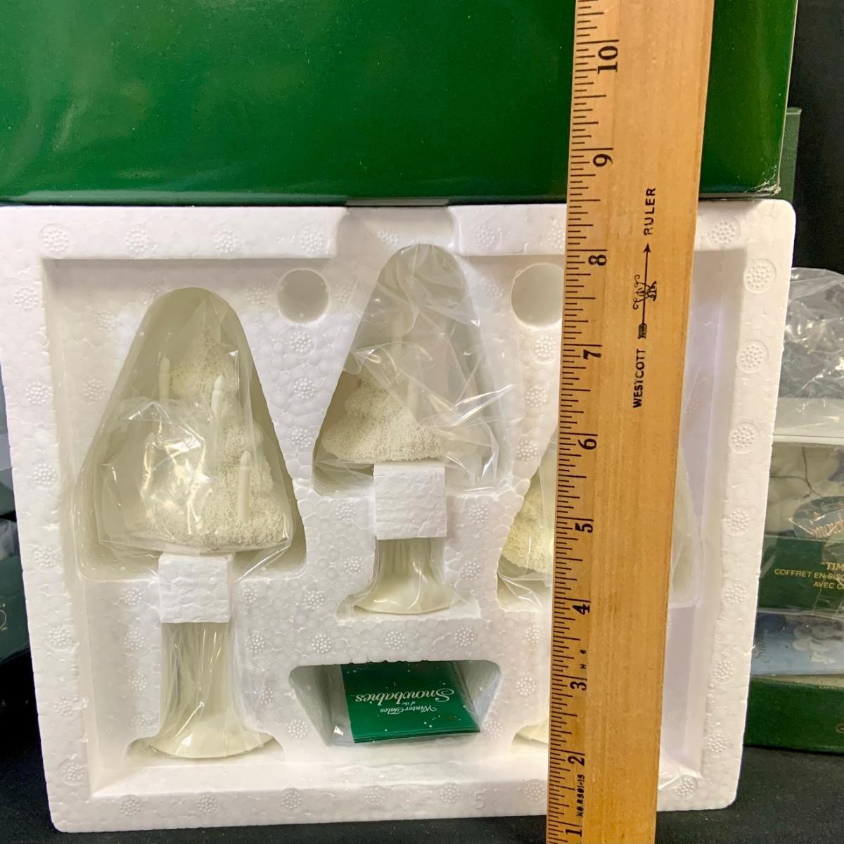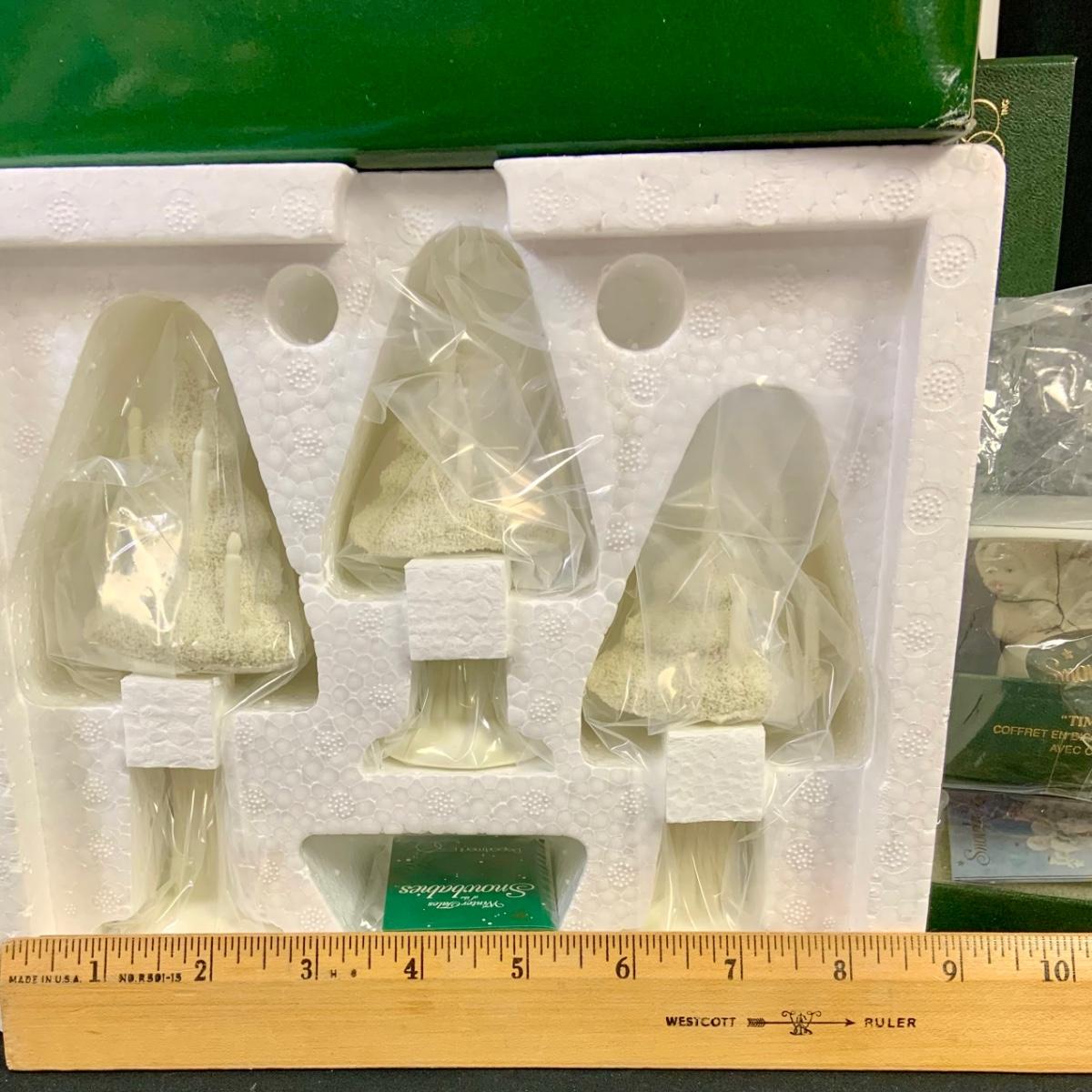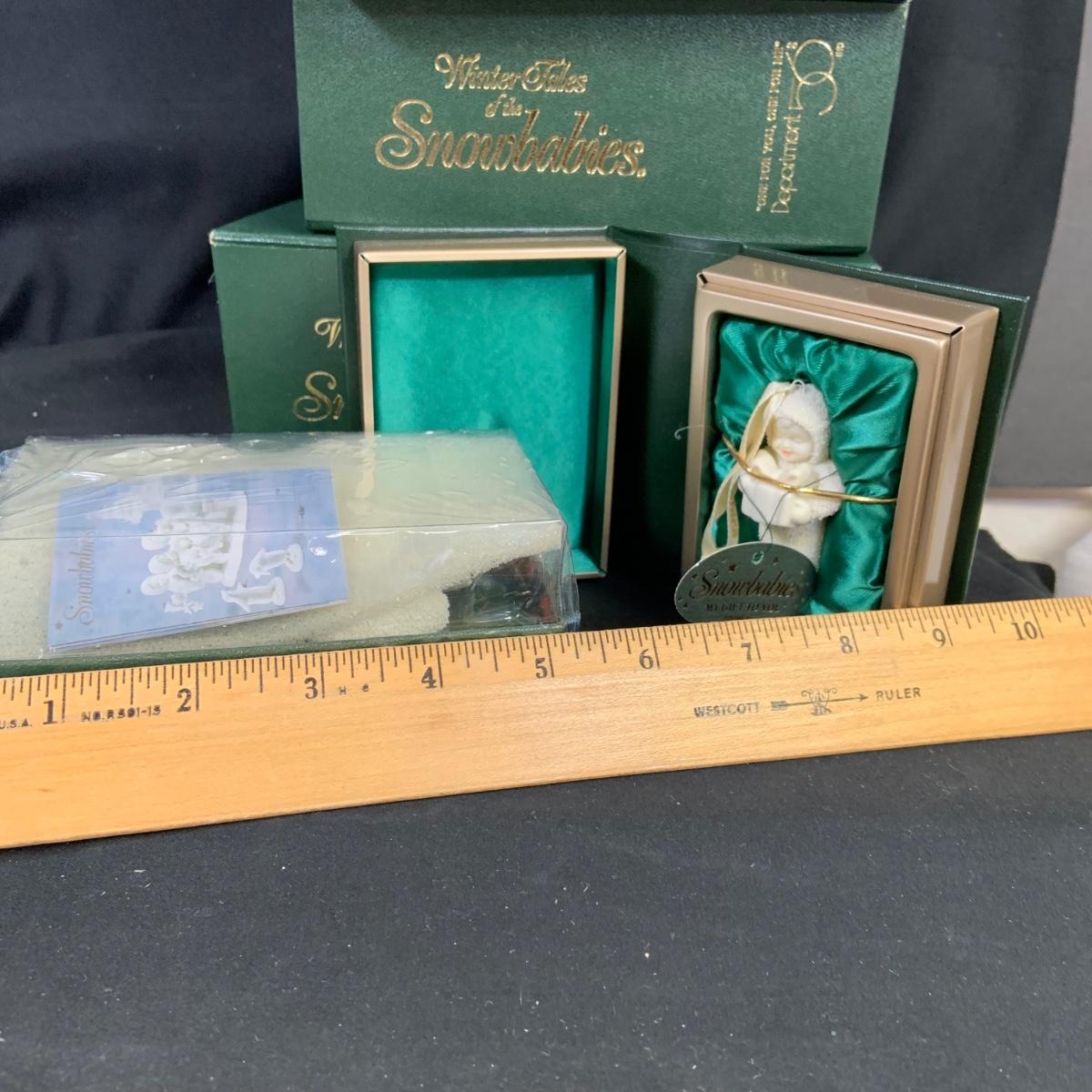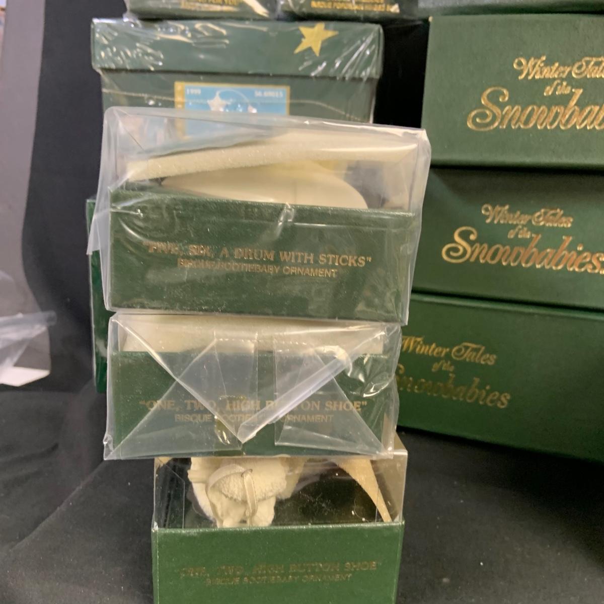 LOT:185: Large Selection of Dept 56 Snowbabies Porcelain Figurines, Trees, Trinket Boxes and More All in Original Boxes Most Unopened