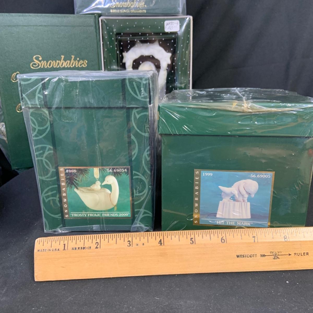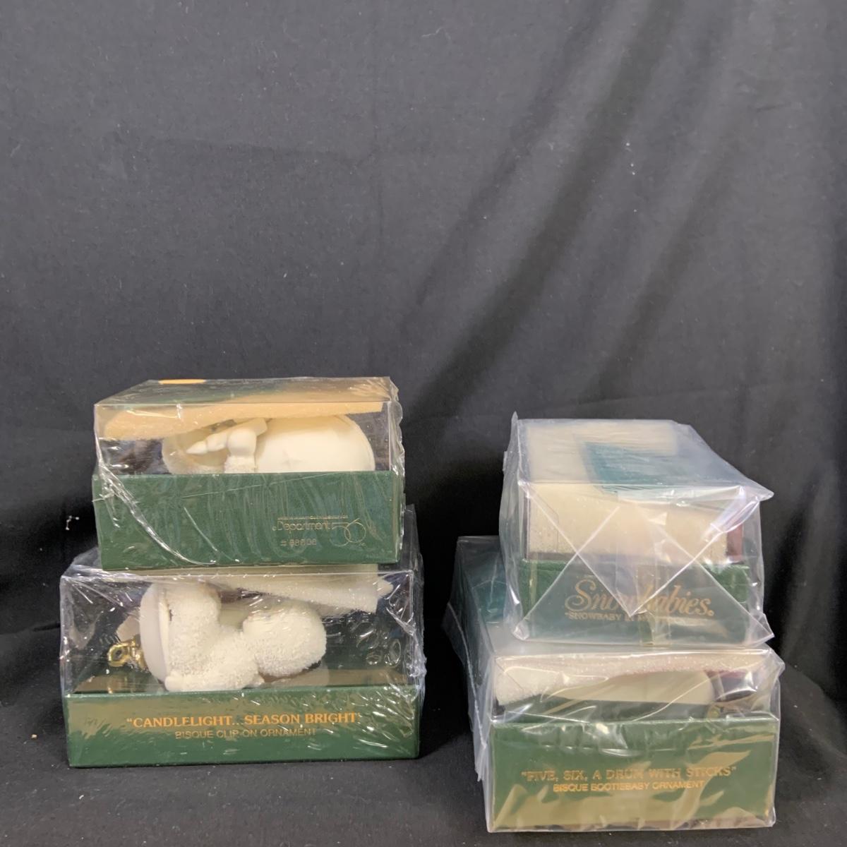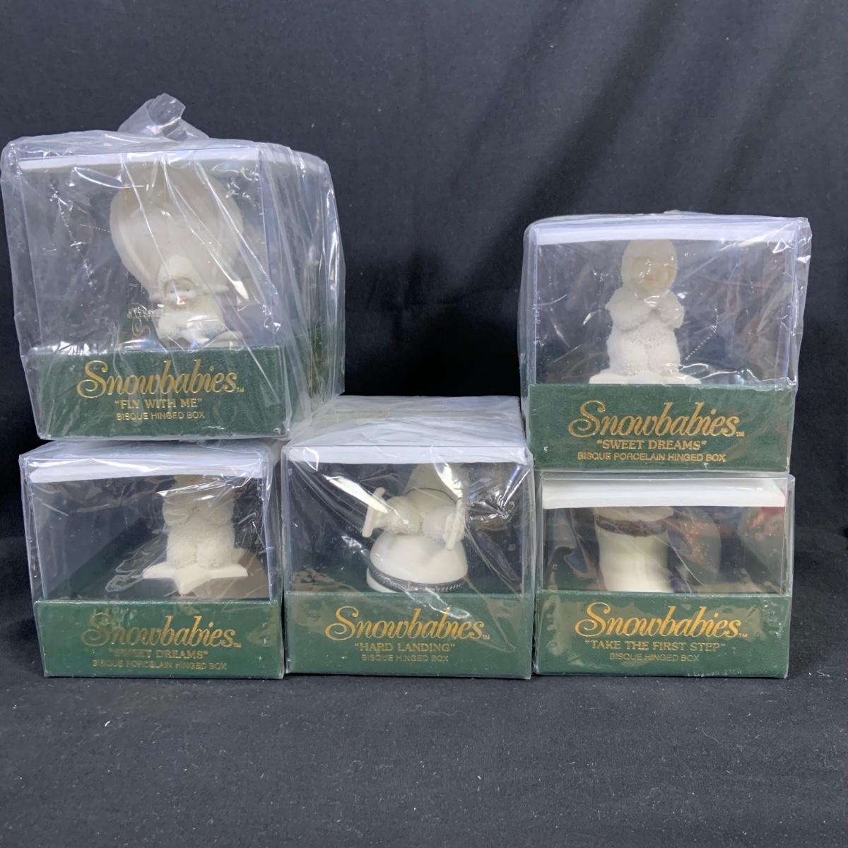LOT:186: Large Selection of Dept 56 Snowbabies Porcelain Figurines, Trinket Boxes, Ornaments and More- All in Original Boxes Most Unopened
