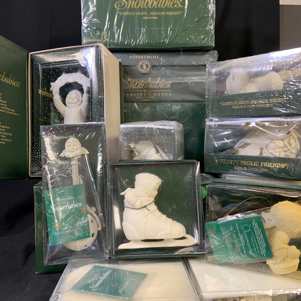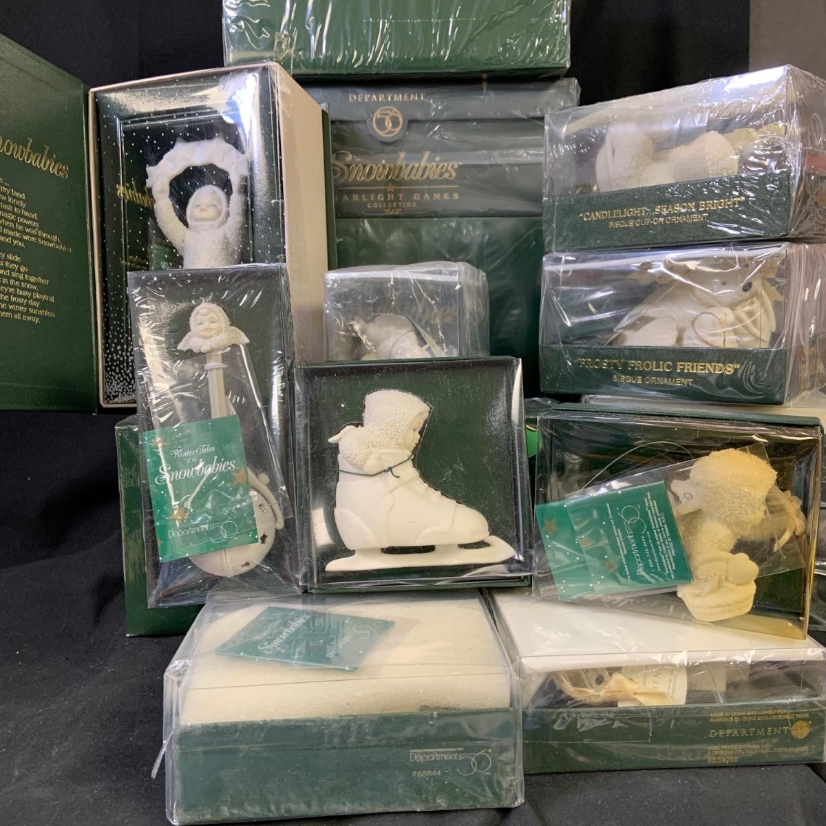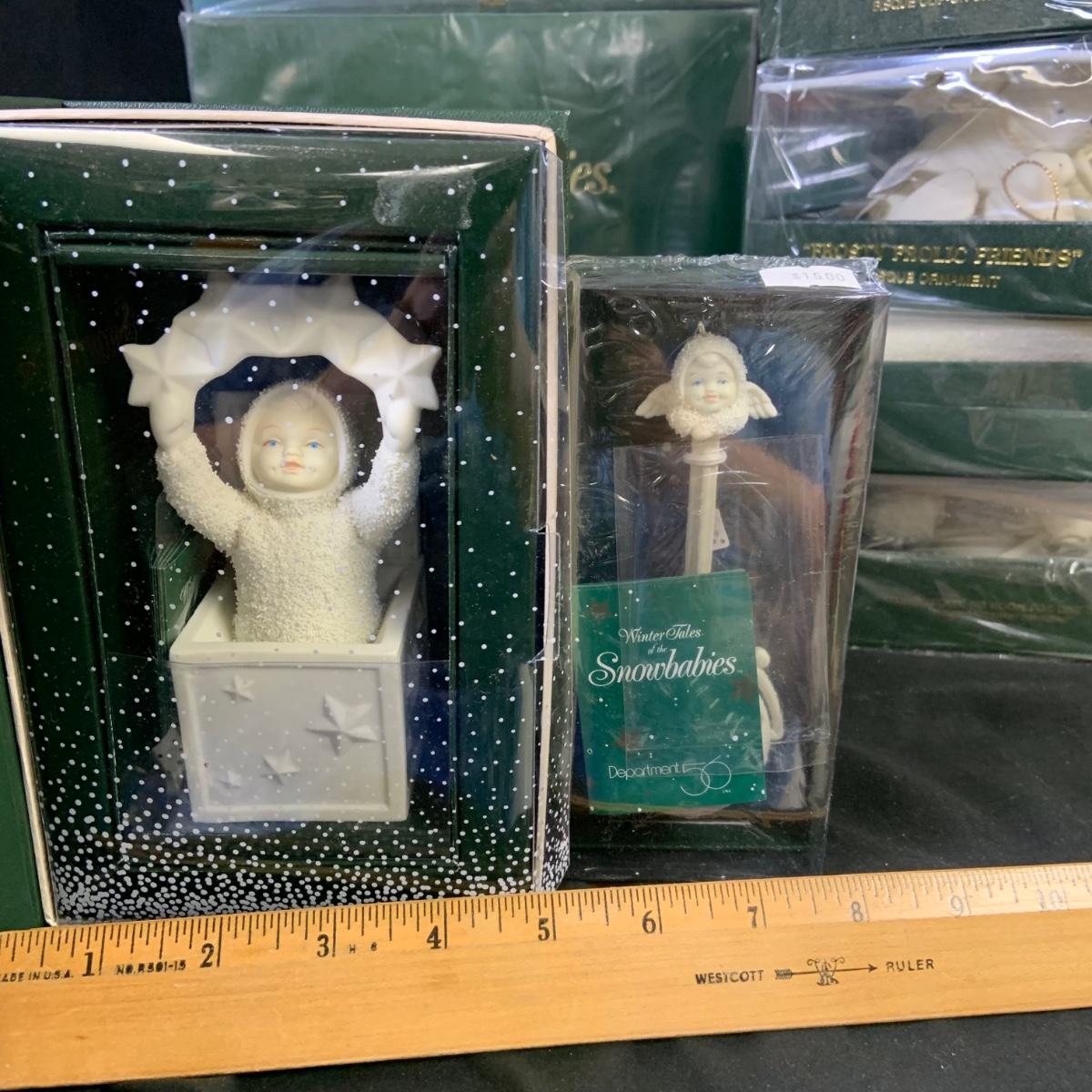 LOT:187:: Large Selection of Dept 56 Snowbabies Porcelain Figurines, Rattle and More- All in Original Boxes Most Unopened