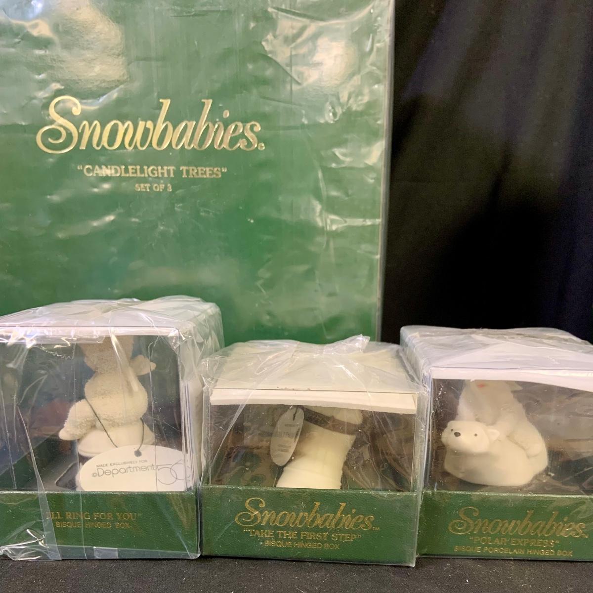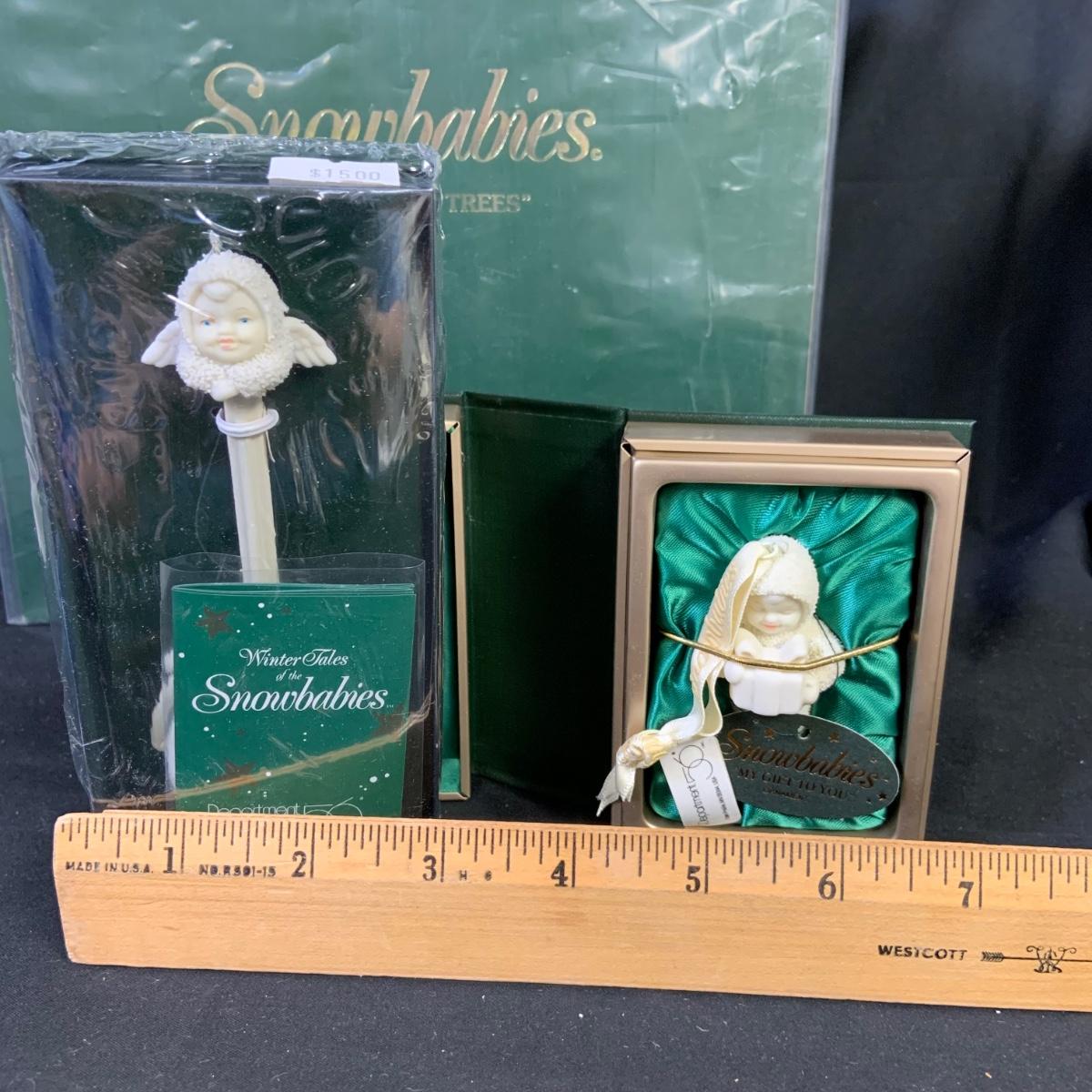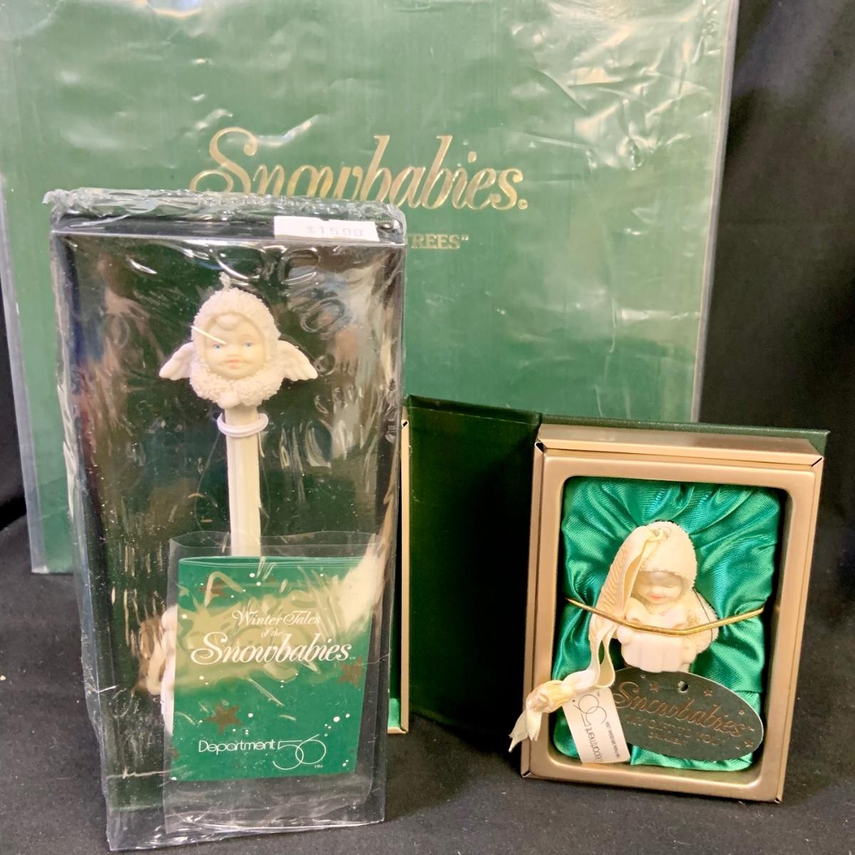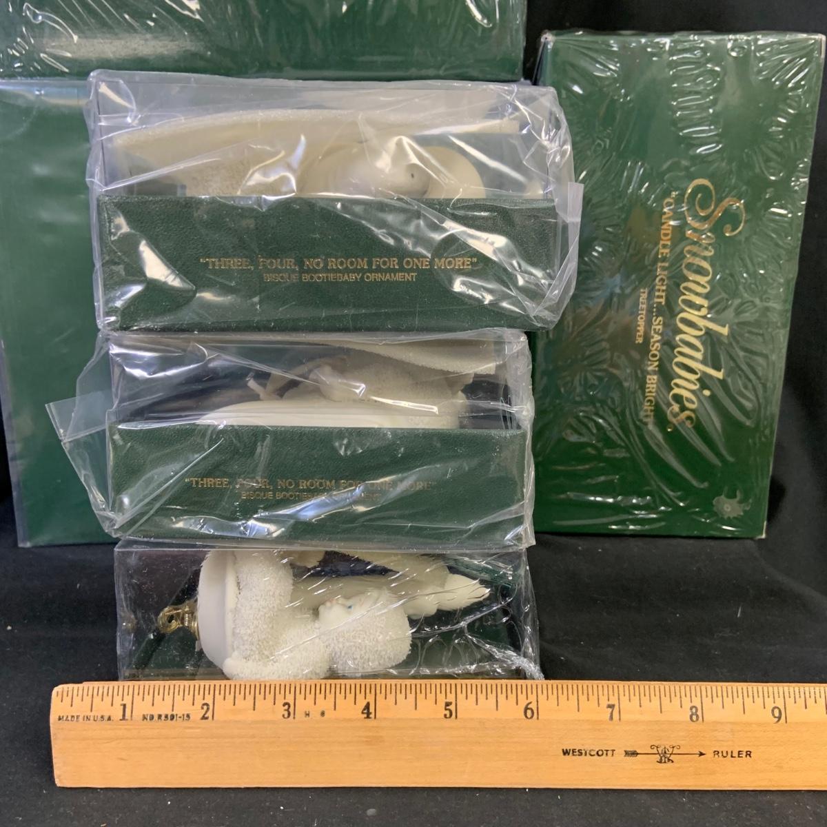 LOT:190: Large Selection of Dept 56 Snowbabies Porcelain Figurines Ornaments, Rattle and More - All in Original Boxes Most Unopened