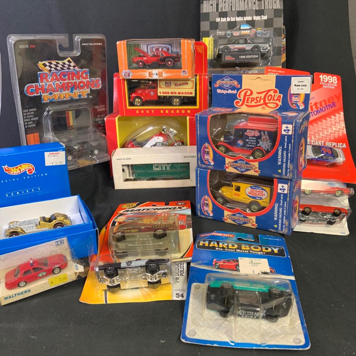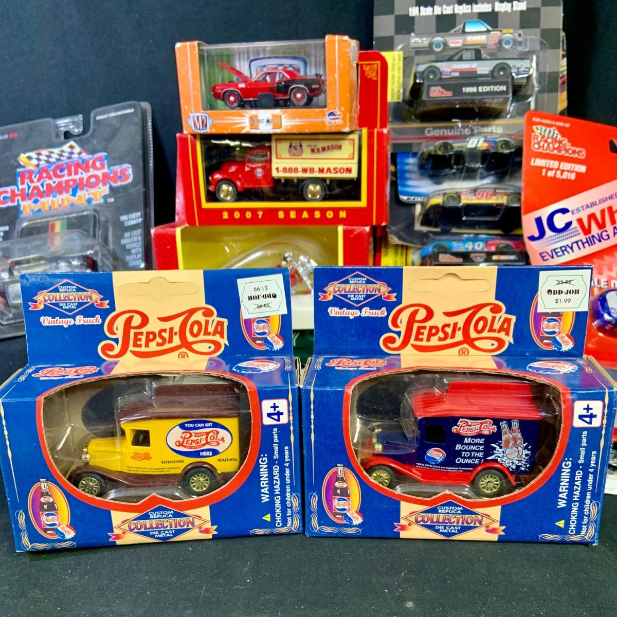 LOT:197: Tootsie Toy Car, Walthers, Racing Champion, Hot Wheels, Matchbox Pepsi Trucks,Road Champs Truck, Case and More