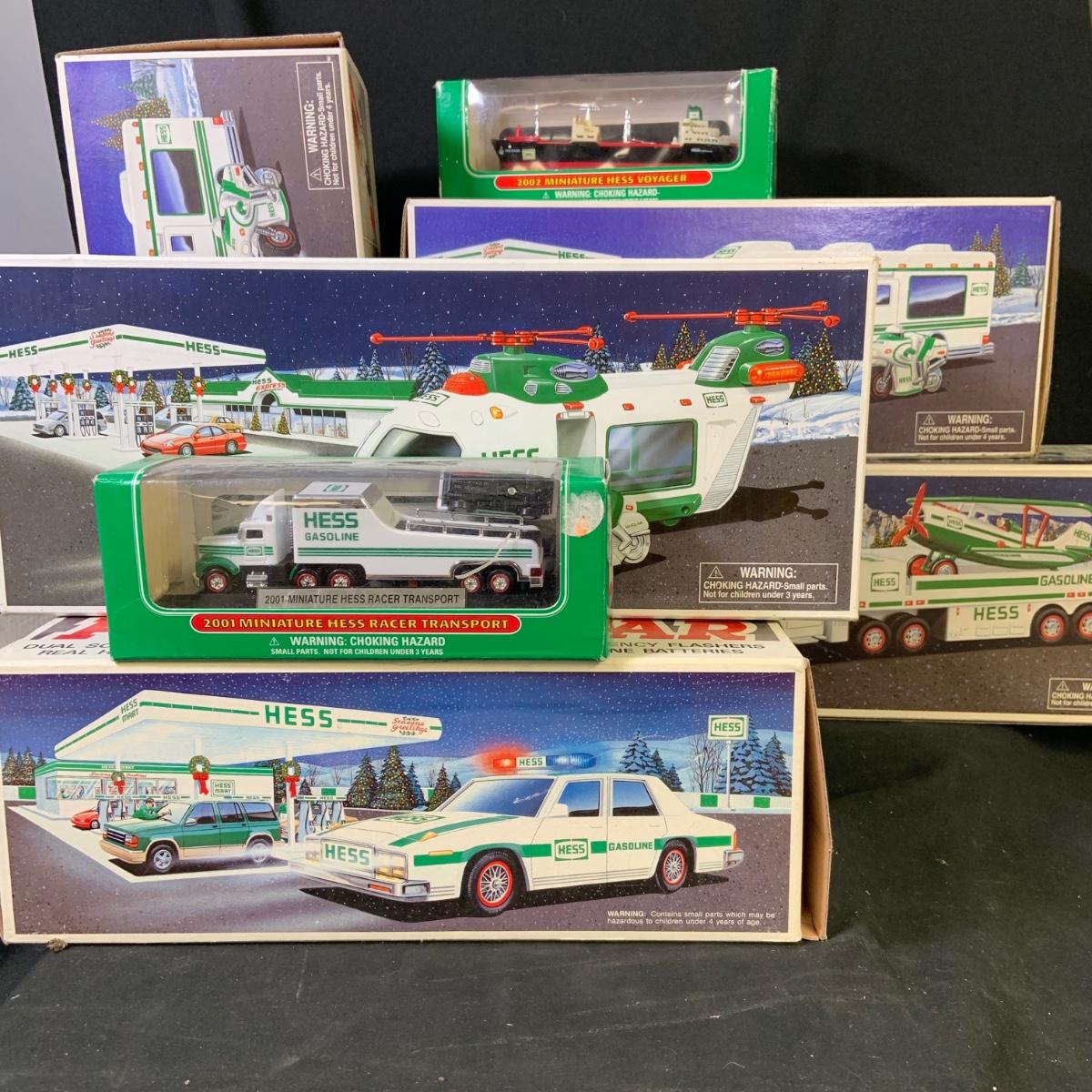 LOT:203: Collection of 5 Vintage Hess Trucks In Original Boxes and 2 Hess Miniatures