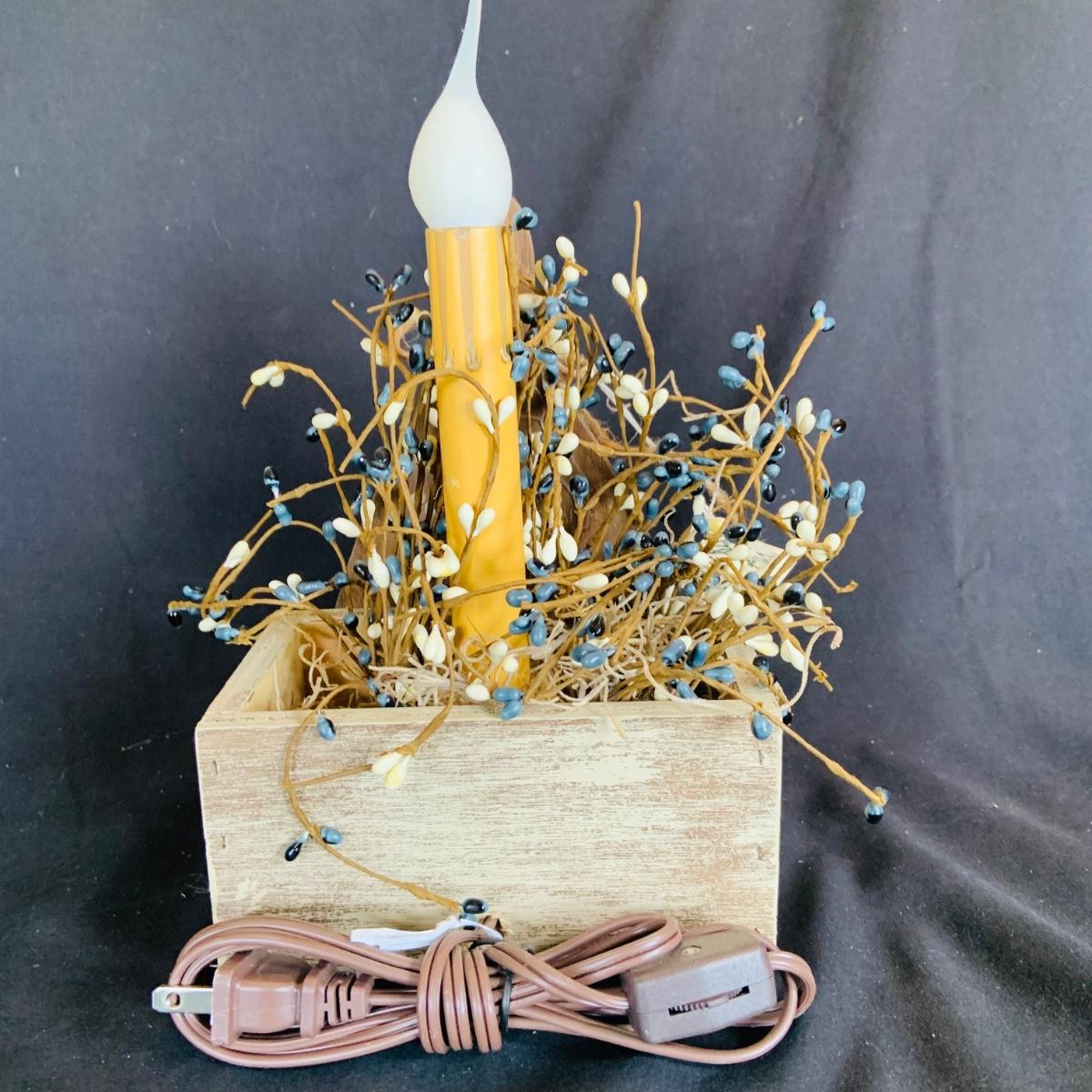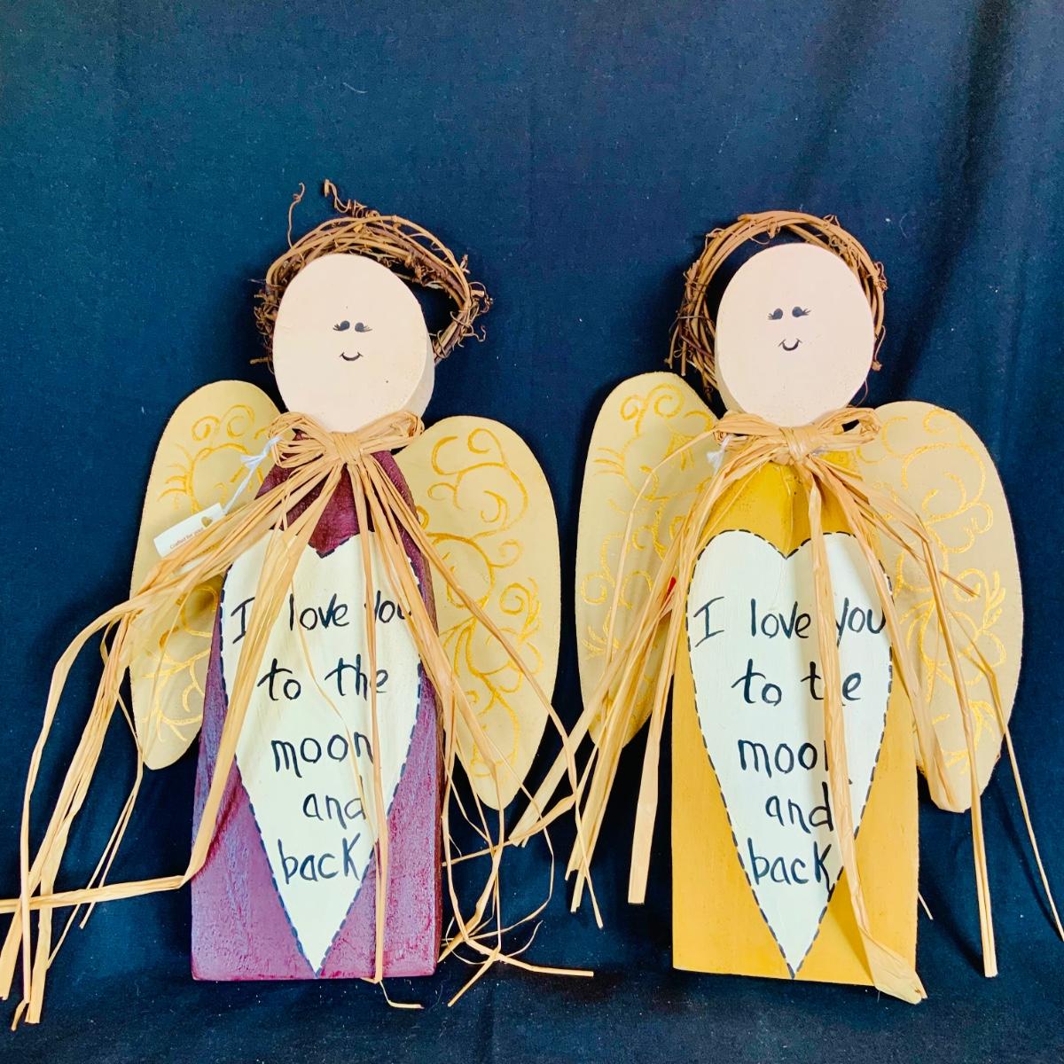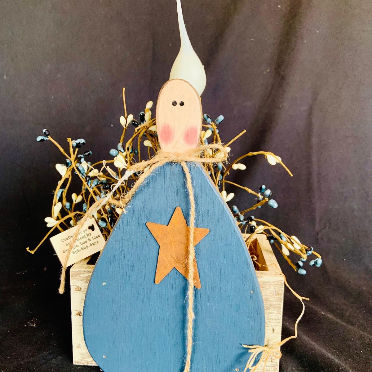 LOT:208: Rustic Wooden Home Decor - Angel Candle Stick Lamp, 2 Wooden Angel Plaques and a Welcome Potted Plant Sign