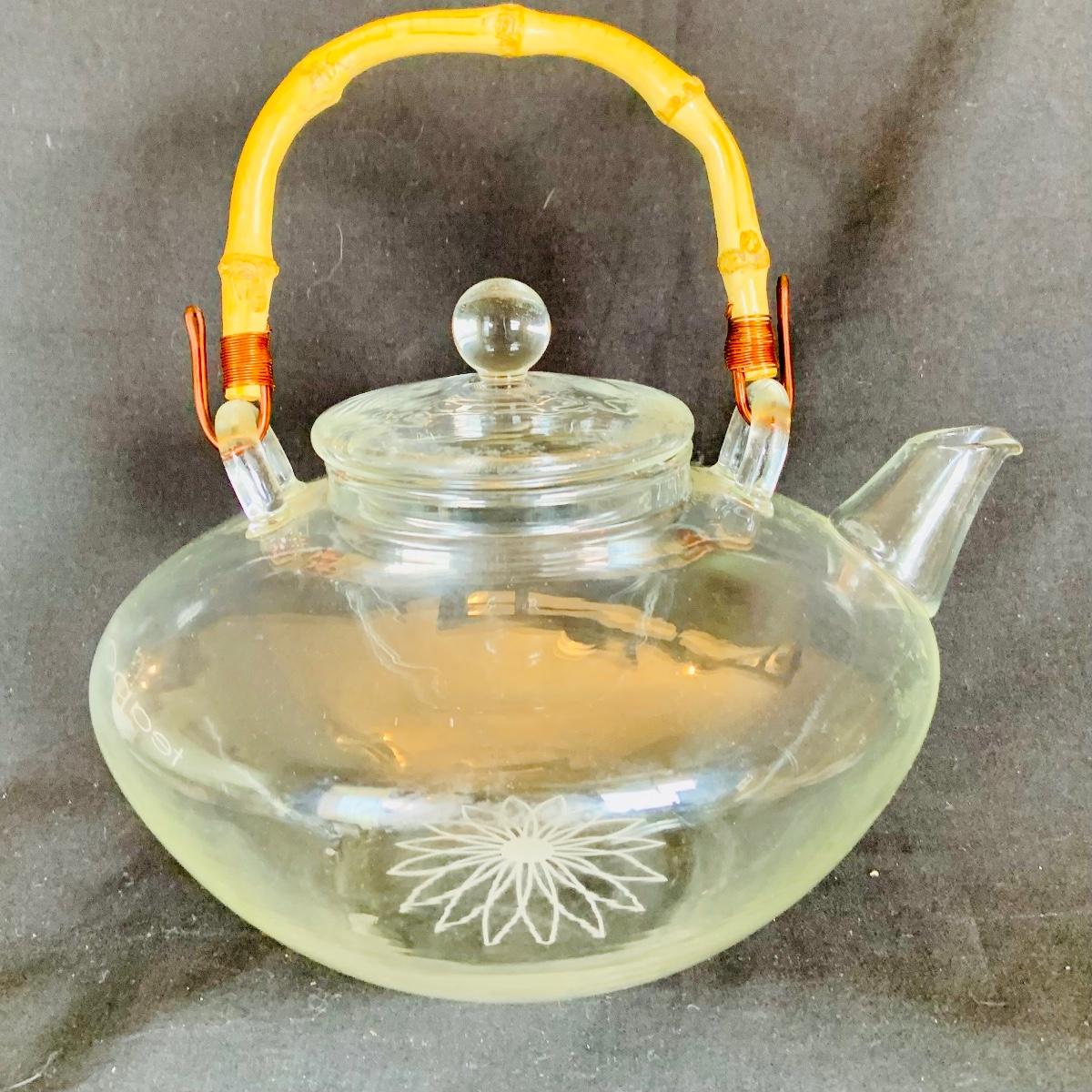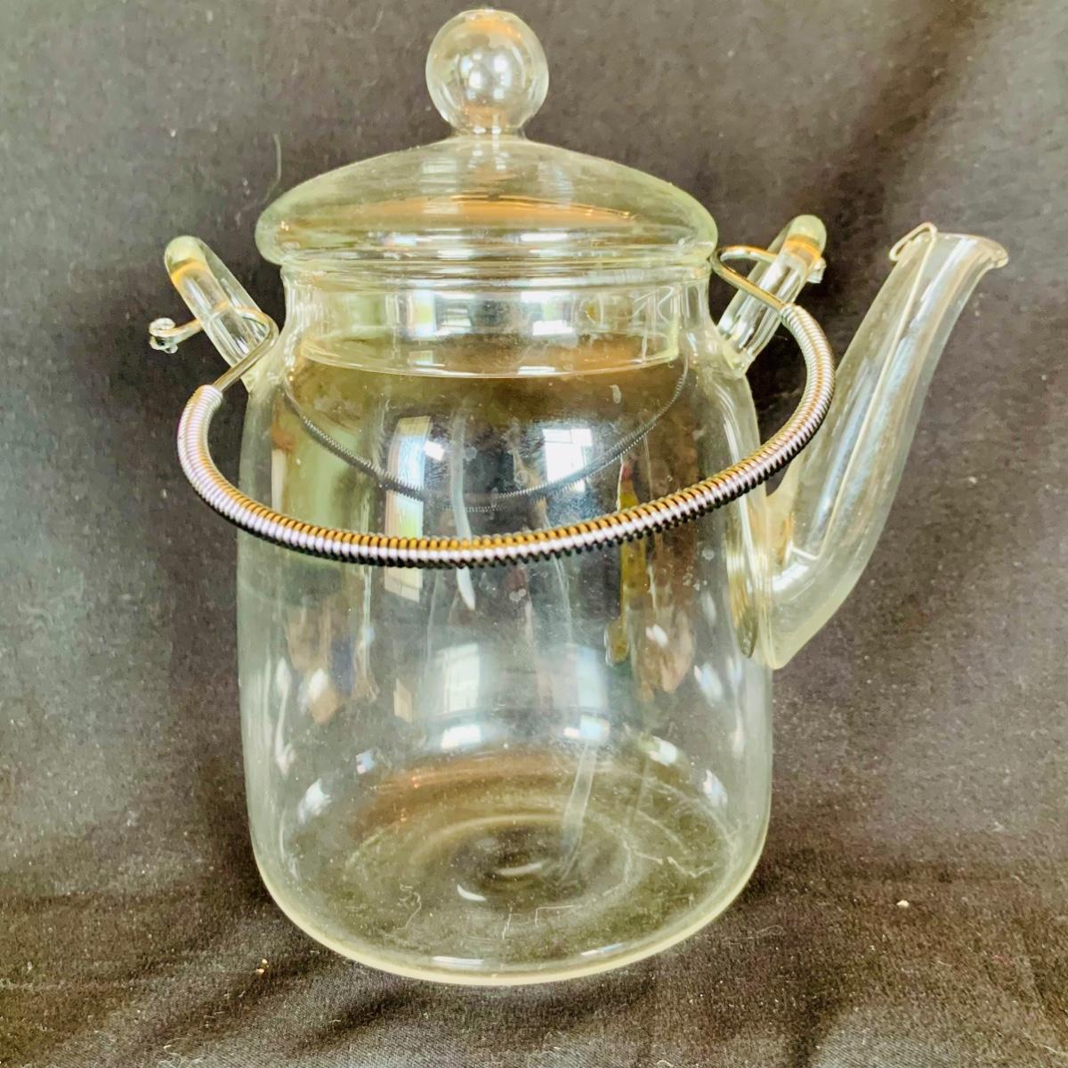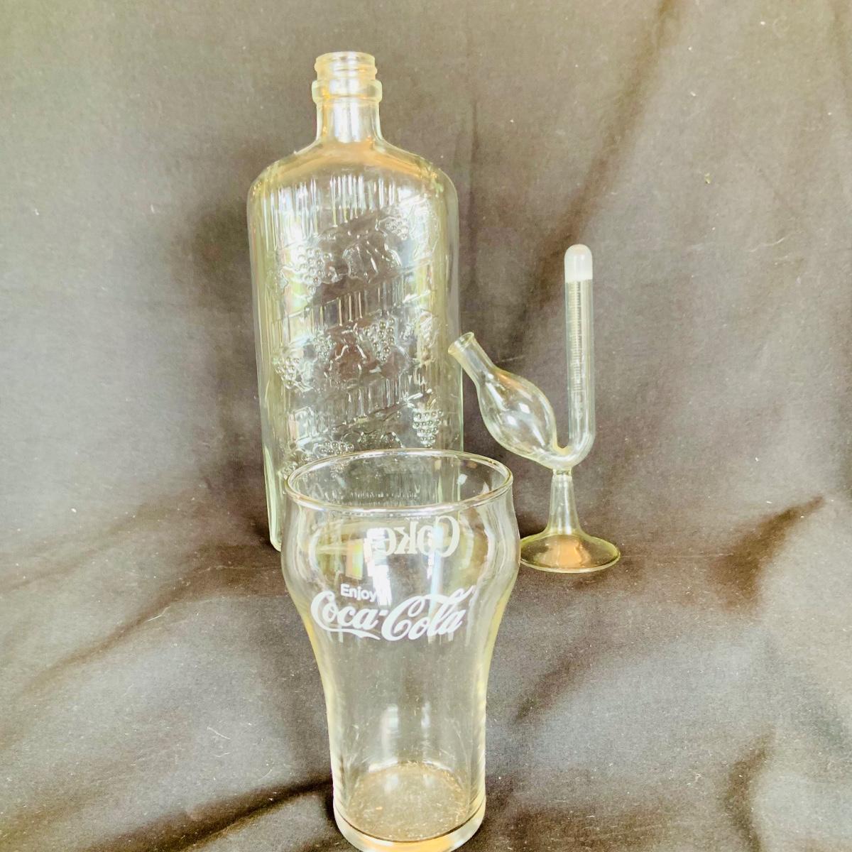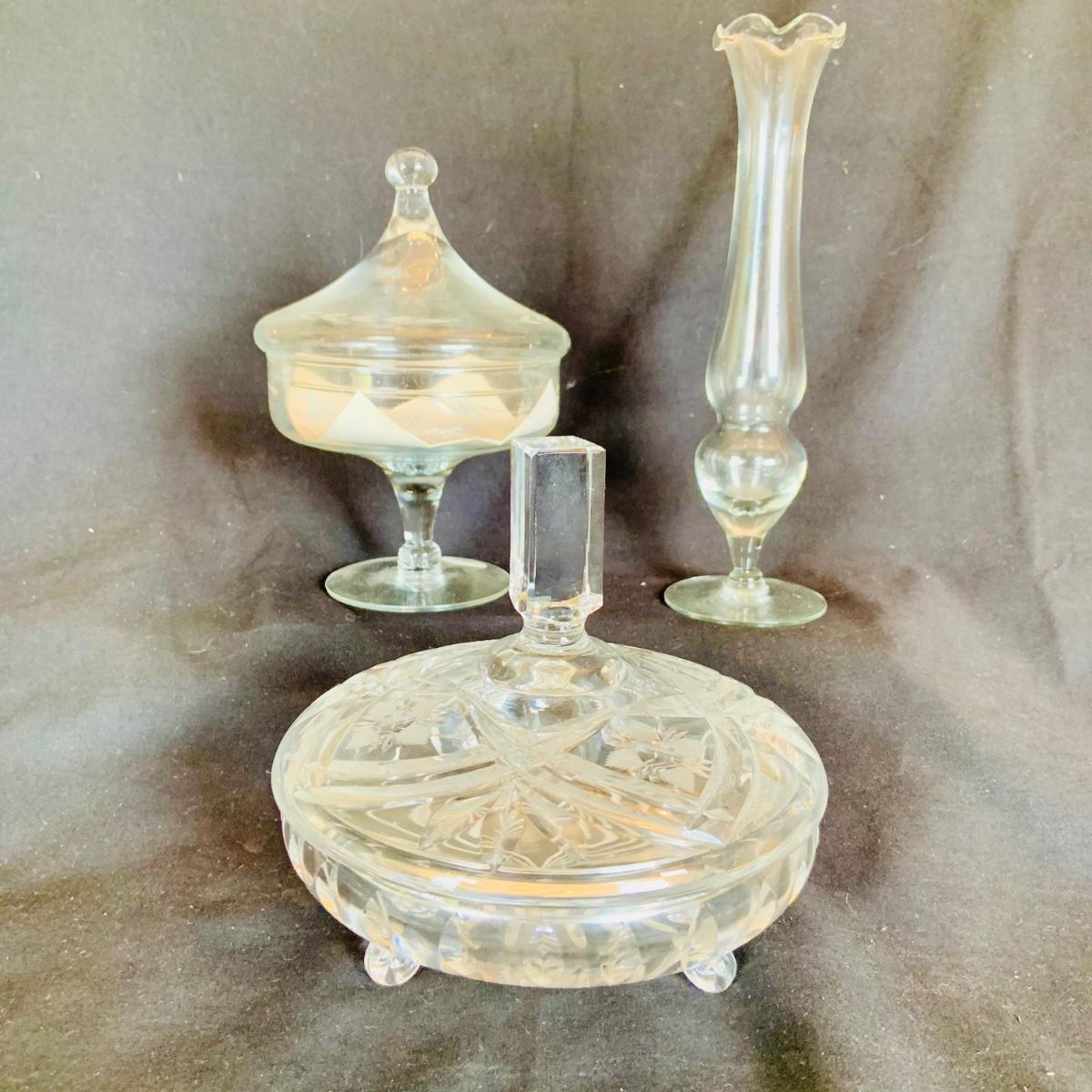 LOT:210: Coca-Cola Glass, Glass Tea and Coffee Pots, Princess House and Other Covered Candy Dish, Etch Glass Pitcher and More