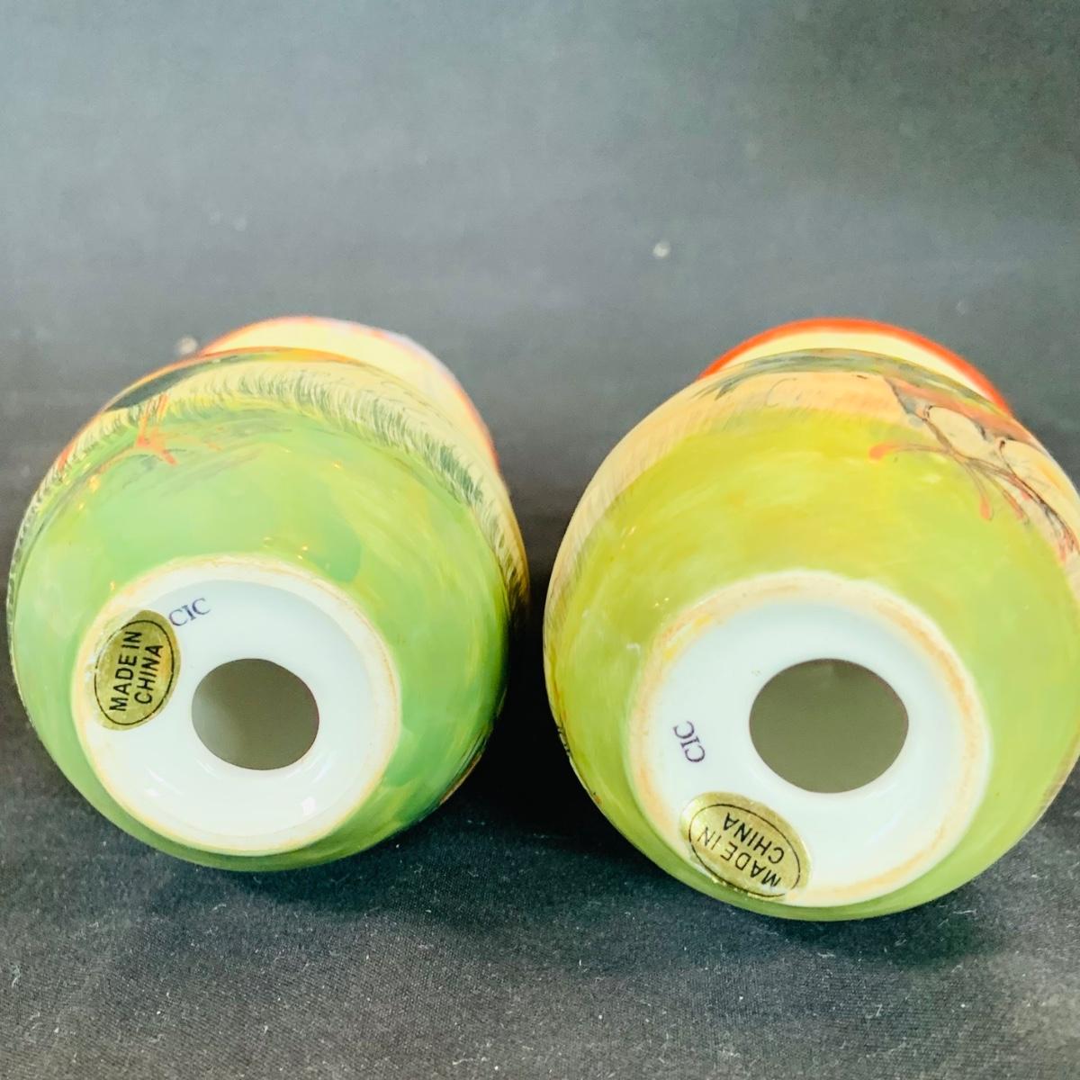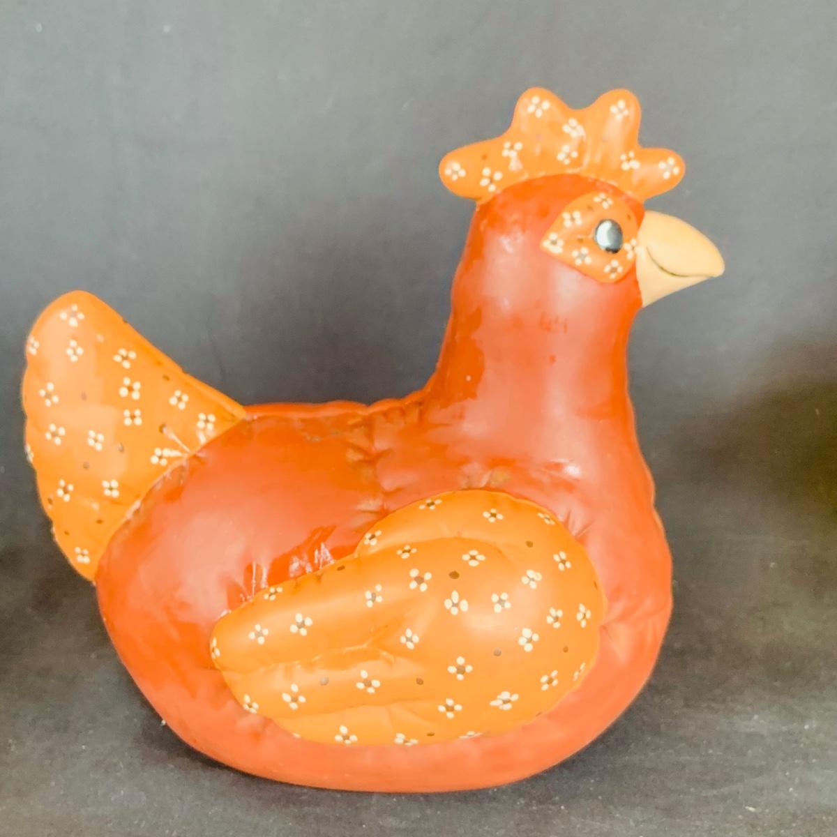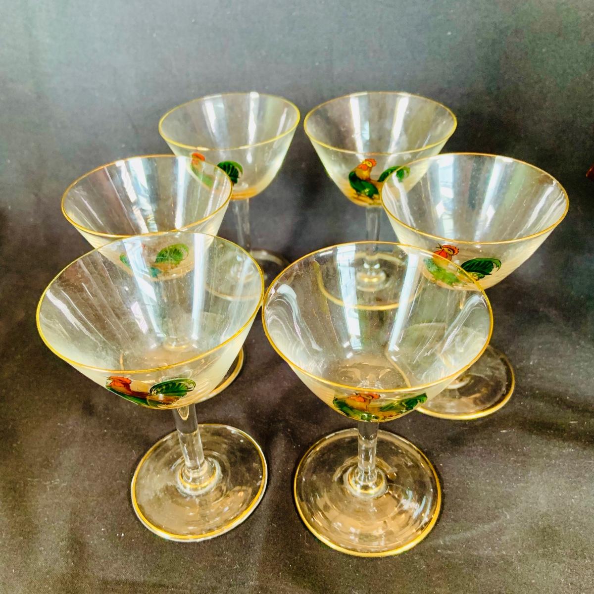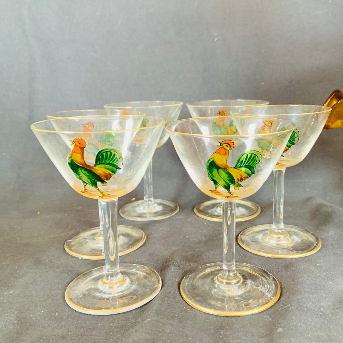 LOT:212: Hand Painted Rooster Glasses and Jar, Rooster Salt and Pepper Shakers, Ceramic Chicken and Amber Glass Candy Dish