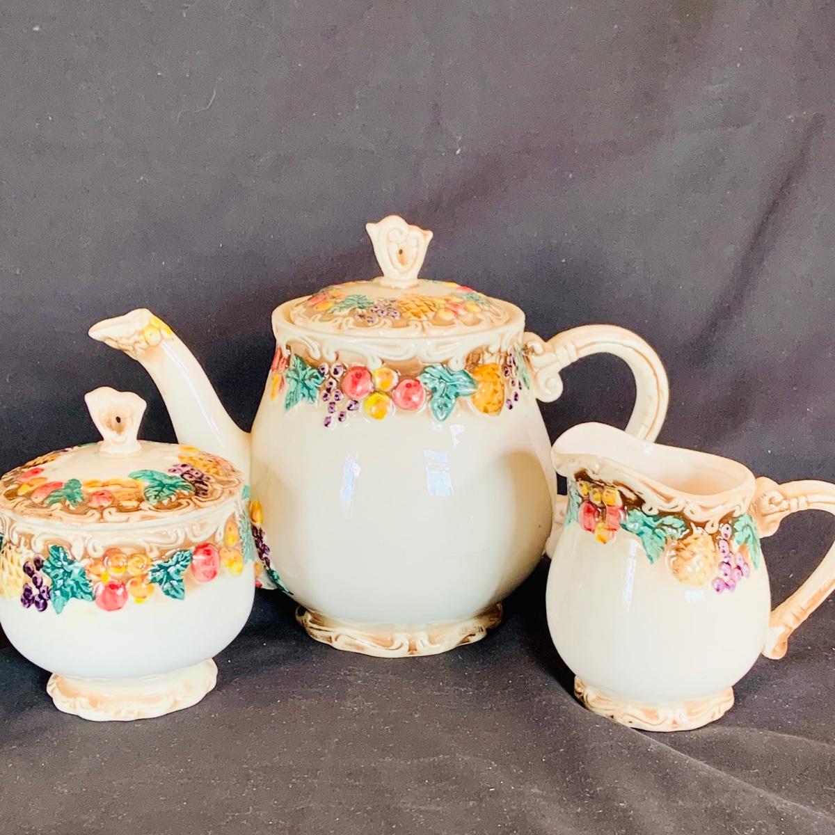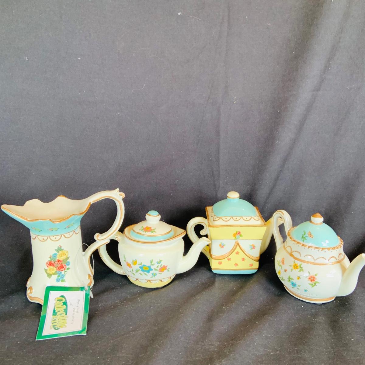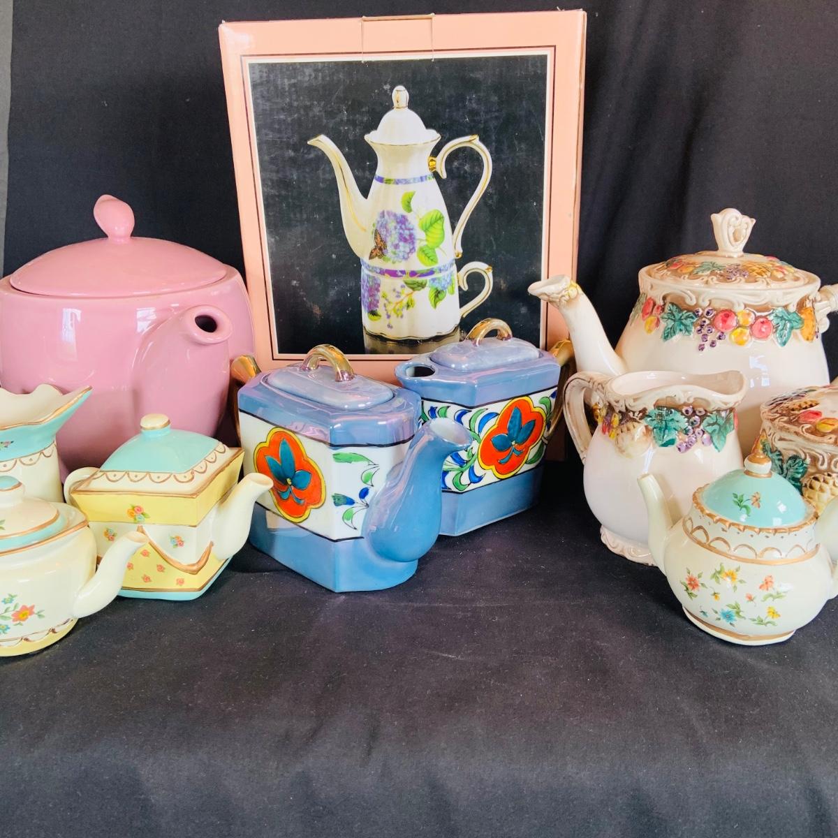 LOT:213: Collection of Tea Pots and Creamers Including Vista Alegre Portugal Pink Earthenware Tea Pot, Lefton Tea Set, Tea For One In Original Box, Ornamental Miniature Teapots and More