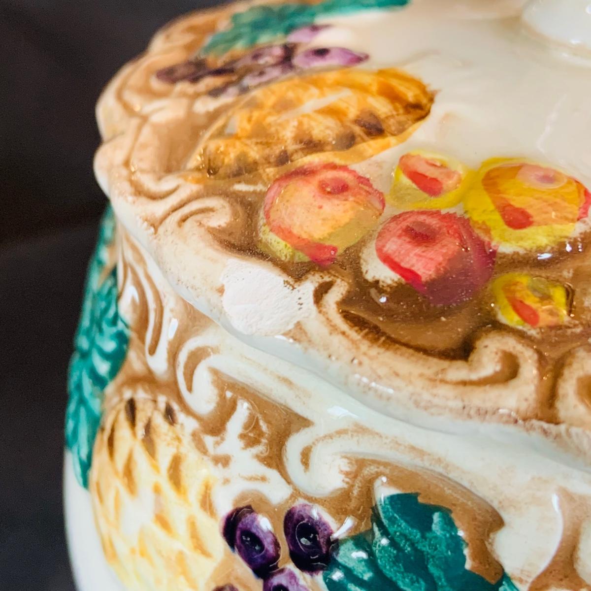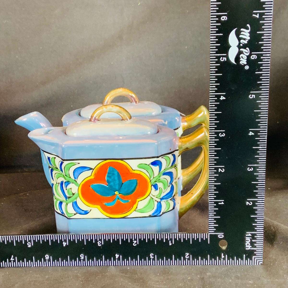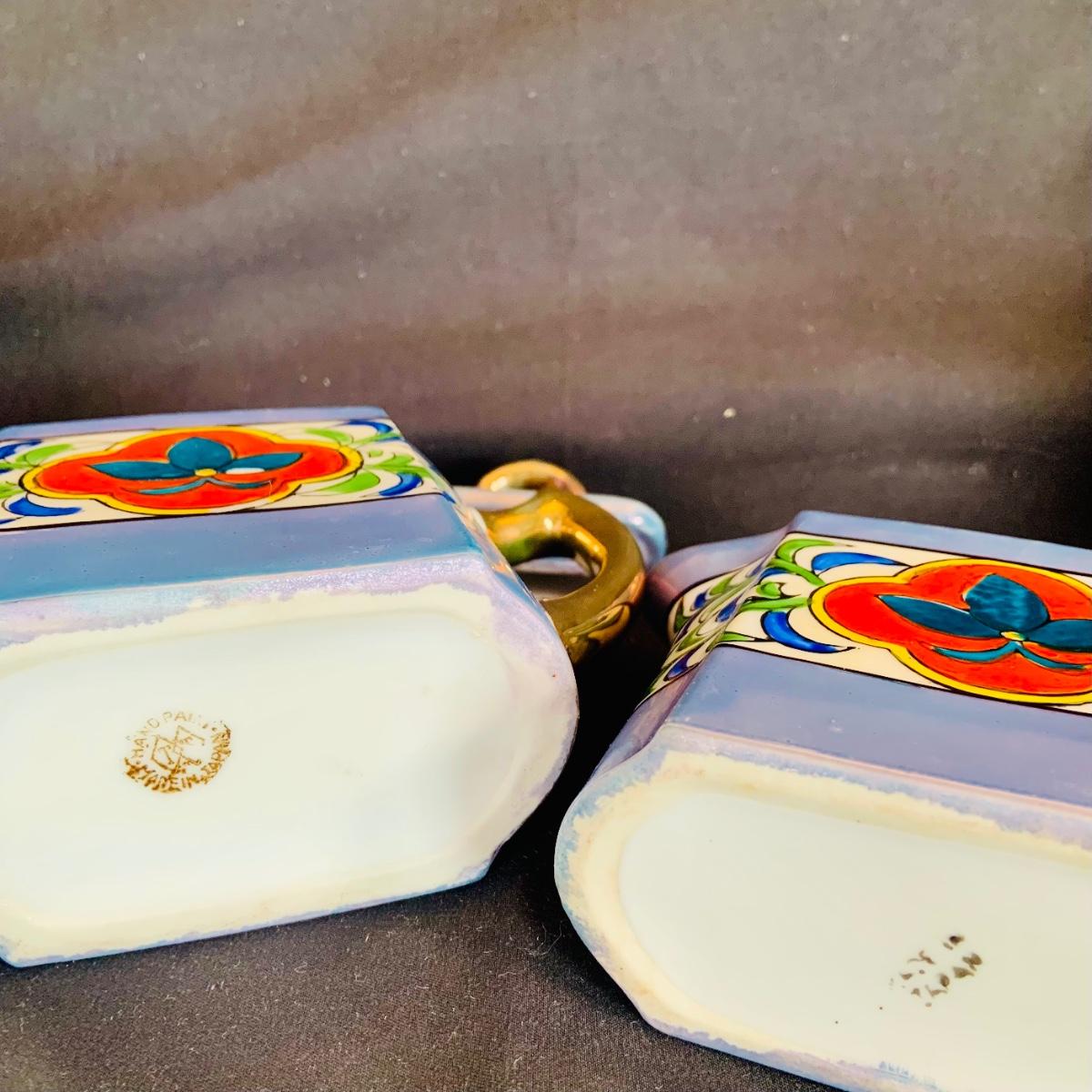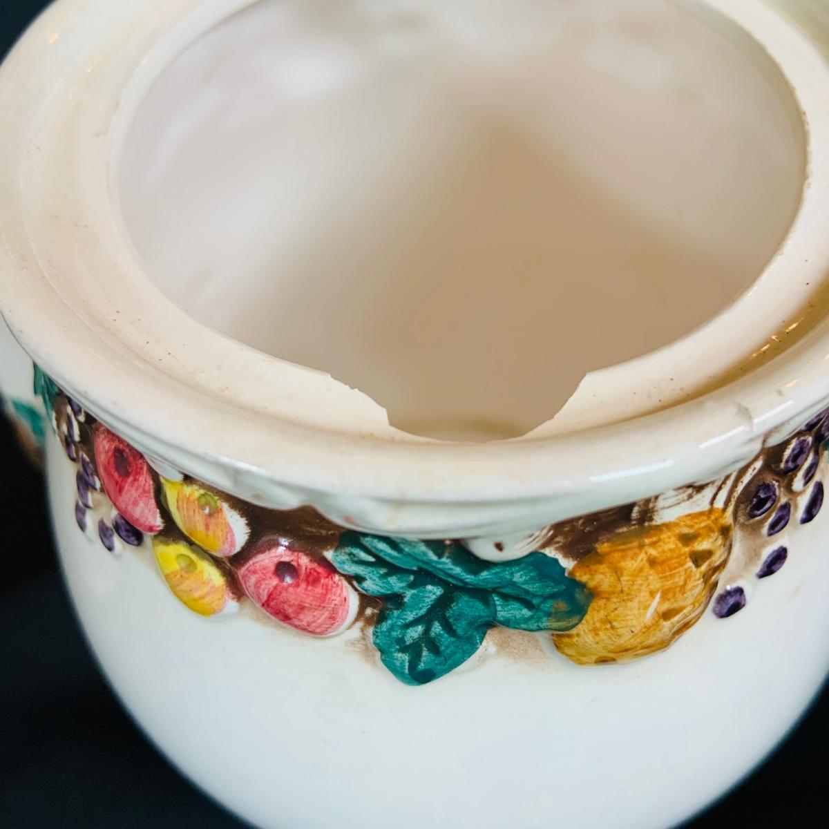 The Lefton sugar bowl has a chip on the inside rim of the bowl.