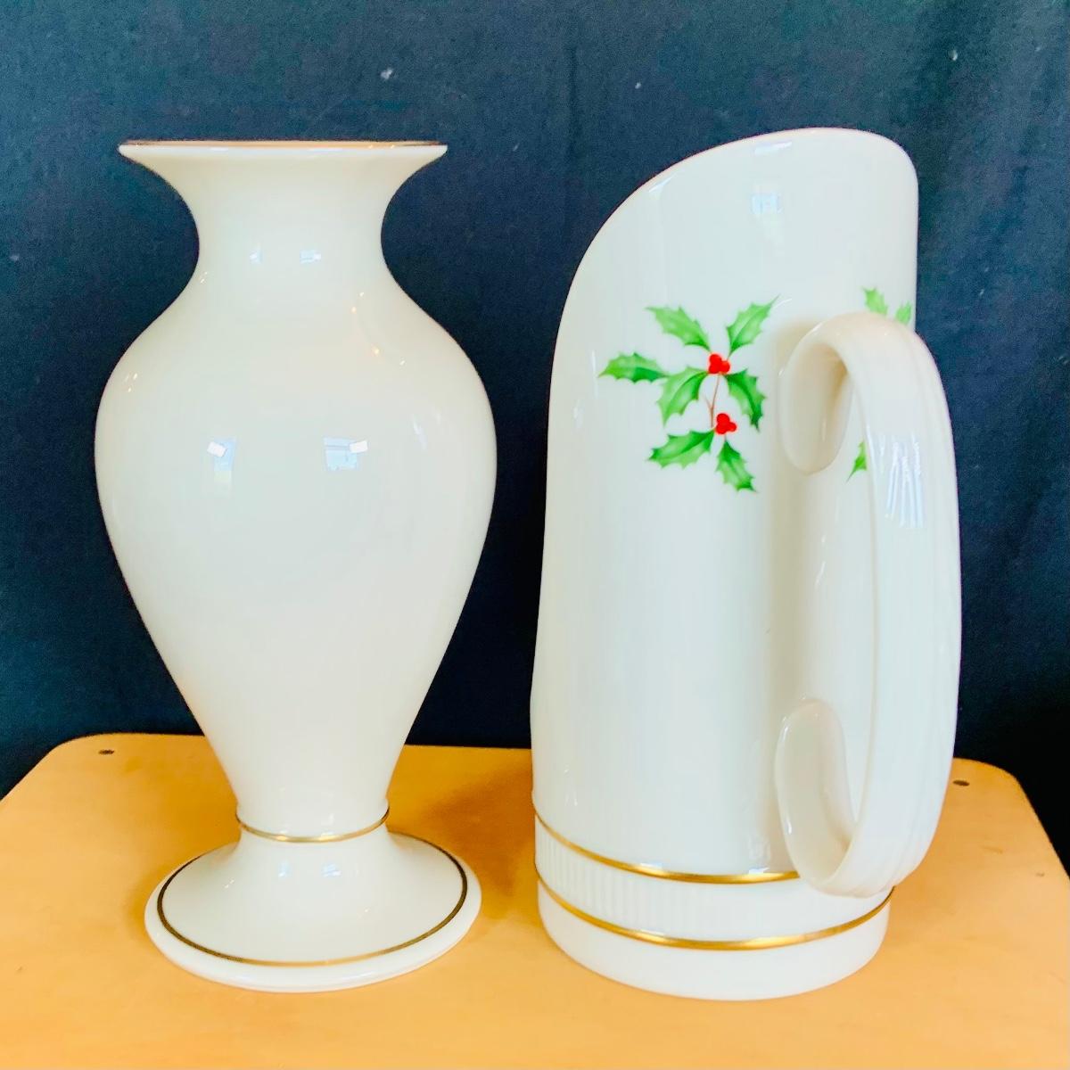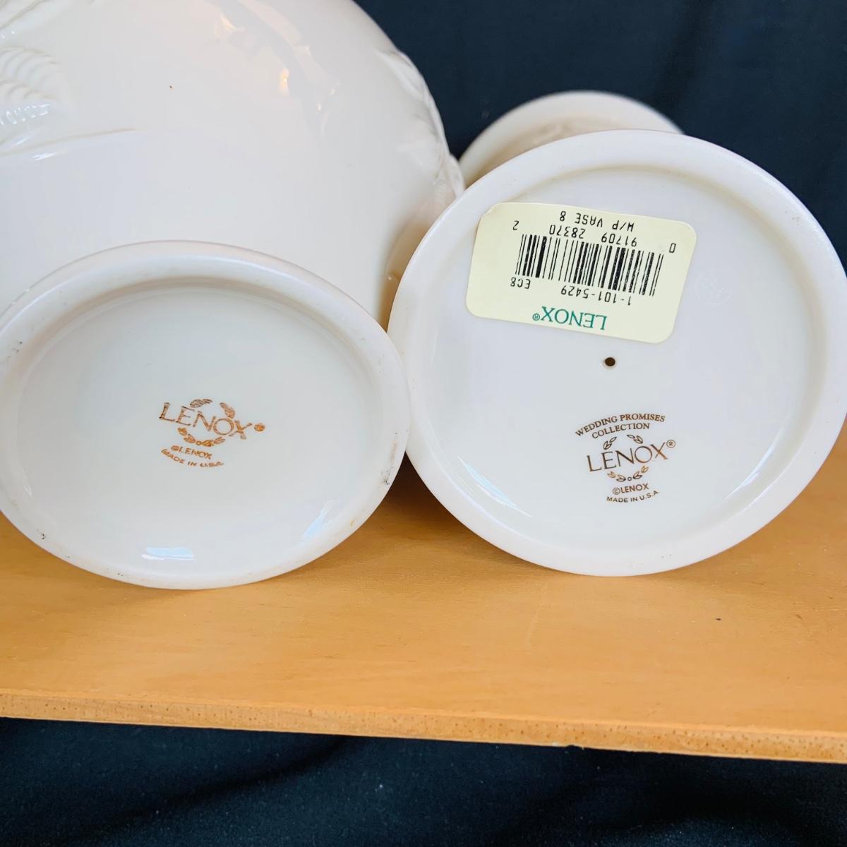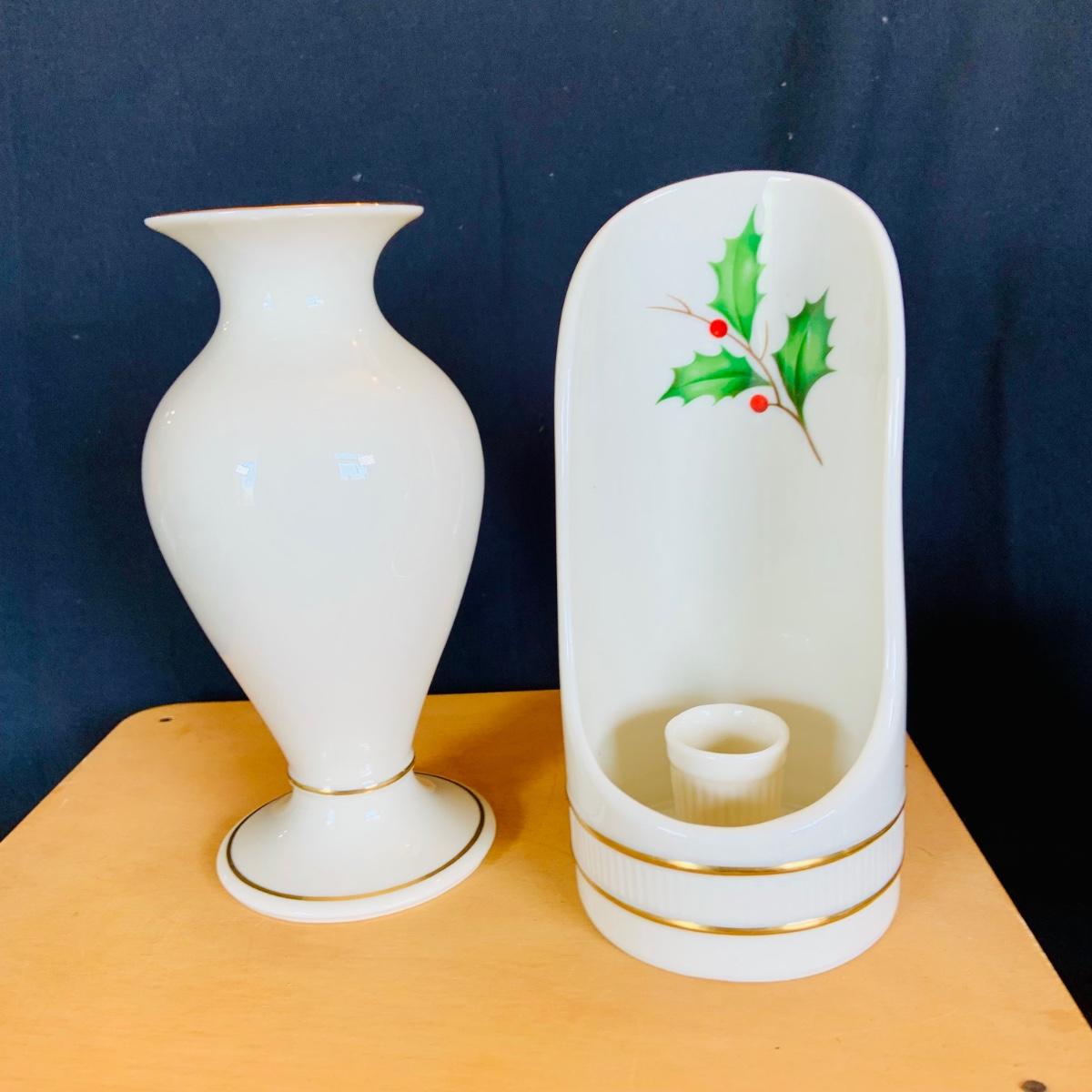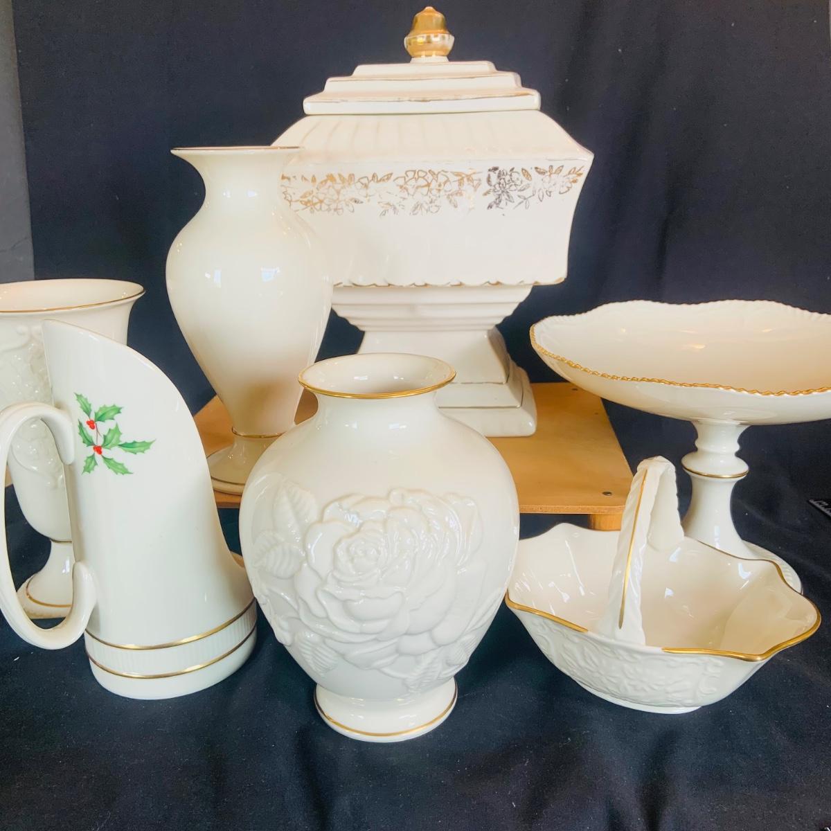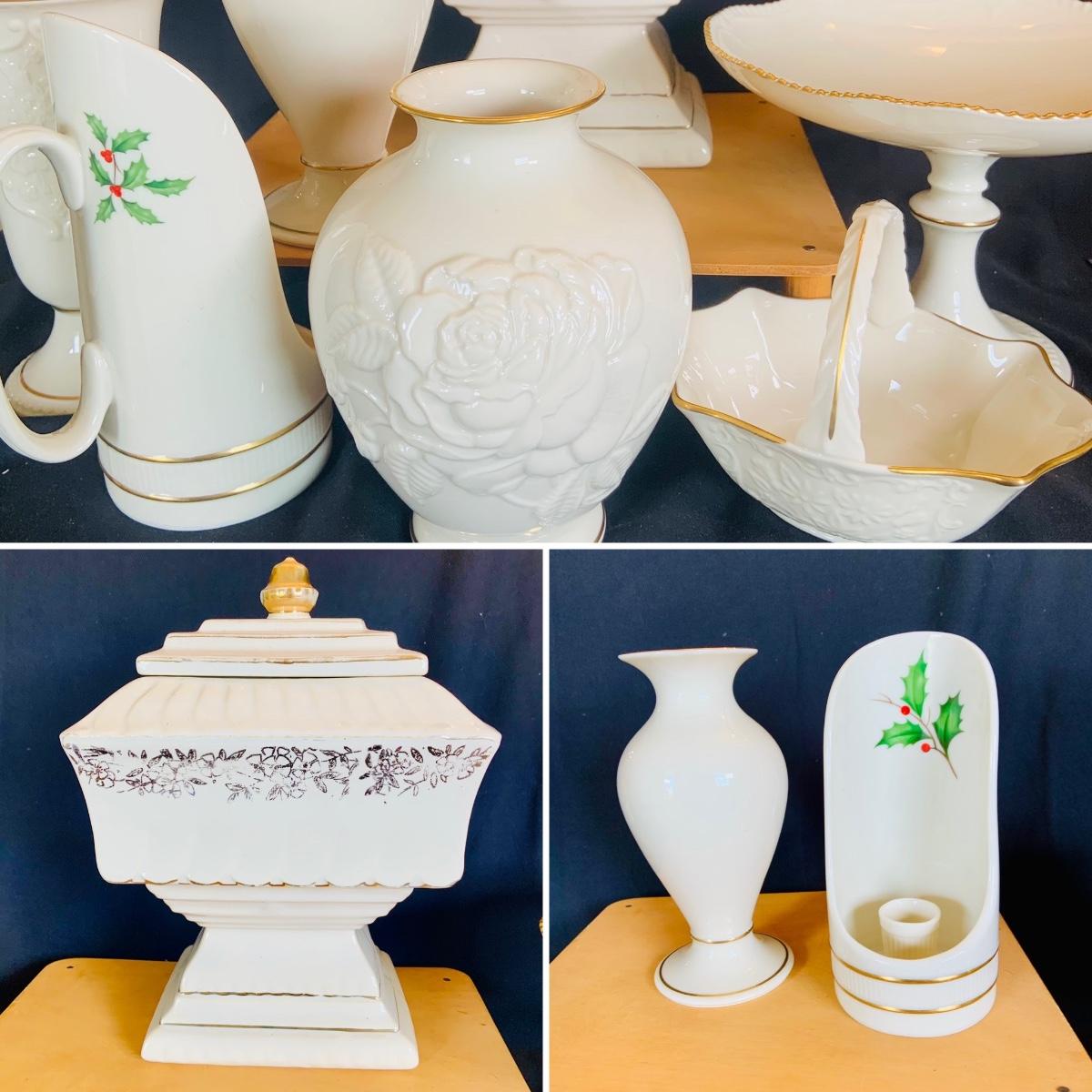 LOT:215: McCoy Wedding Cookie Jar and a Collection of Lenox Vases, Bowls and Holiday Candle Holder