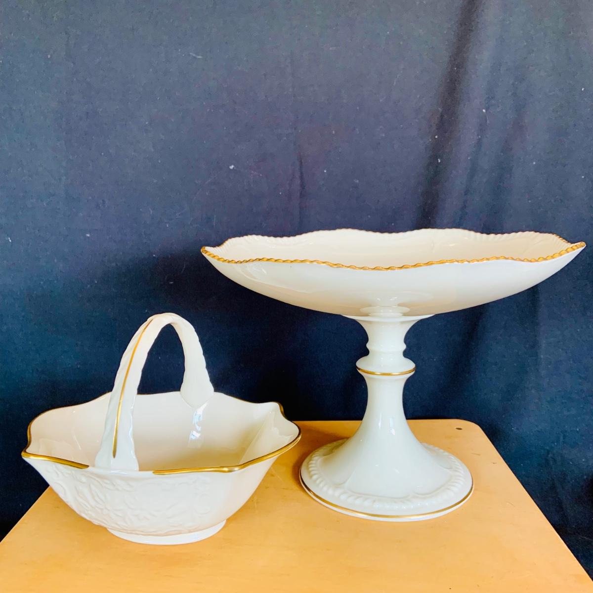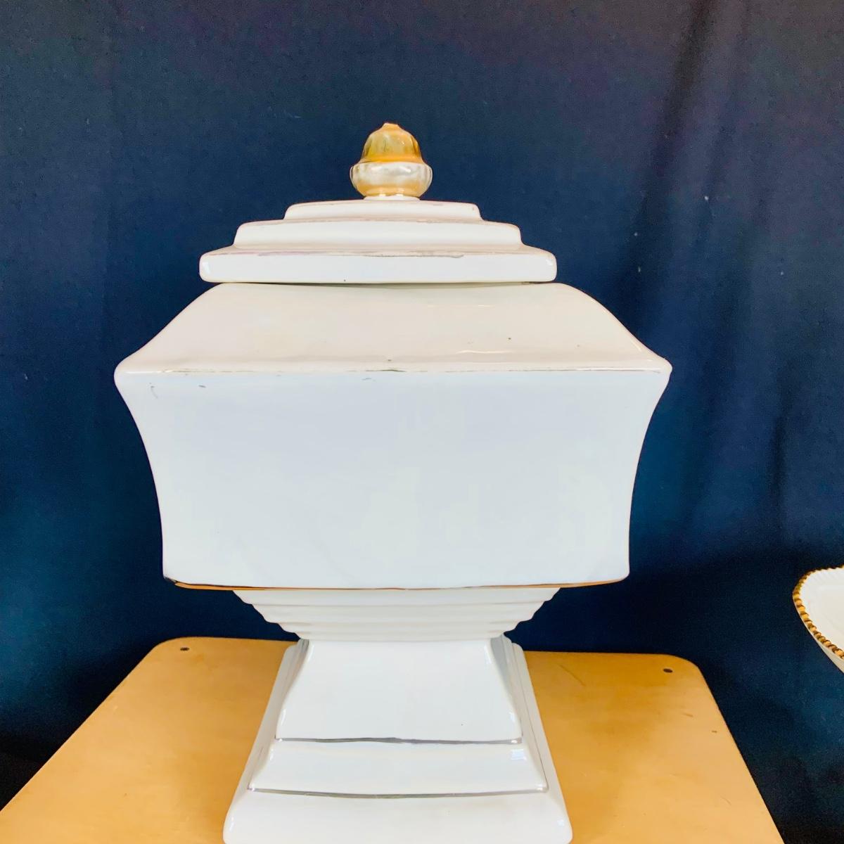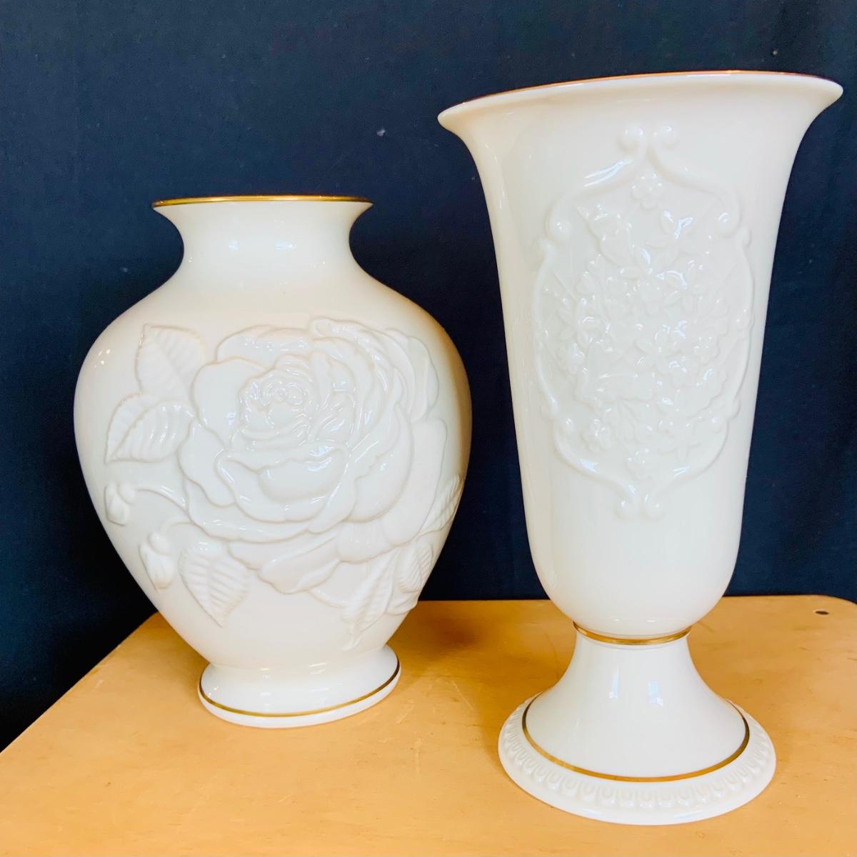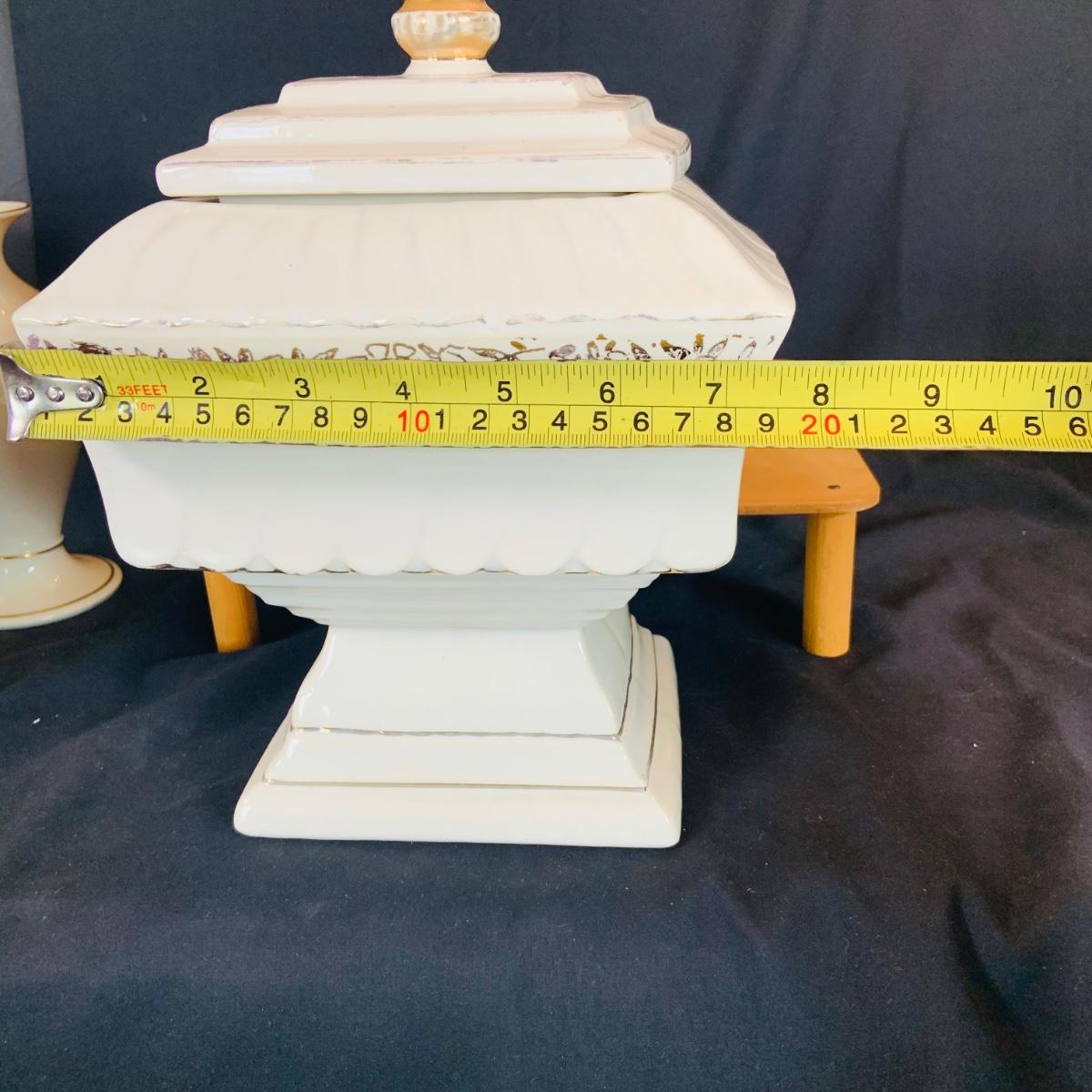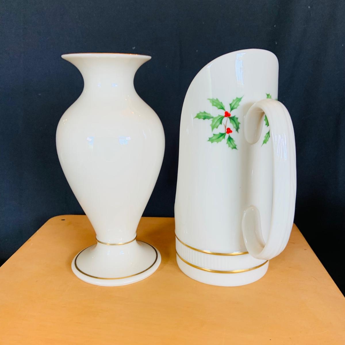 LOT:215: McCoy Wedding Cookie Jar and a Collection of Lenox Vases, Bowls and Holiday Candle Holder
