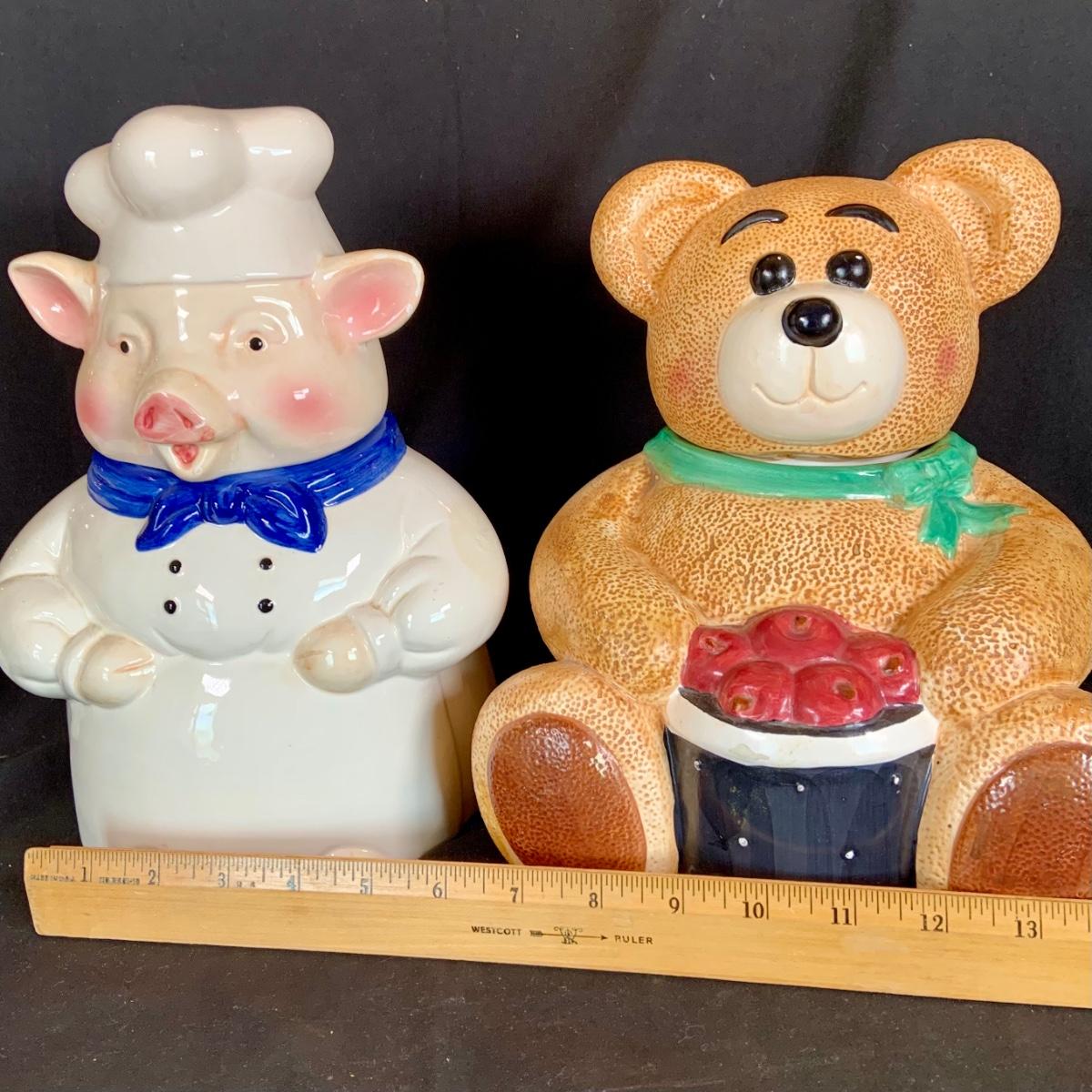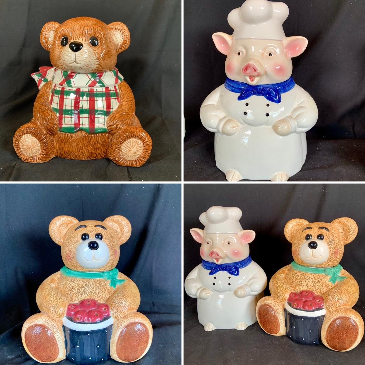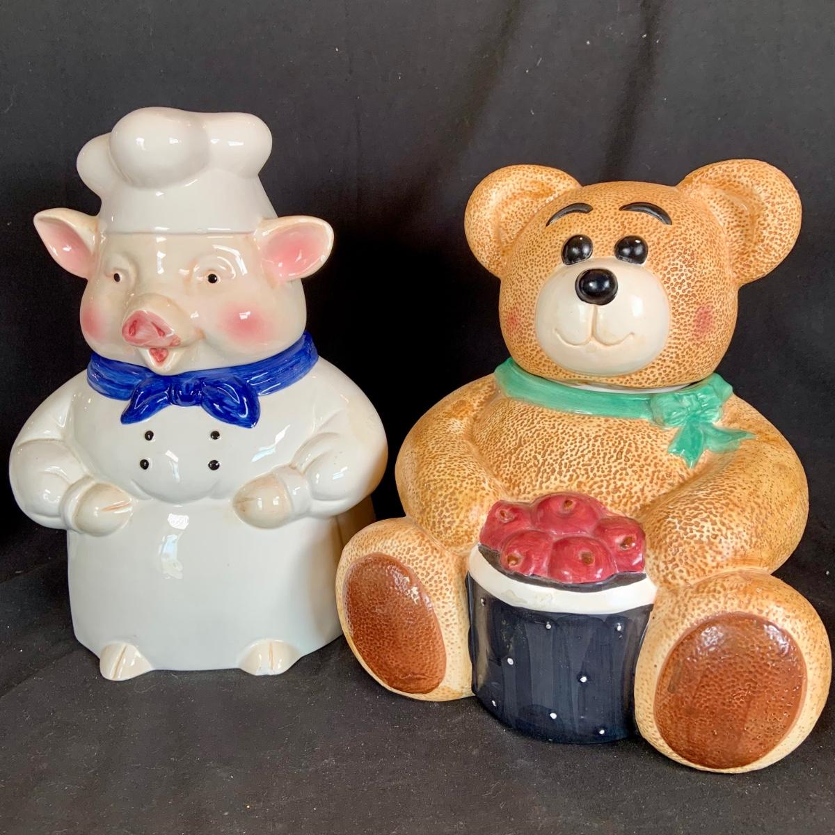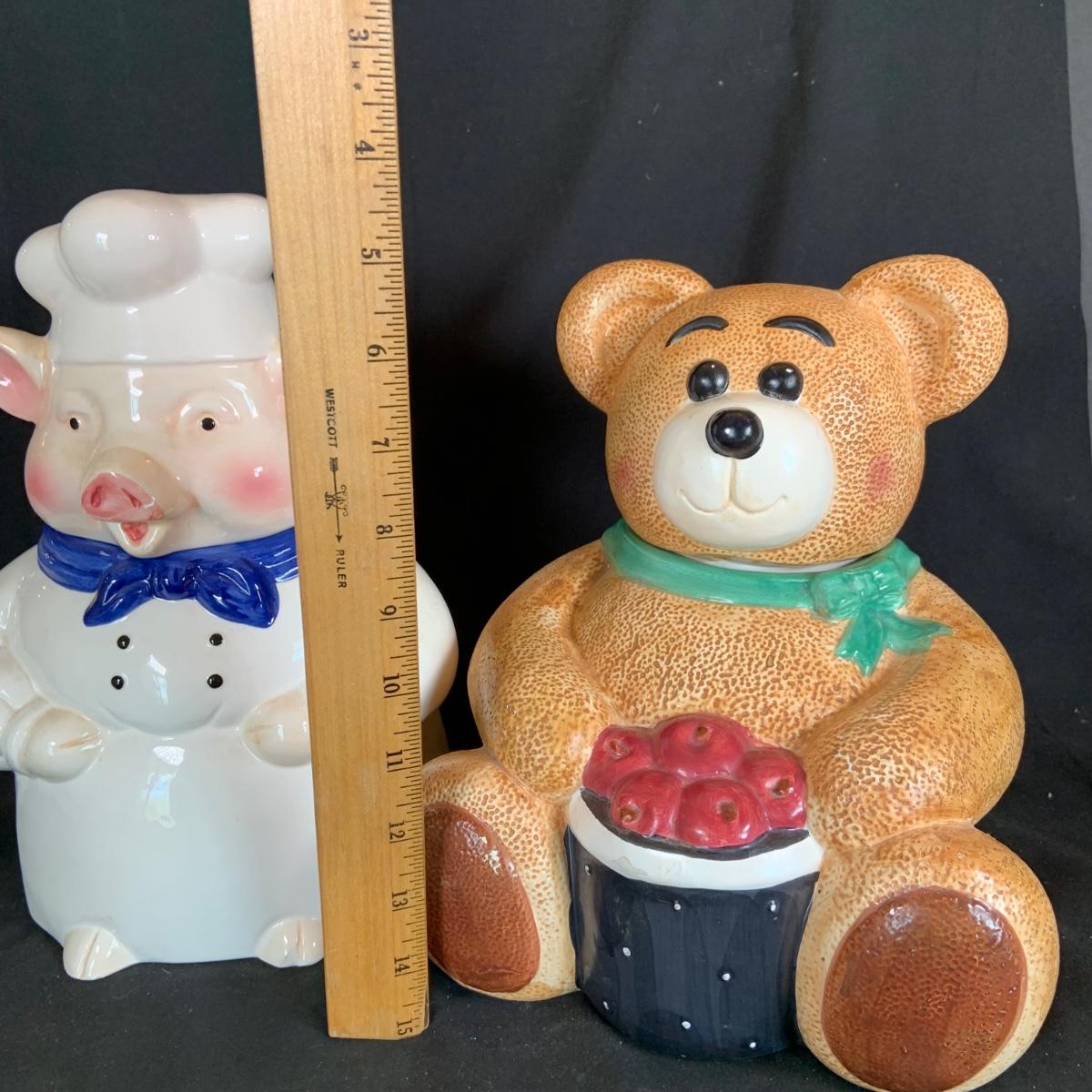 LOT.225:: Three Ceramic Cookie Jars Pig Chef, and 2 Teddy Bears