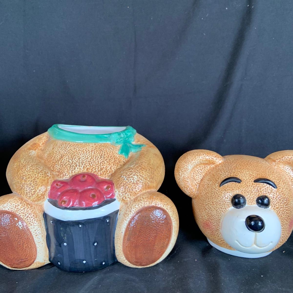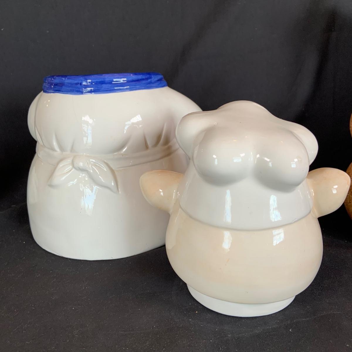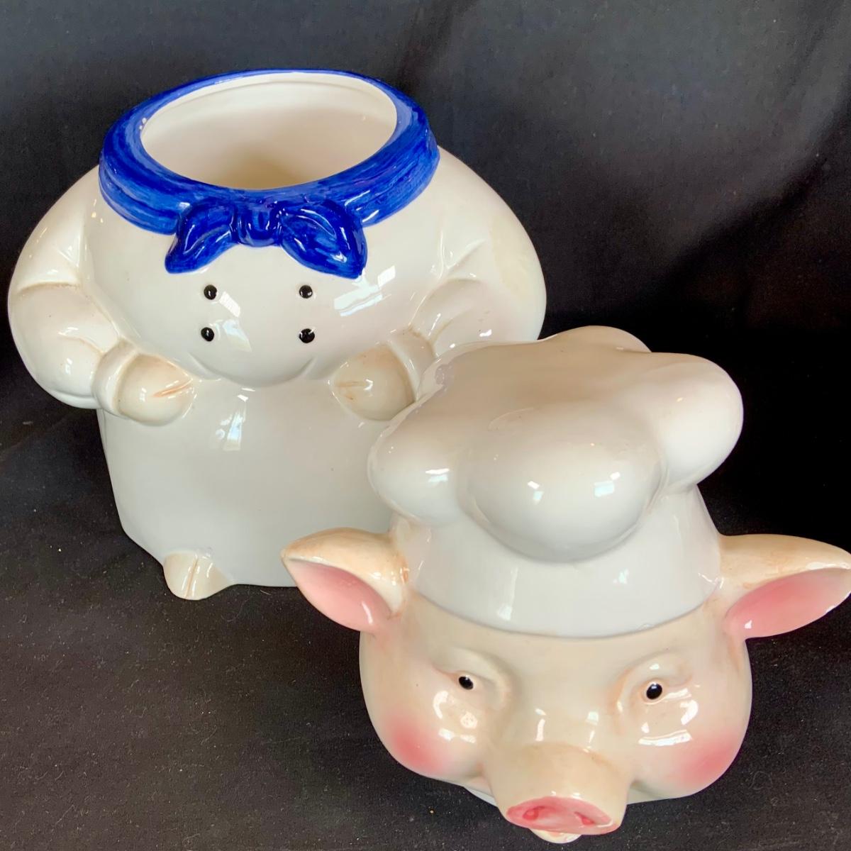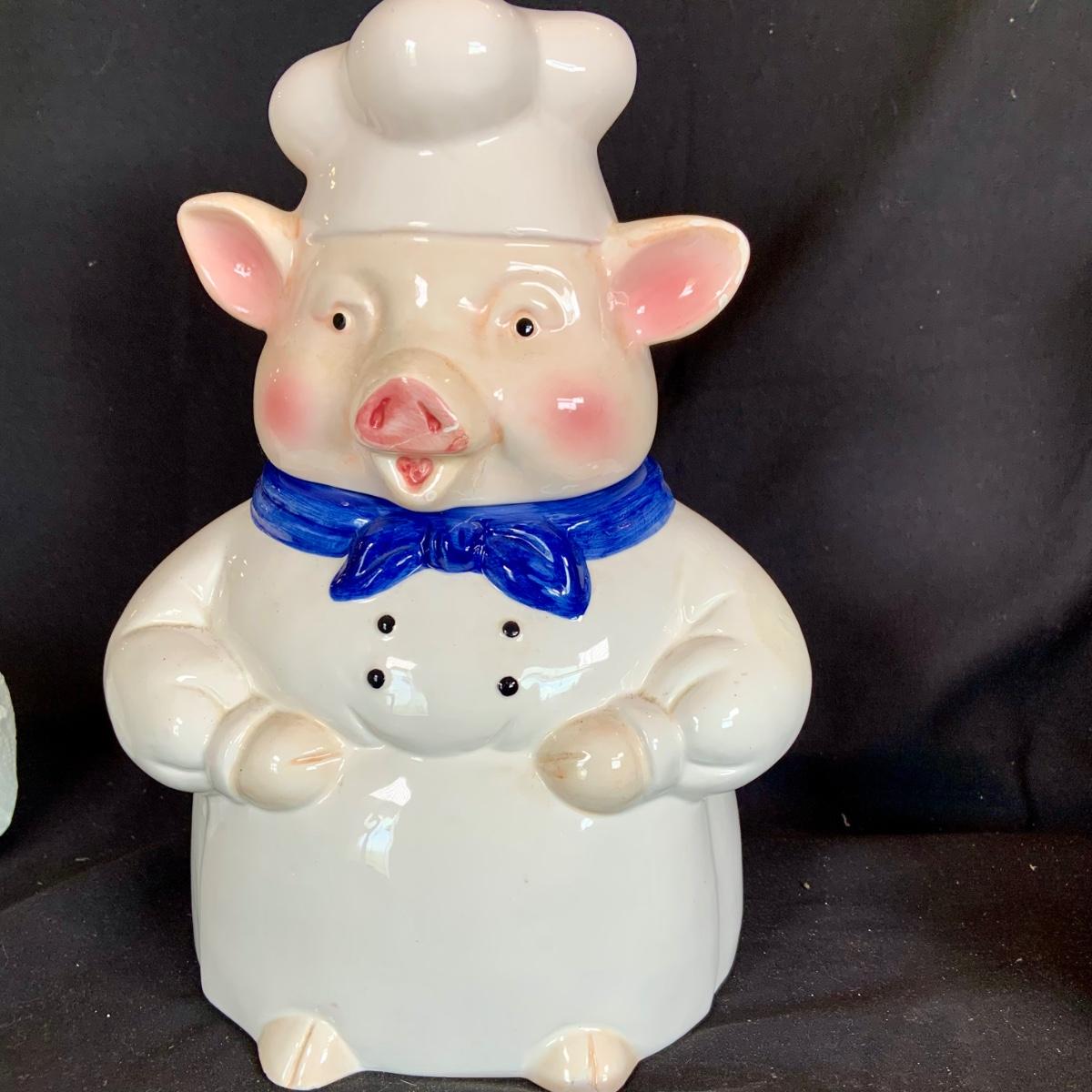 LOT.225:: Three Ceramic Cookie Jars Pig Chef, and 2 Teddy Bears