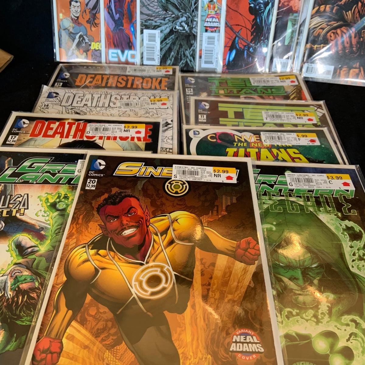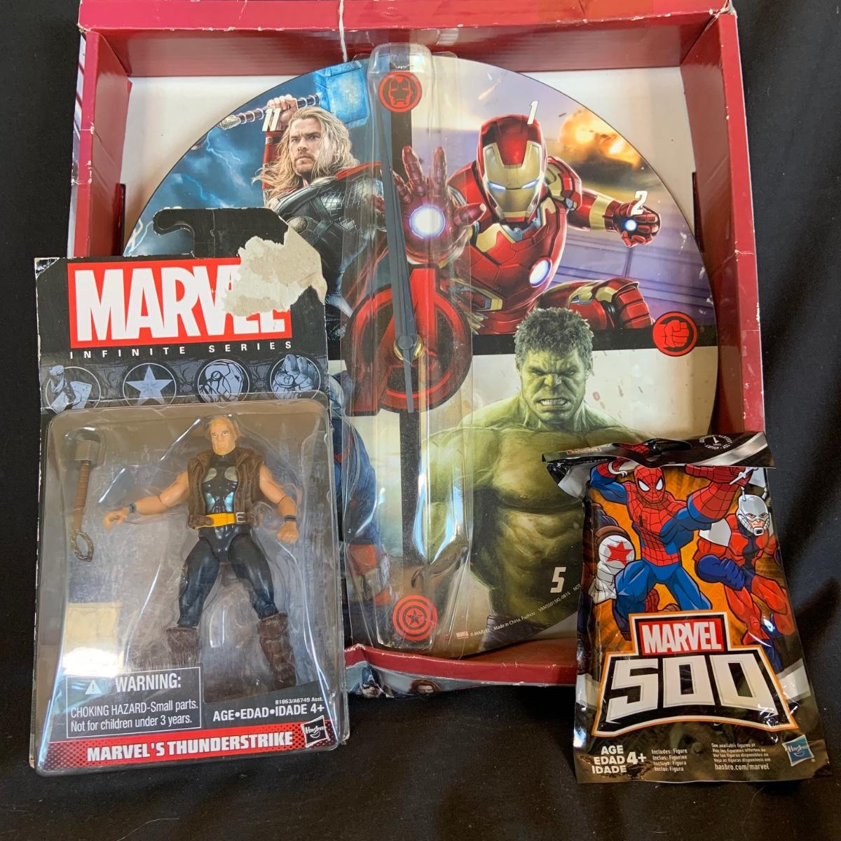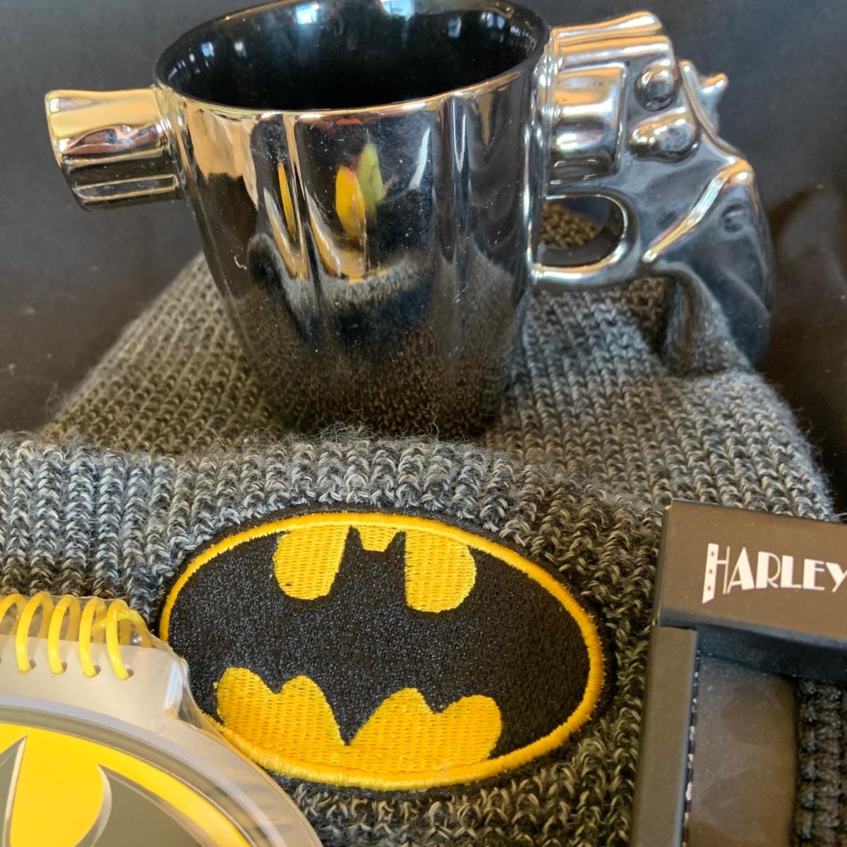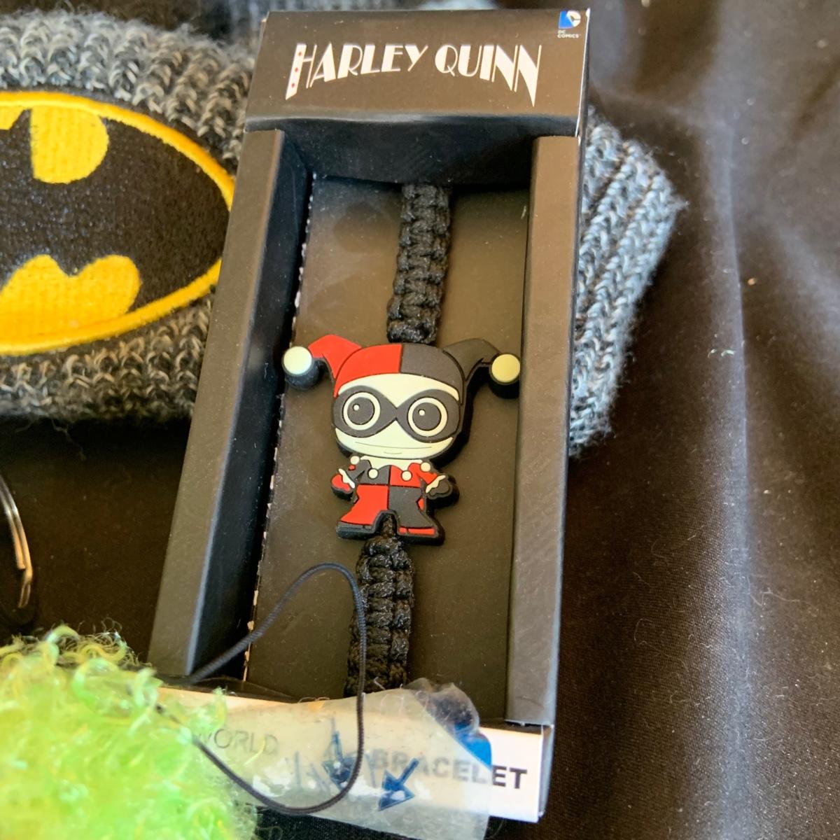 LOT:236: Marvel and DC Comic Collection Including Comics, Batman Hat and Dog Tags, Harley Quinn Braclets, Skylanders Battlecasters and More