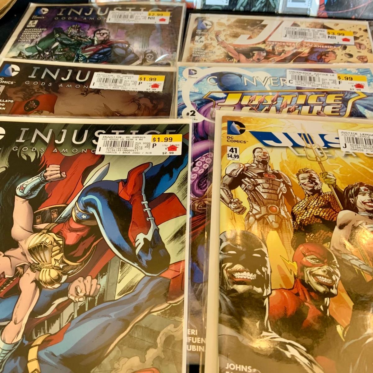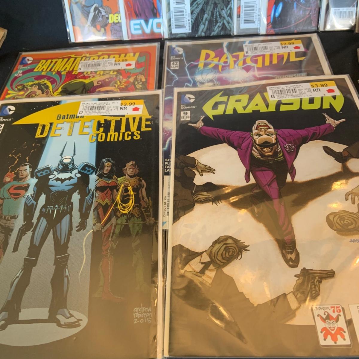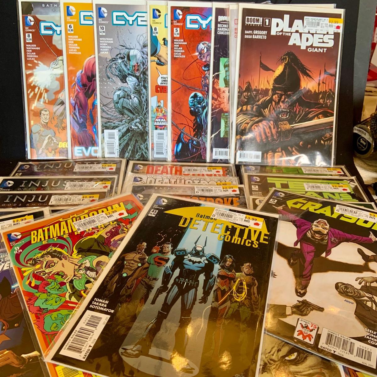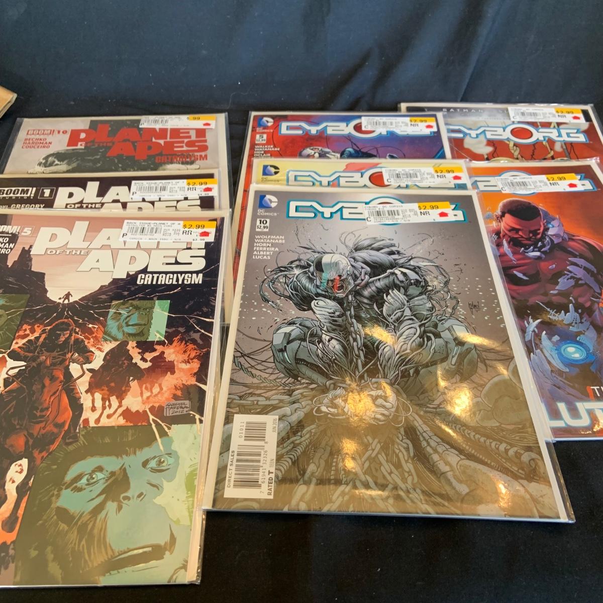 LOT:236: Marvel and DC Comic Collection Including Comics, Batman Hat and Dog Tags, Harley Quinn Braclets, Skylanders Battlecasters and More