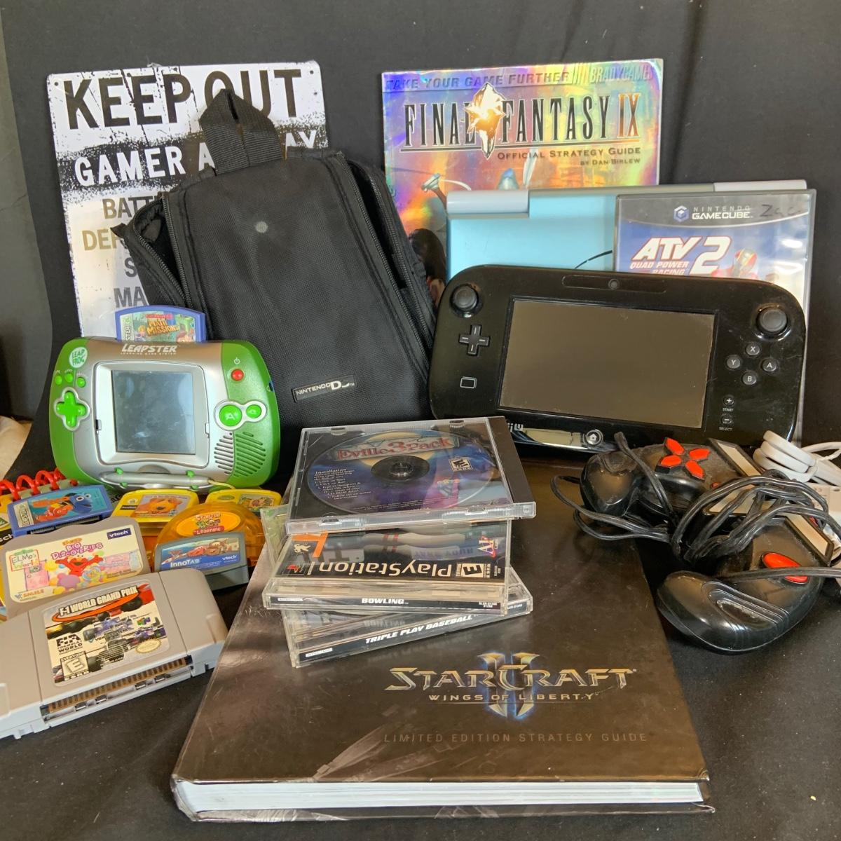 LOT:237: Gaming Collection Including Activision 10-in-1 Plug and Play, WiiU, Leap Frog Leapster, Rare Arabic-English "Smart Study" Lap Top Style Game, Games Books and More