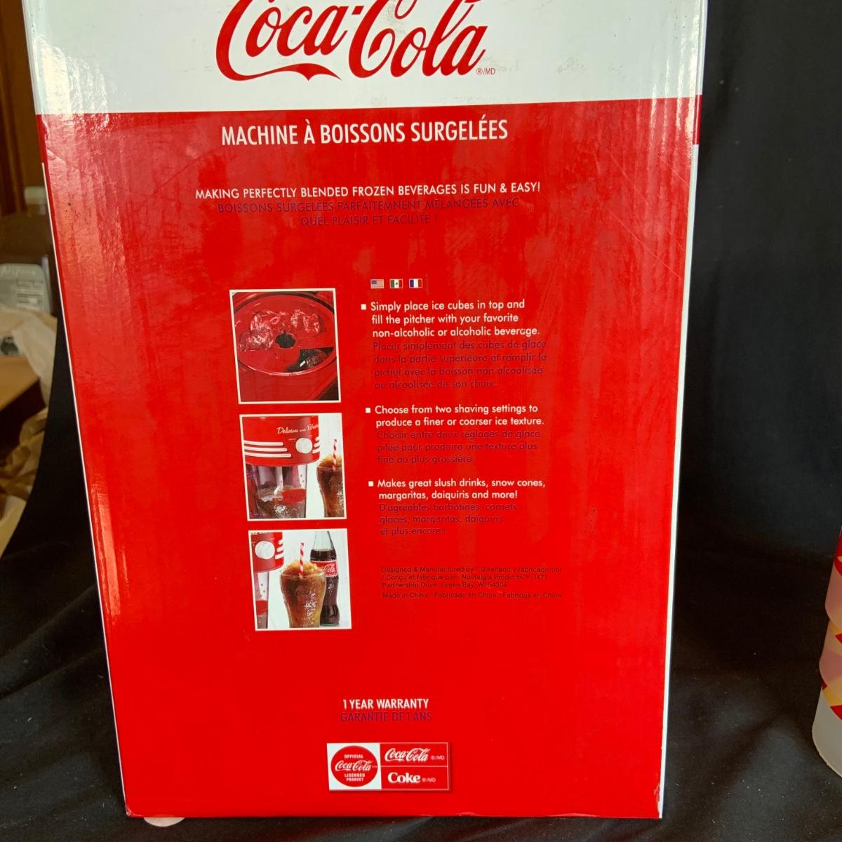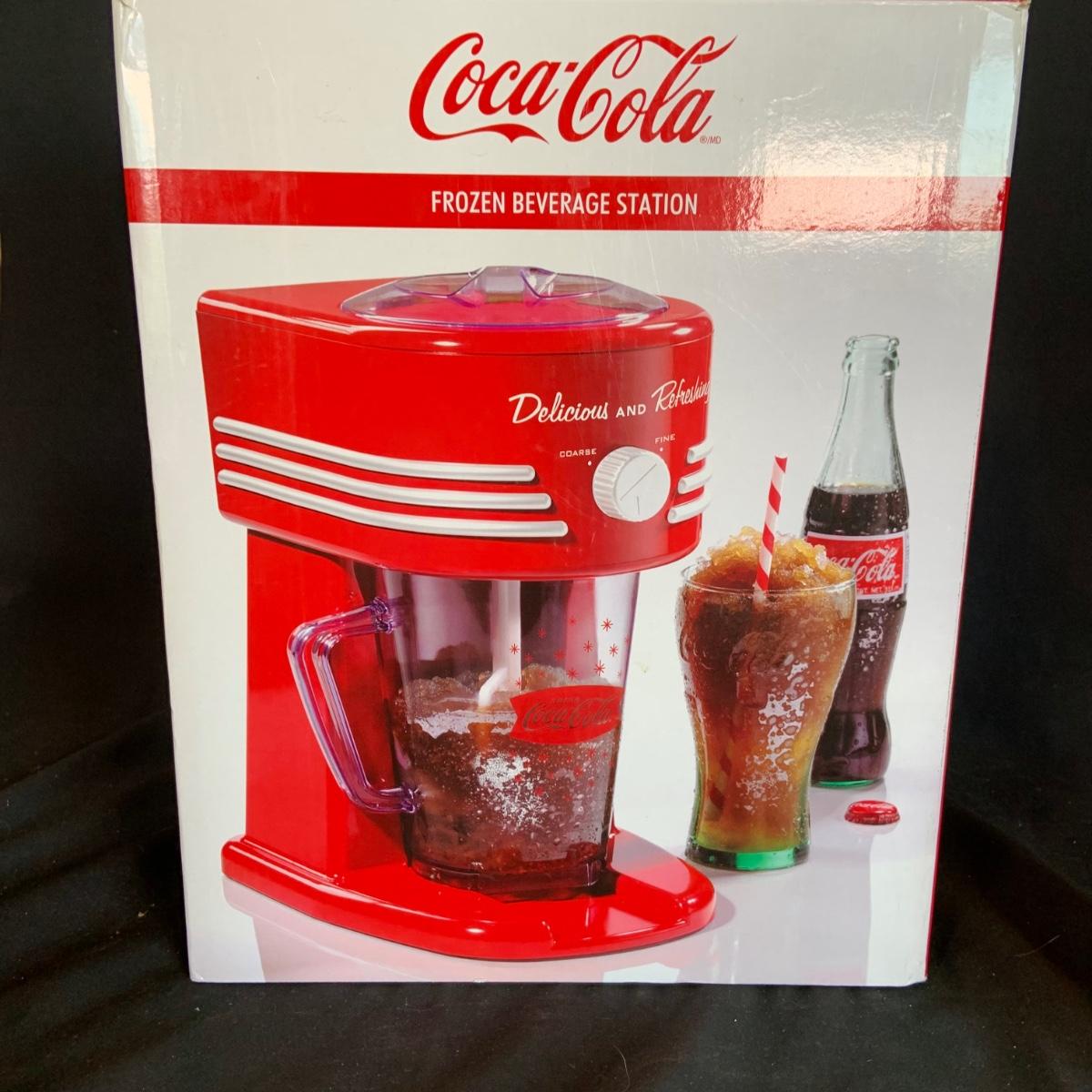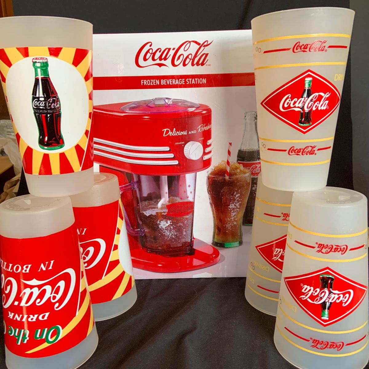 LOT:241: Coke - Coca-Cola Frozen Beverage Making Machine In Original Box and Vintage Coke Large Plastic Drinking Cups