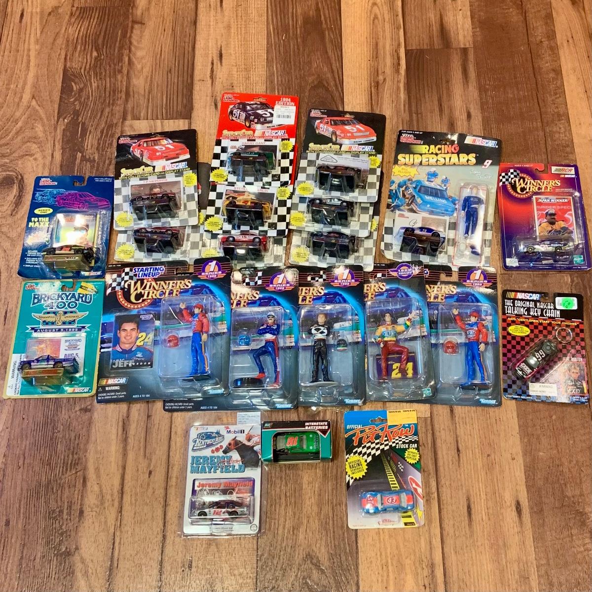 LOT:244: Assortment of Racing Champion Cars and Staring Lineup Racing Figure and Cards and More