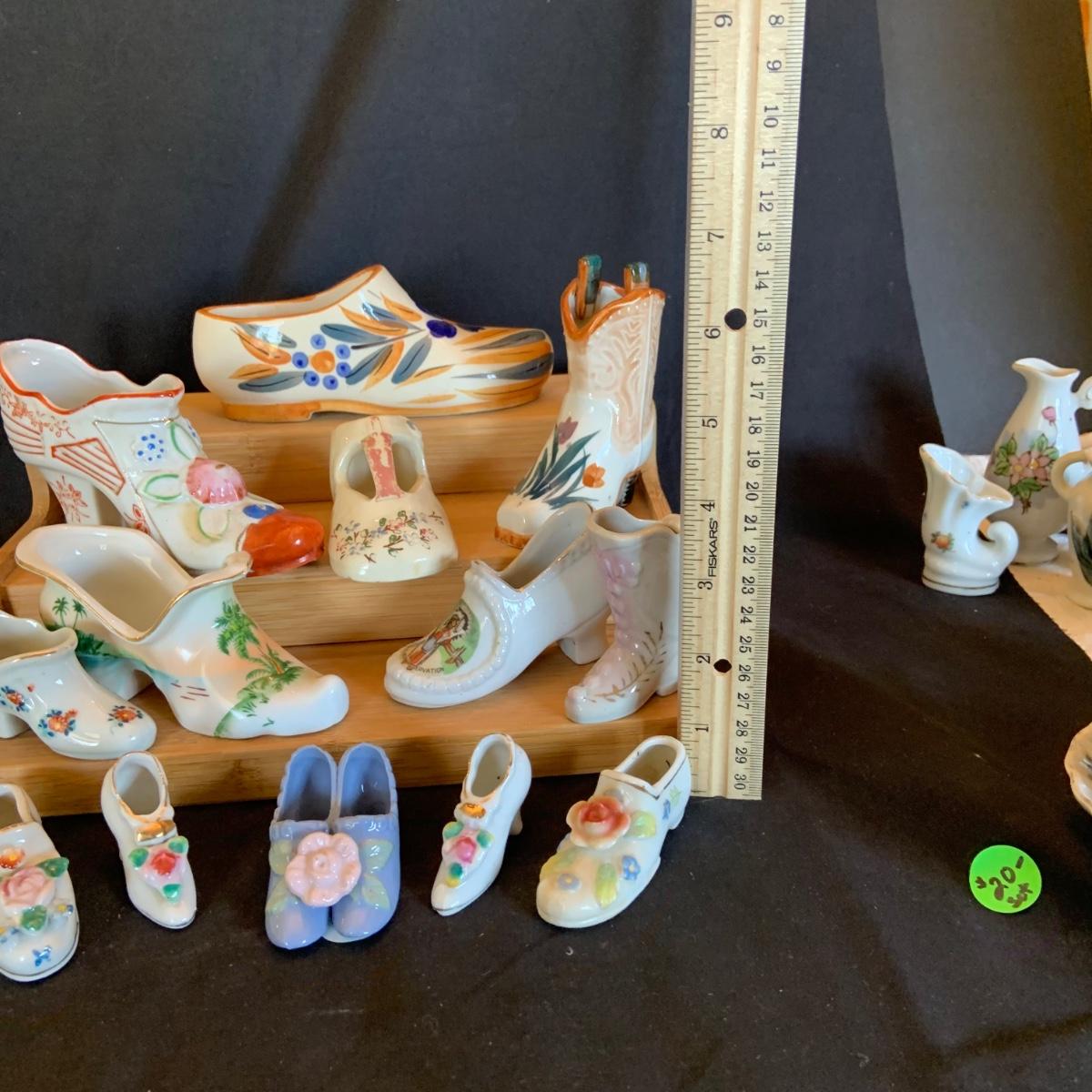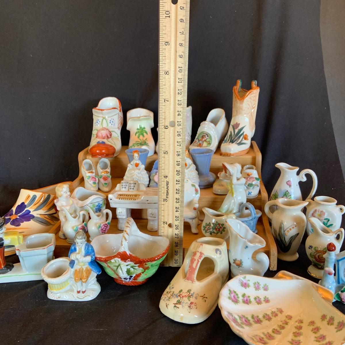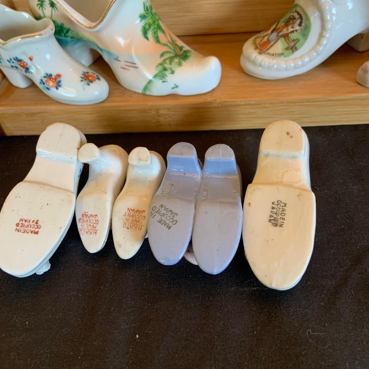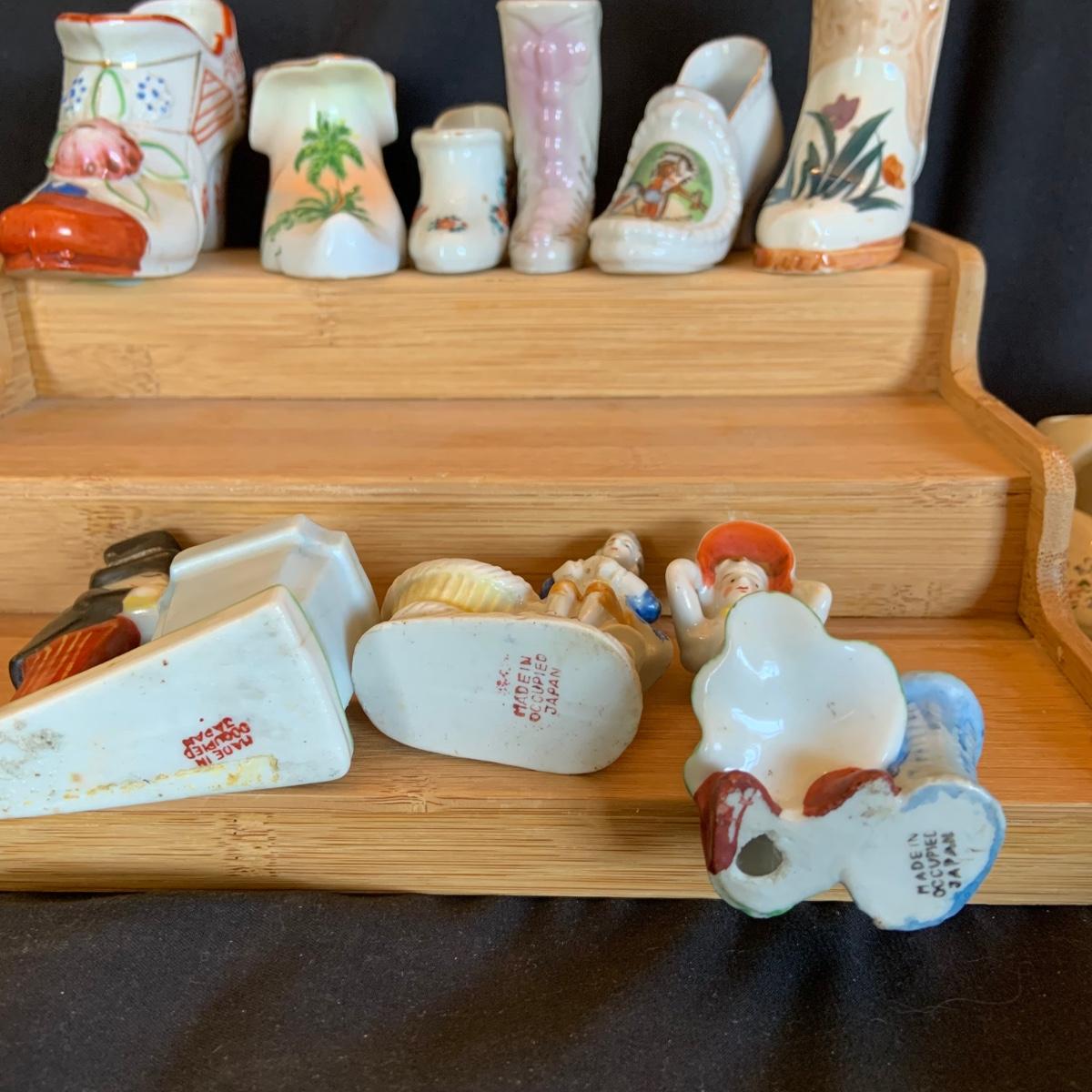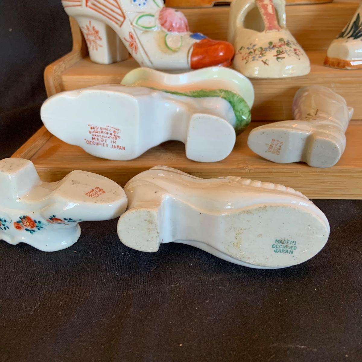 LOT:251: Vintage Collection of Ceramic/Porcelain Shoes, Figurines, Dishes Mini Pitcher and More All Made in Japan or Occupied Japan