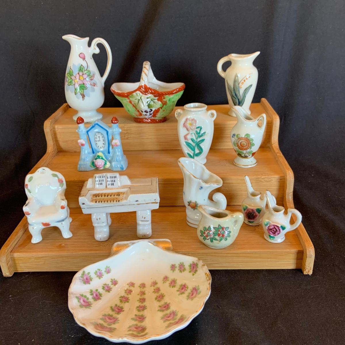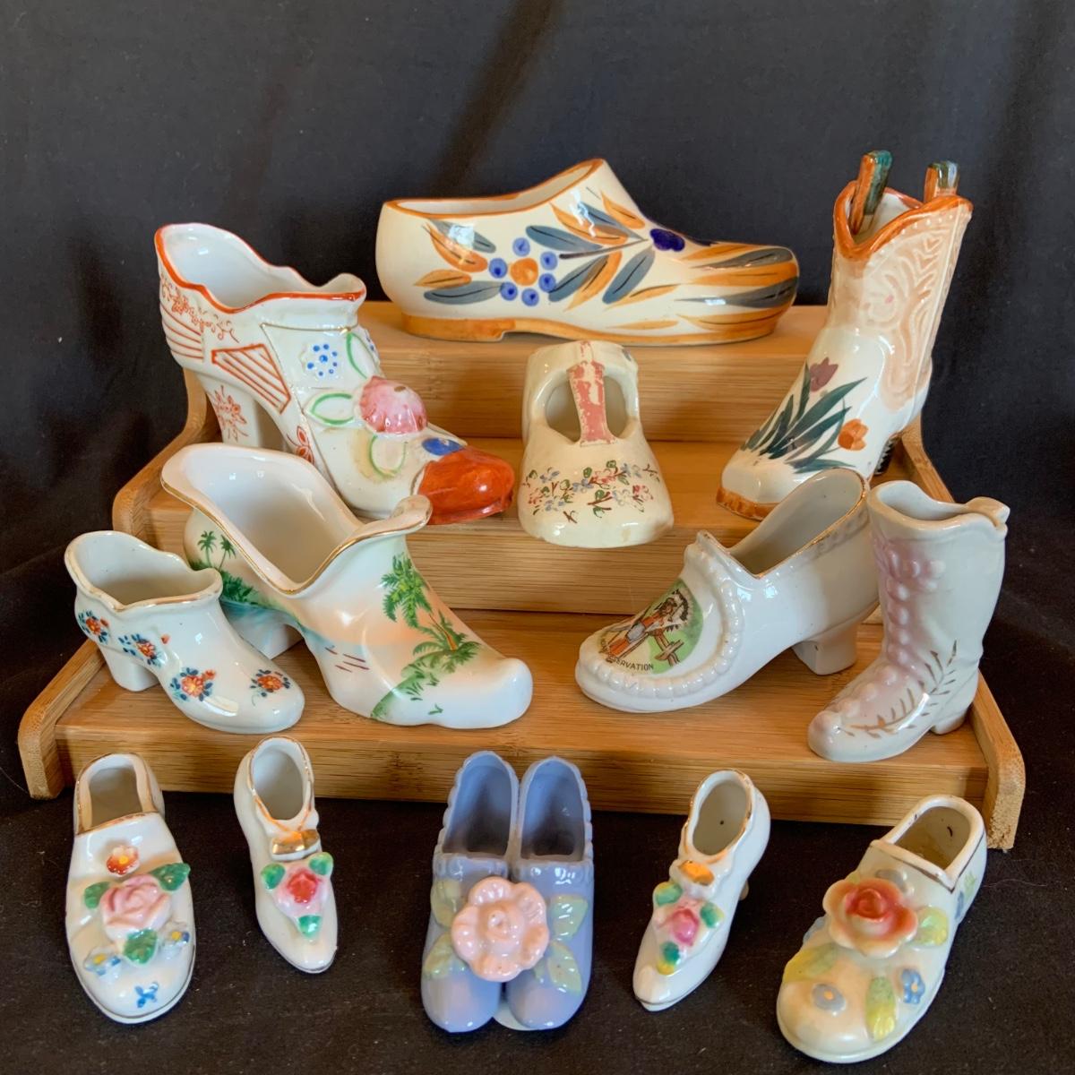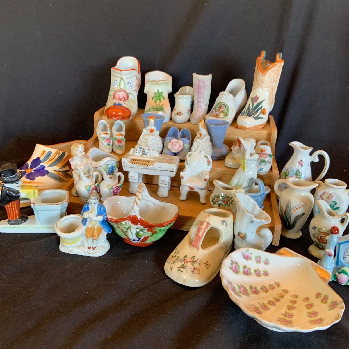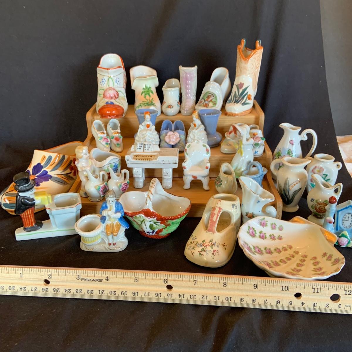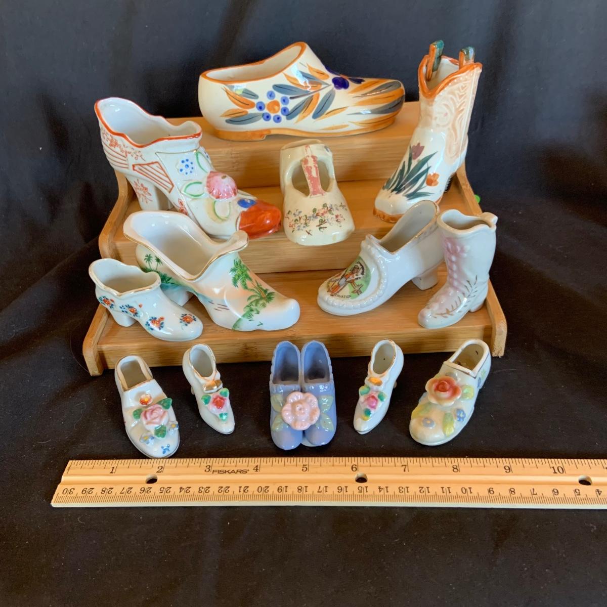 LOT:251: Vintage Collection of Ceramic/Porcelain Shoes, Figurines, Dishes Mini Pitcher and More All Made in Japan or Occupied Japan