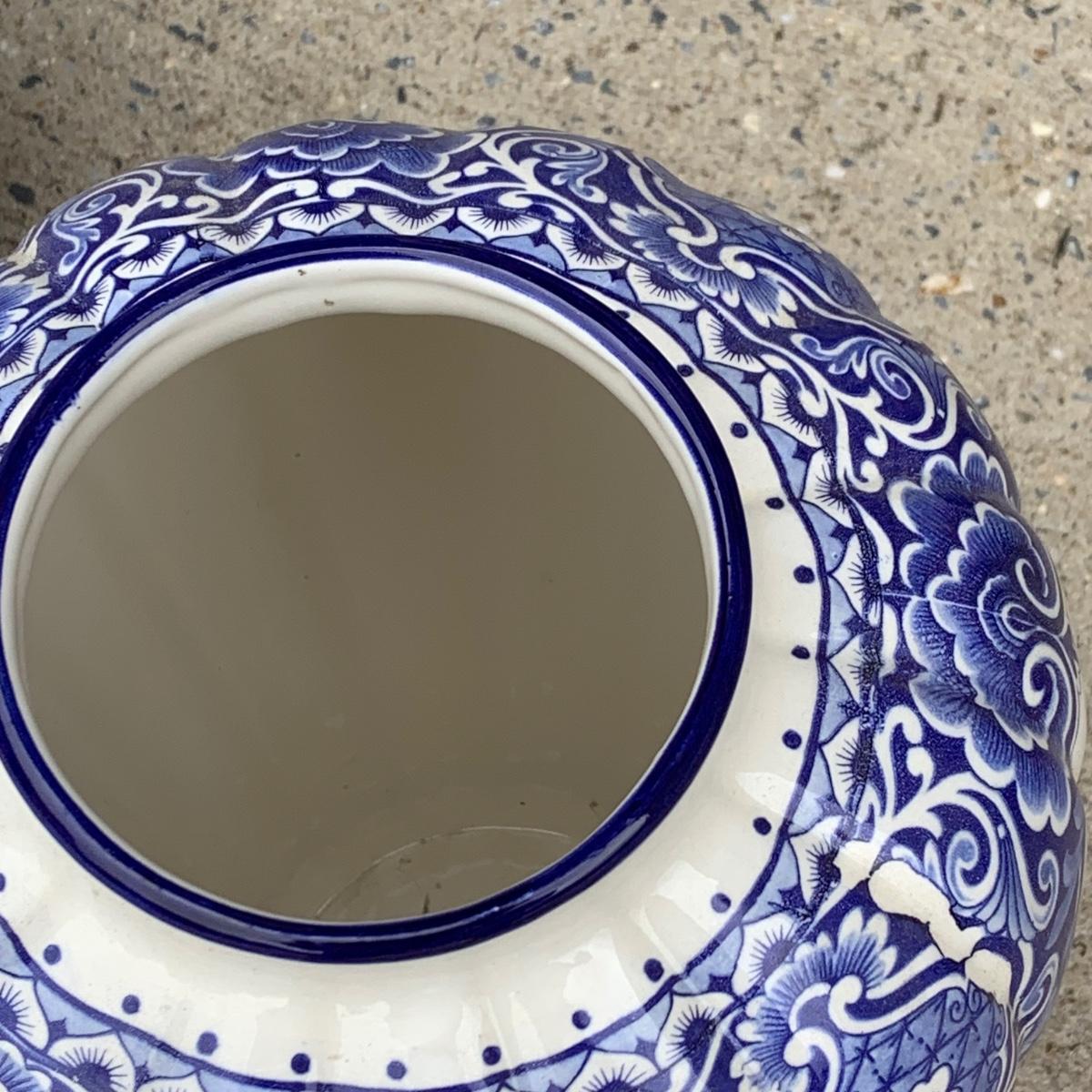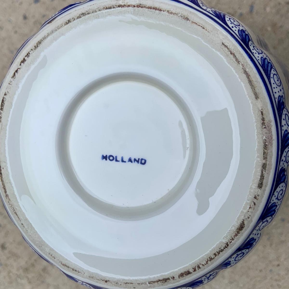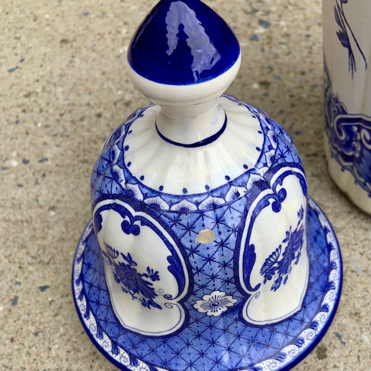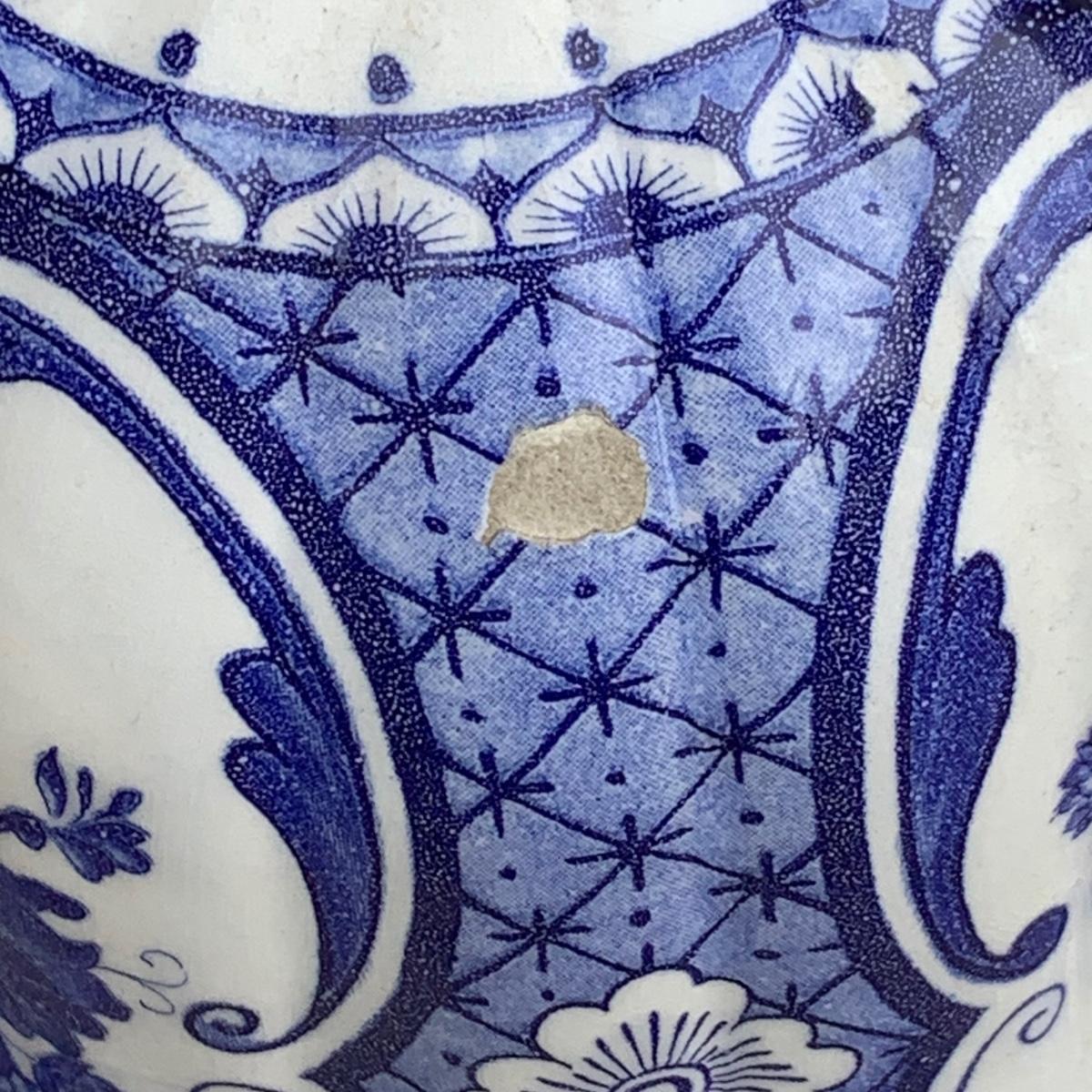 LOT:258: A Set of 2 Very Large and Beautiful Blue and White Lidded Vases / Urn In the Style of Delft but Only Marked Holland