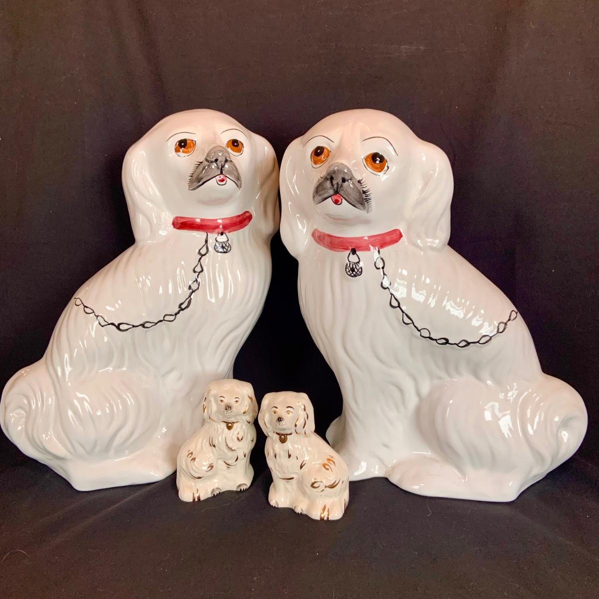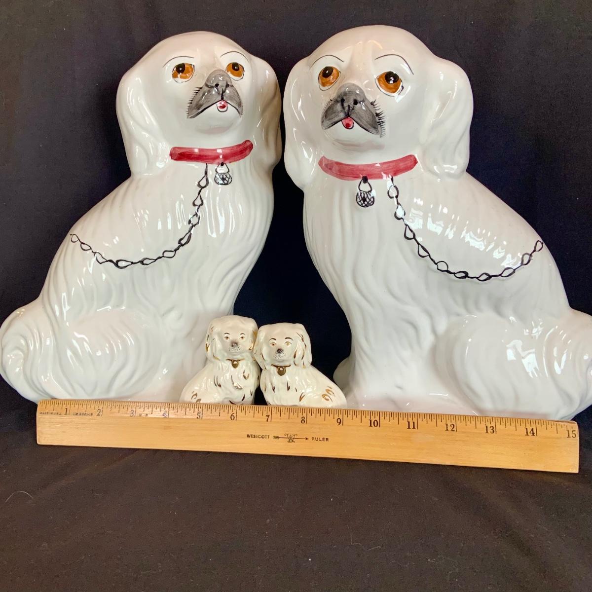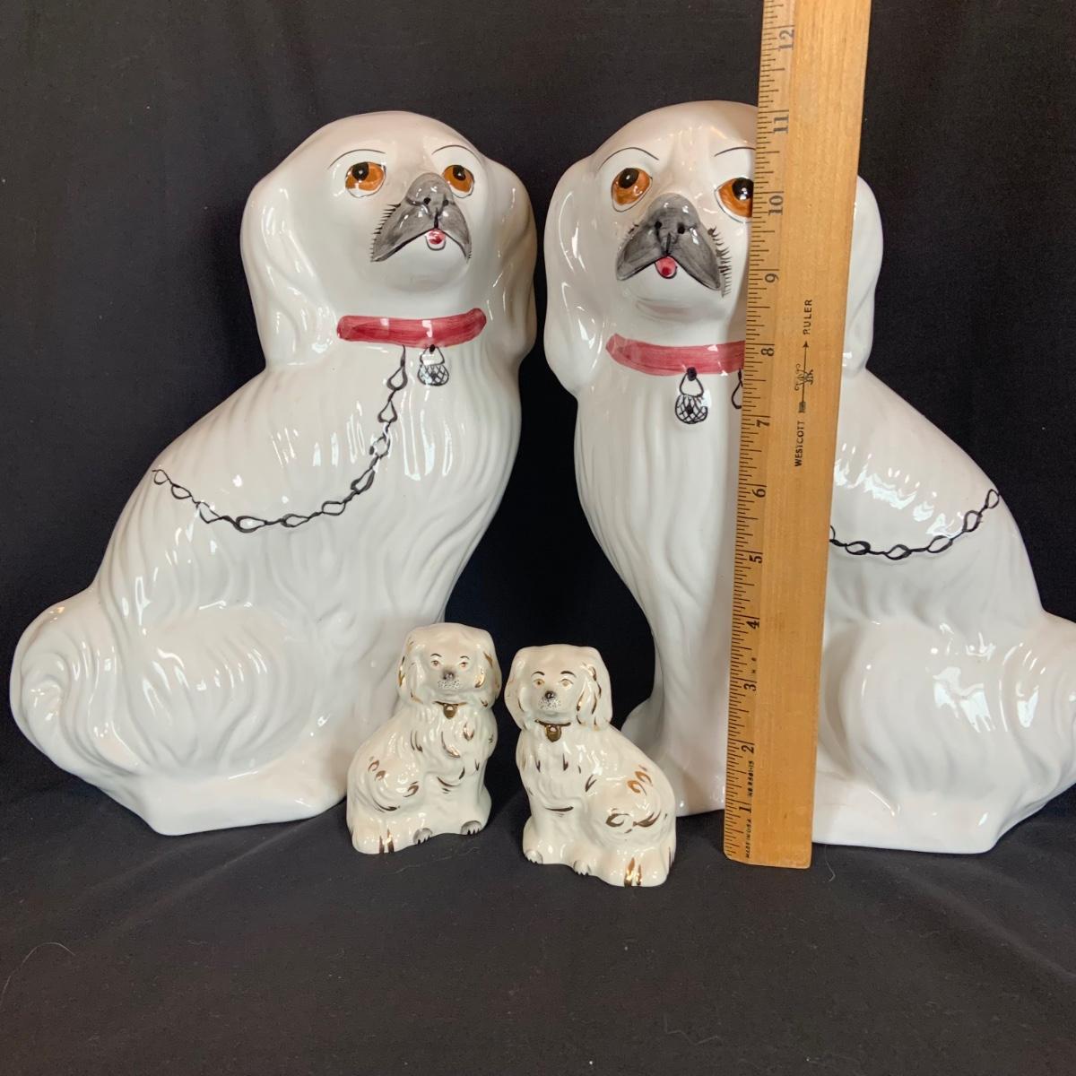LOT:265: 2 Large Hand Painted Staffordshire Style Dogs made in Portugal by Jay Willfred for Andrea by Sedak and Two Small Berwick Staffordshire England Spaniel Dogs Figurine | No. 1378