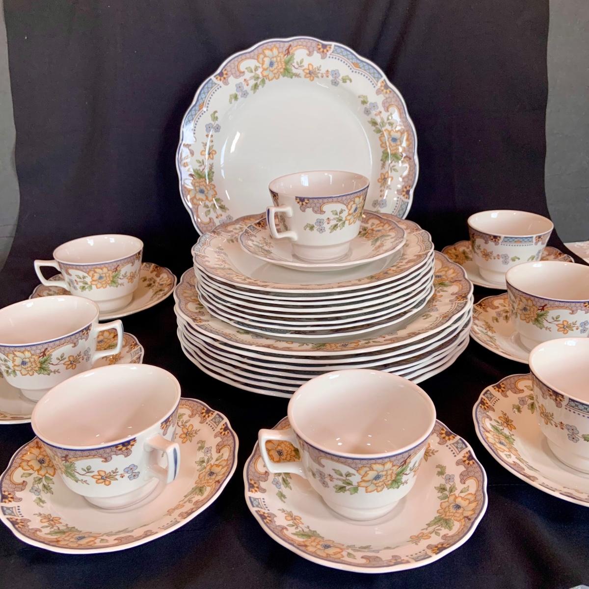 LOT:266: Royal Doulton Majestic Temple Garden China 32 Piece Tableware Including Dinner Plate, Salad Plates ,Cup and Saucers