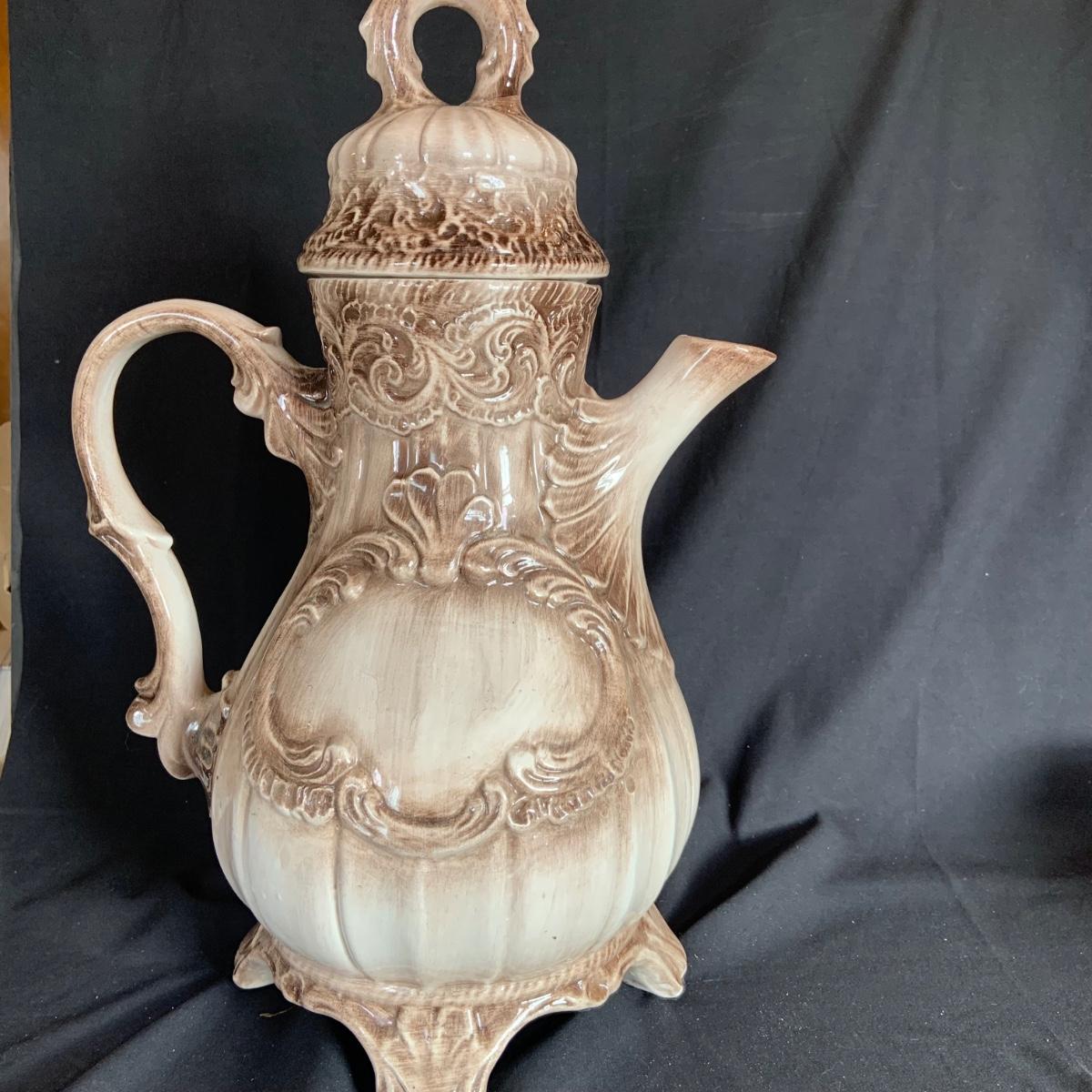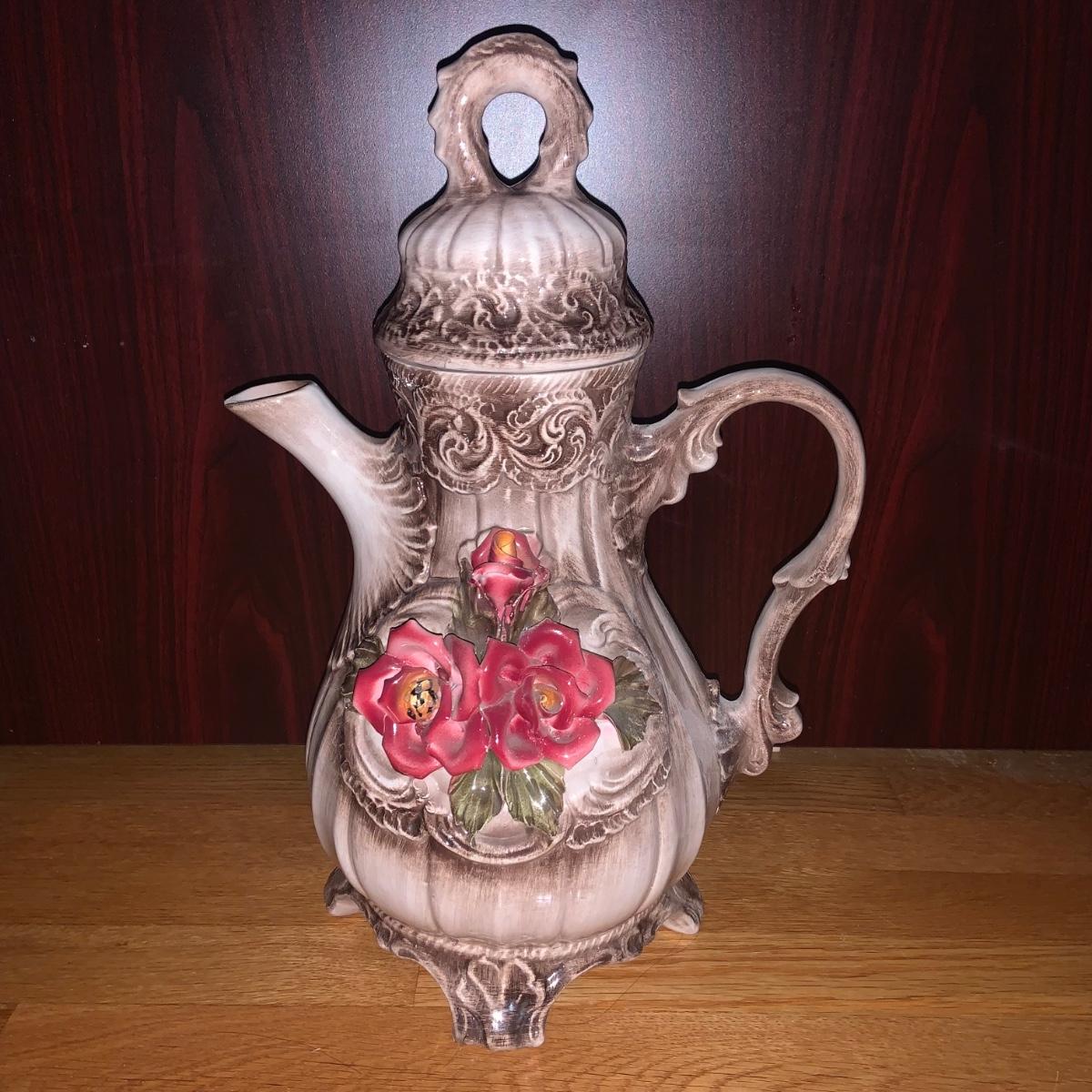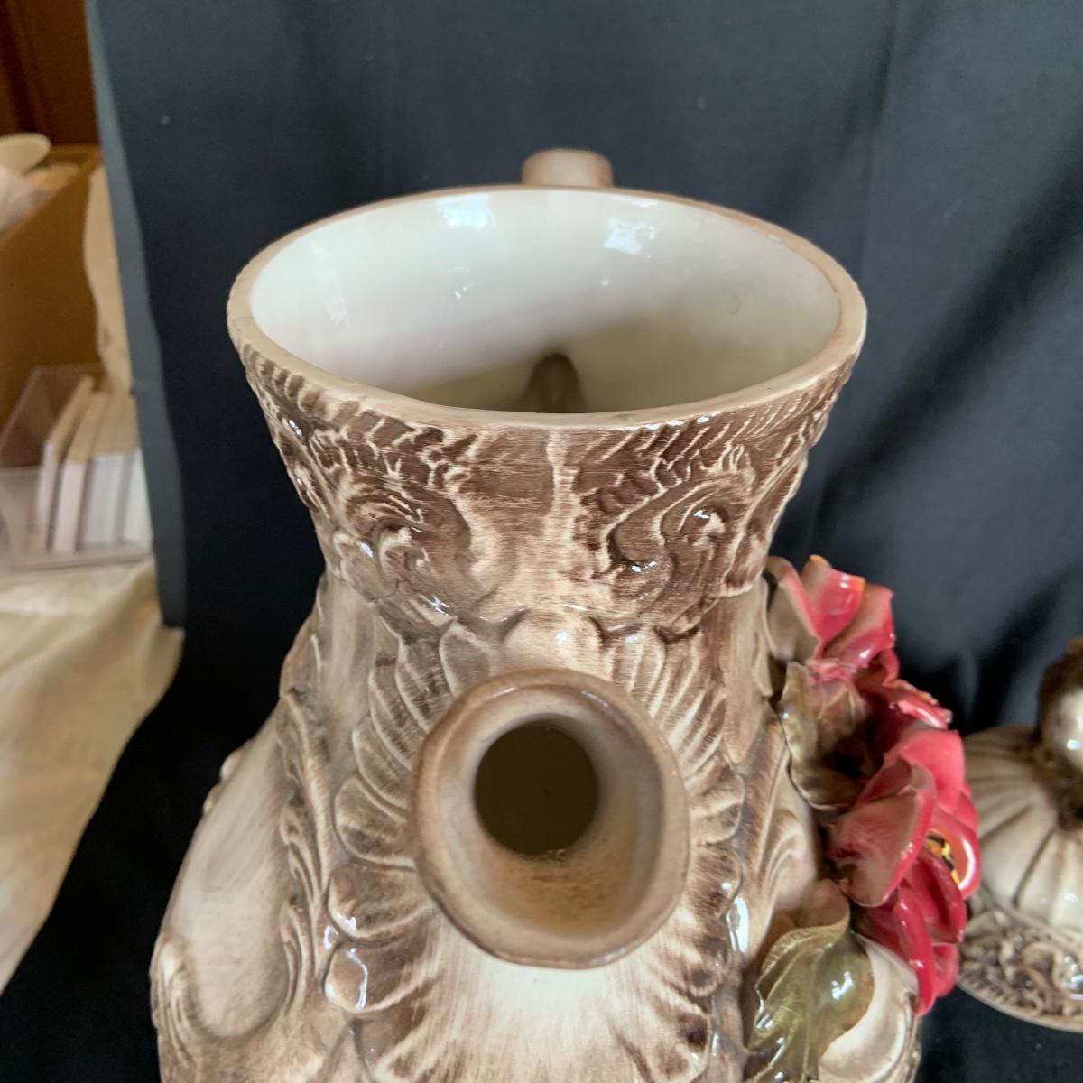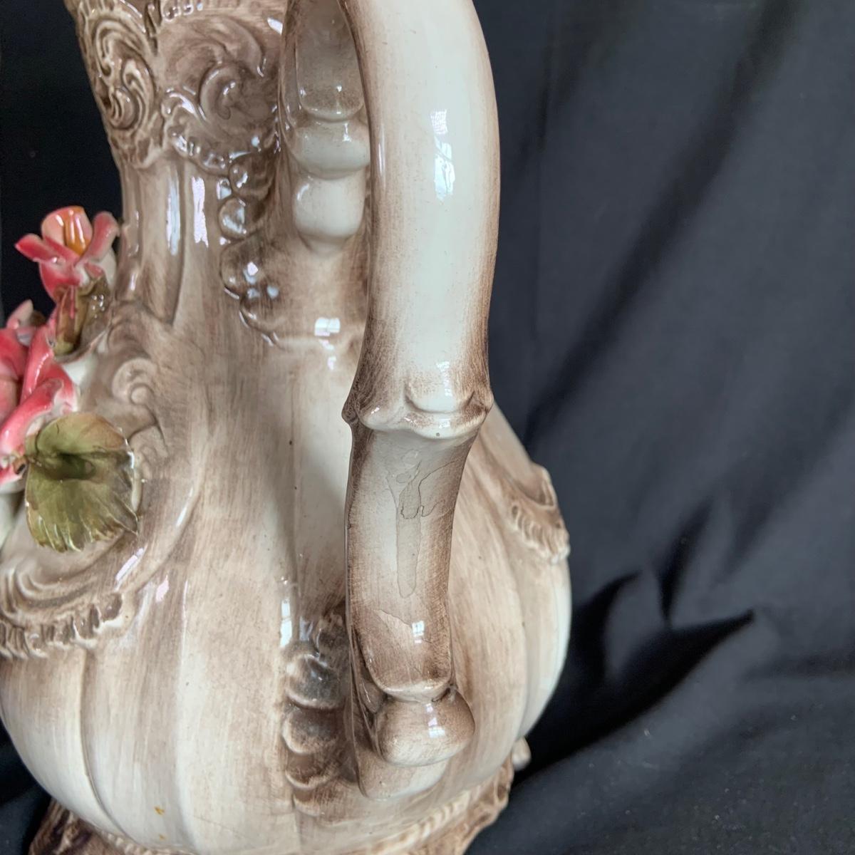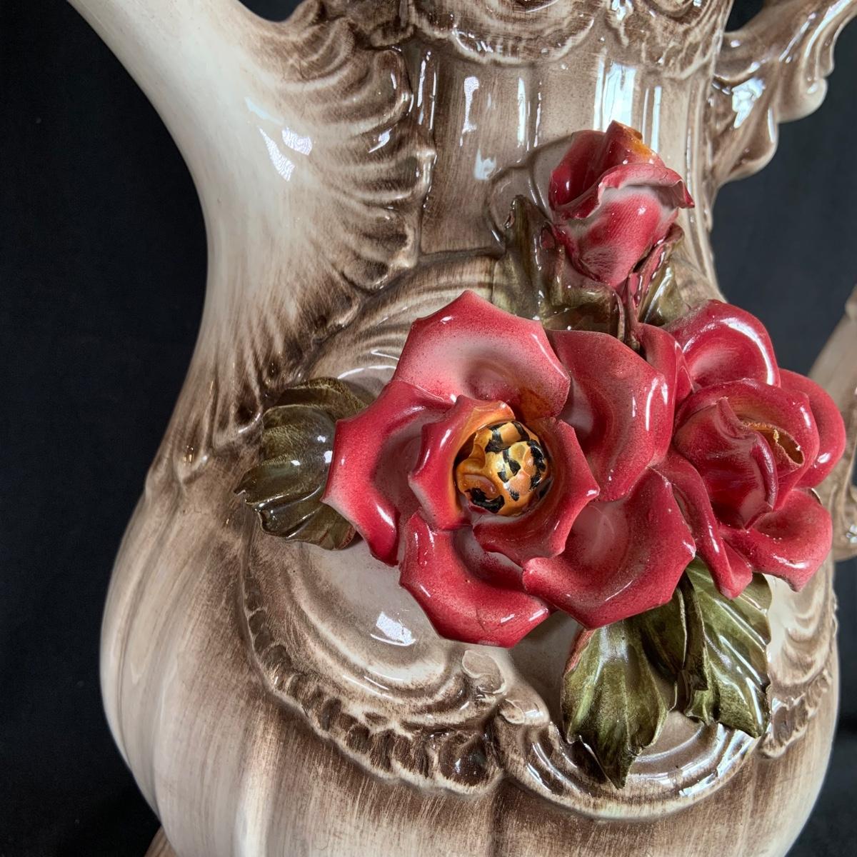 LOT:271: Large Vintage Capodimonte Ornate Floral Pitcher with Roses