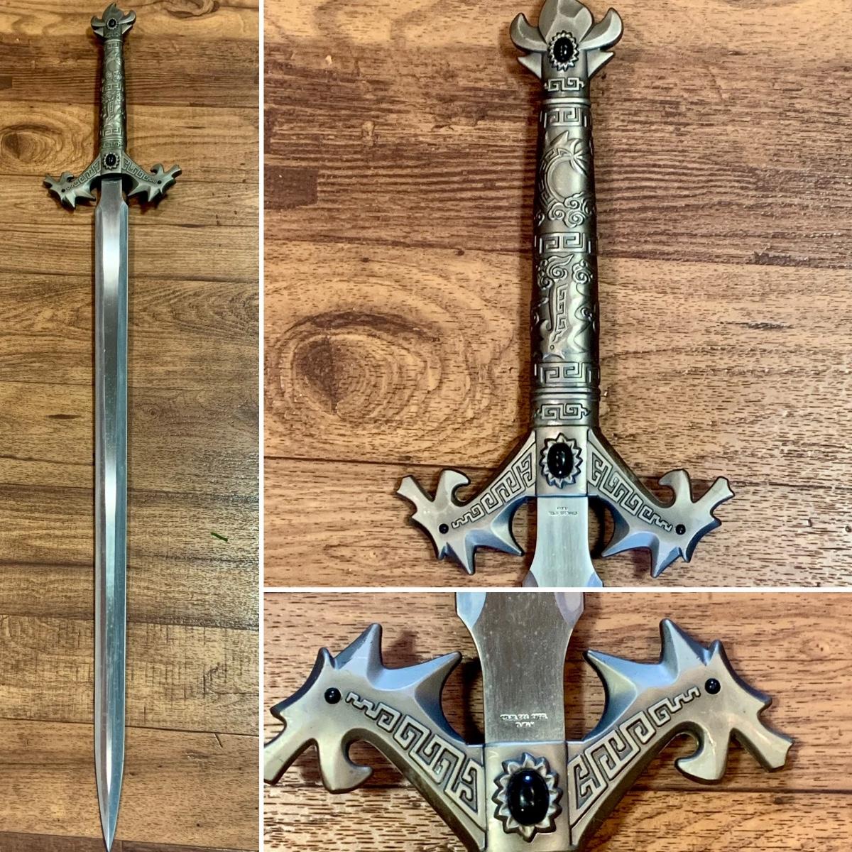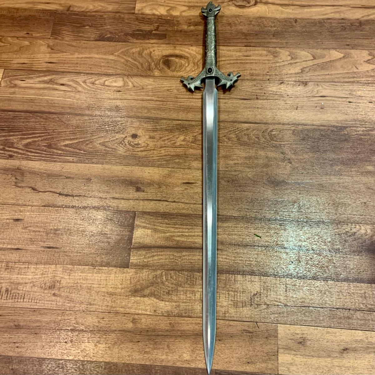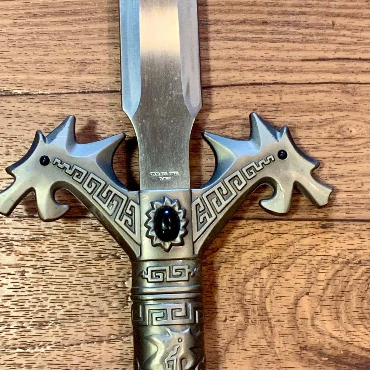 LOT:278: Reproduction Fantasy Stainless Steel Long Sword with Black Stone and Dragon Design