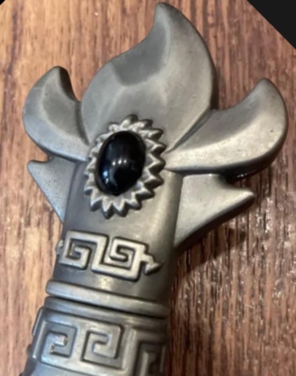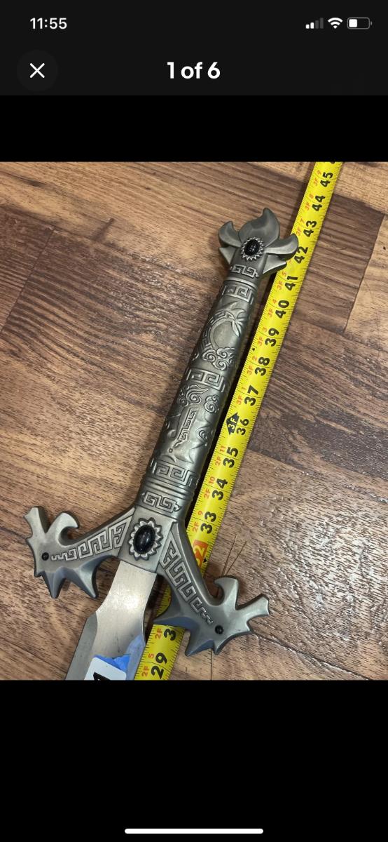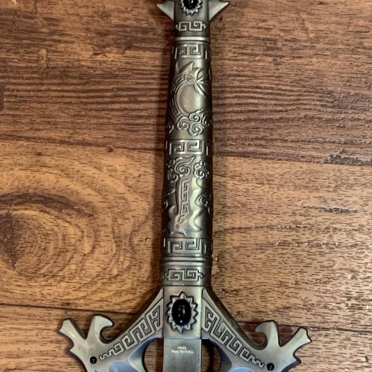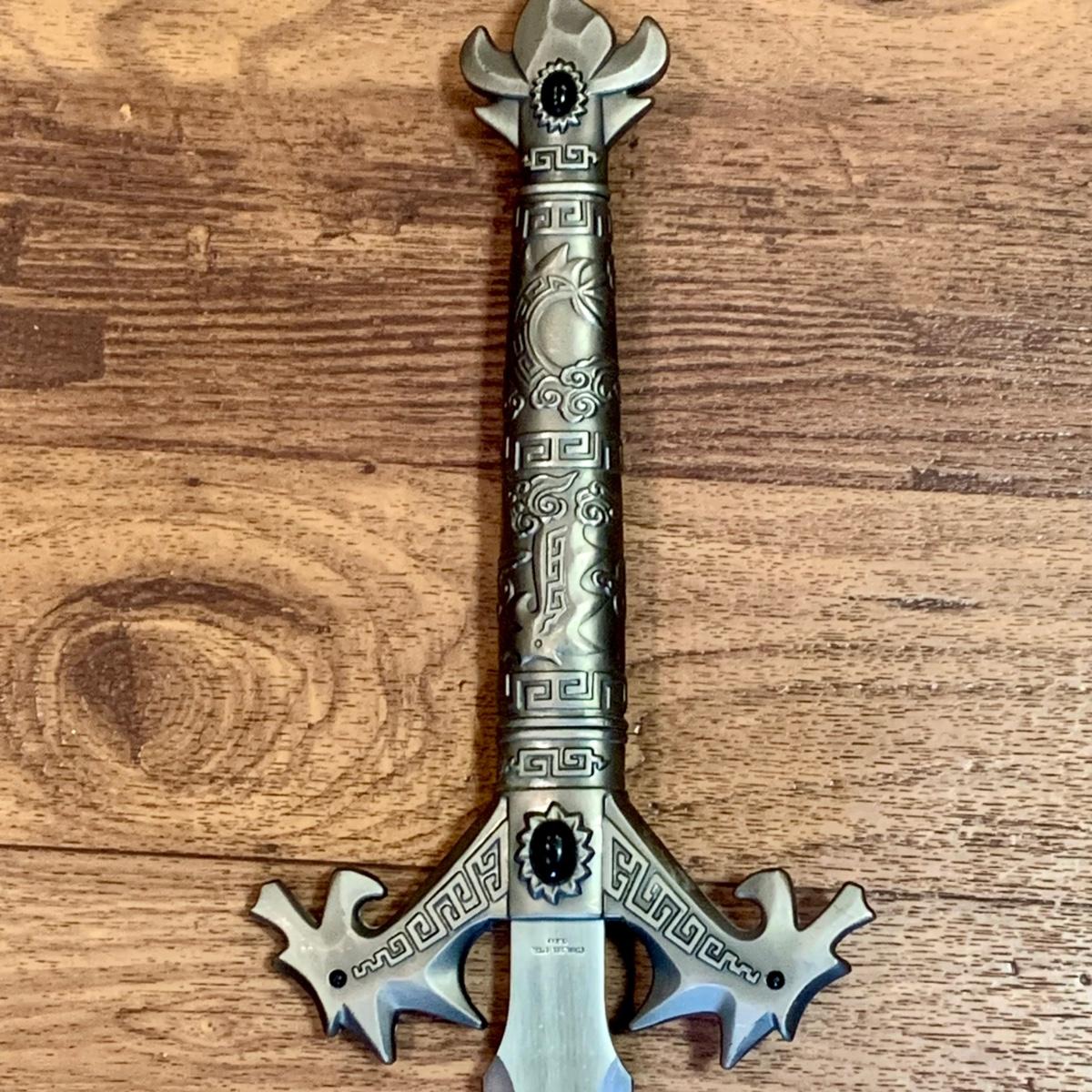 LOT:278: Reproduction Fantasy Stainless Steel Long Sword with Black Stone and Dragon Design
