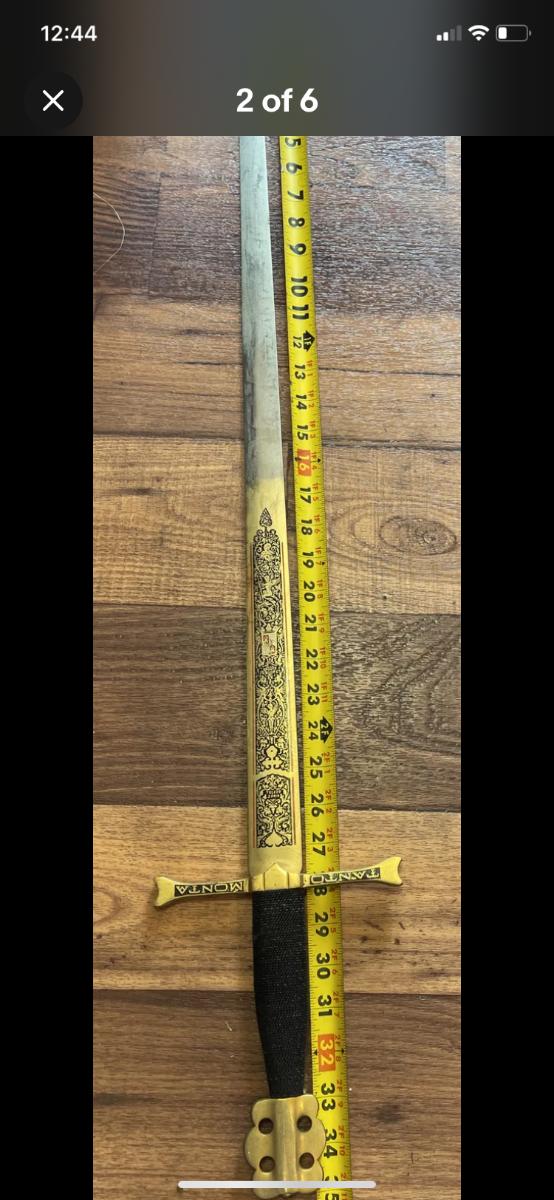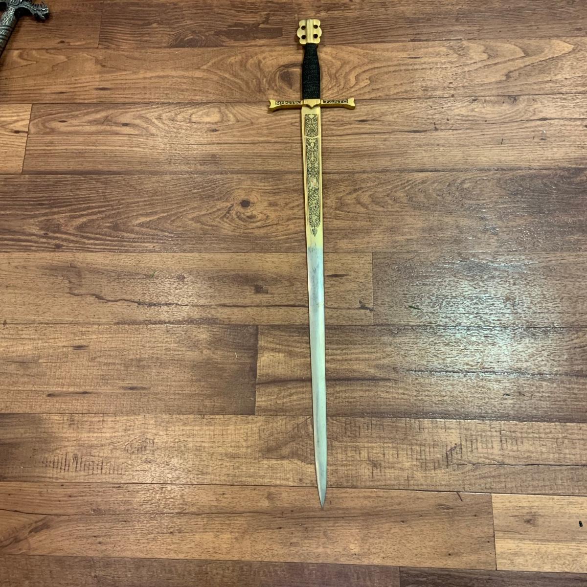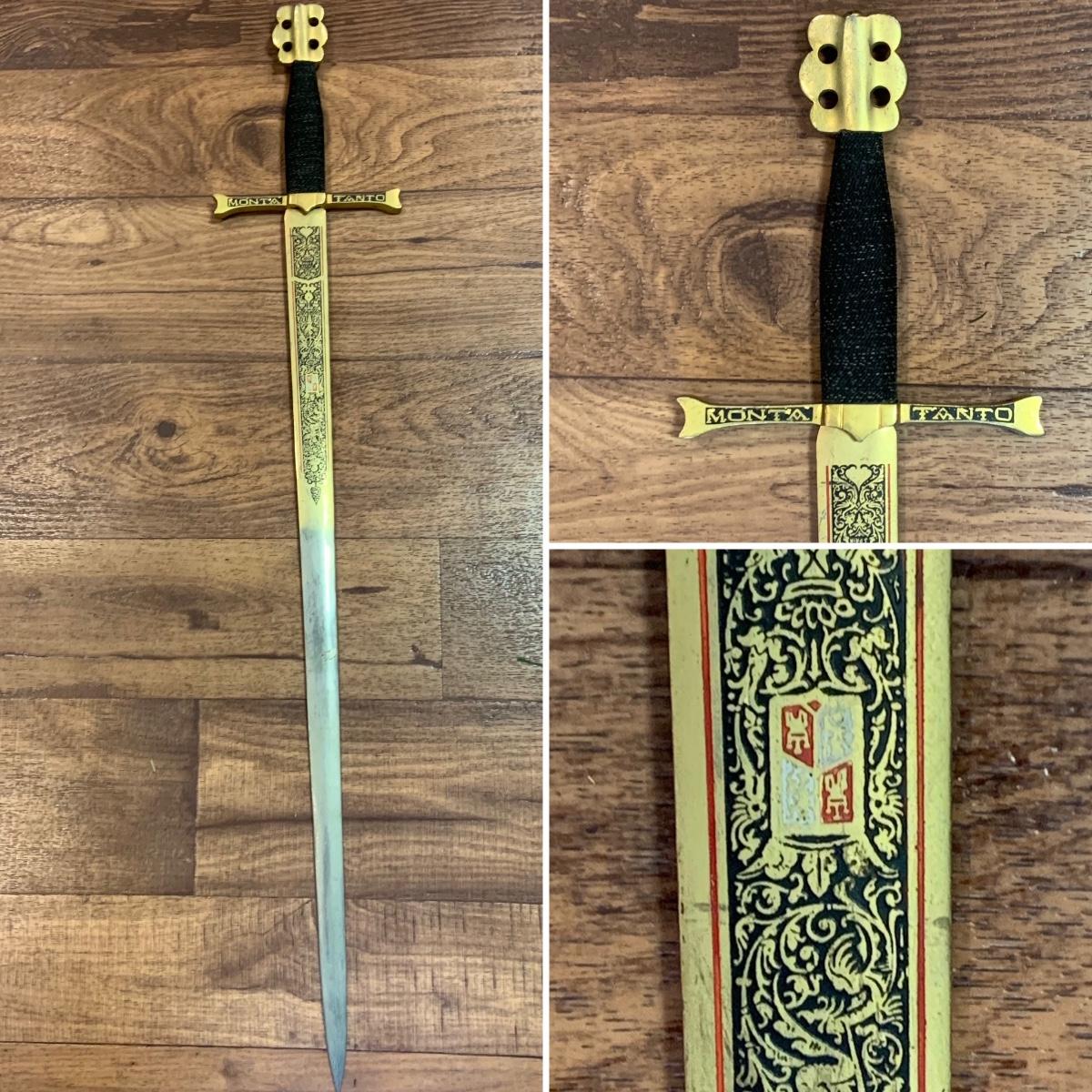 LOT:281: Vintage Decorative Tanto Monta Kings Gold Colored Long Sword - Toledo Spain