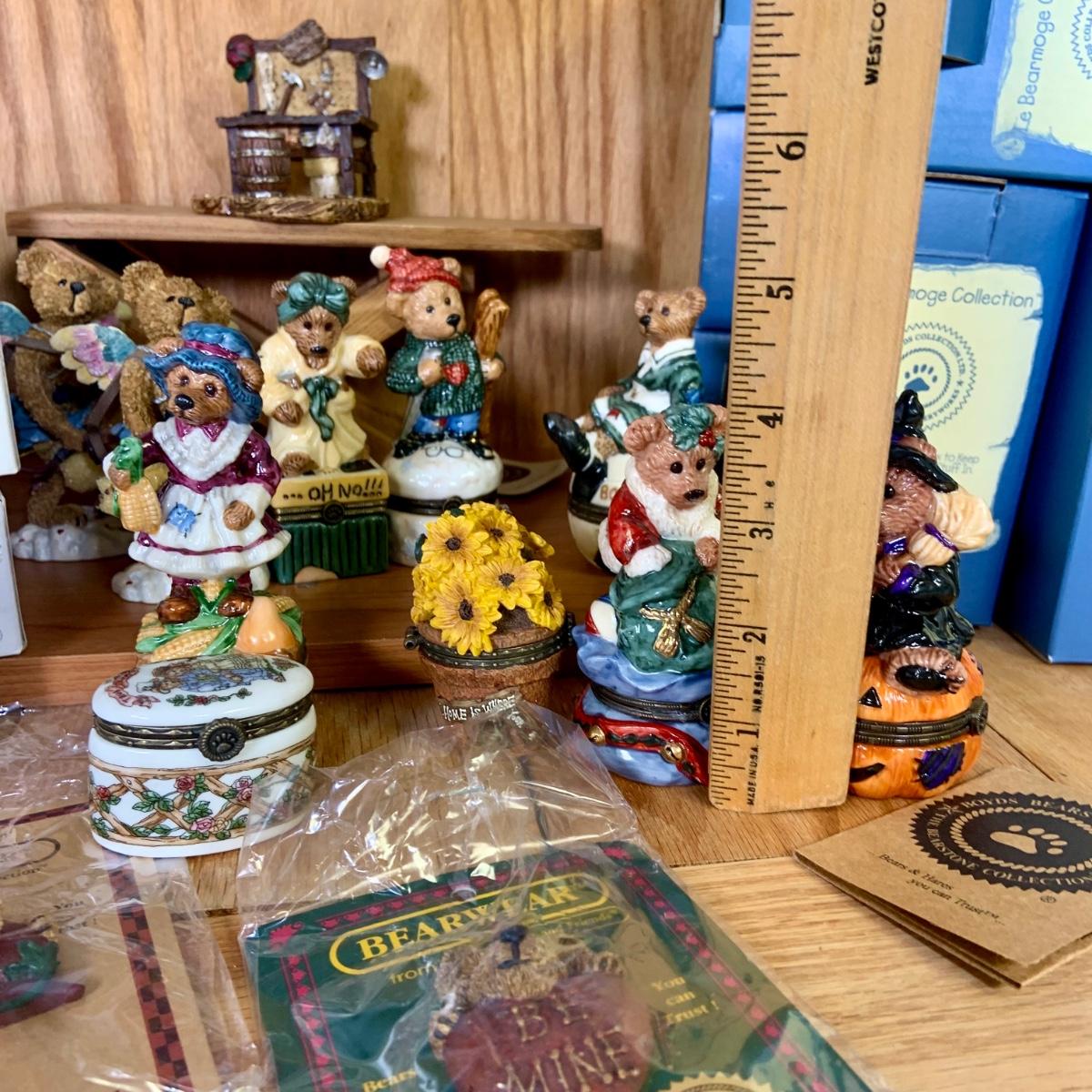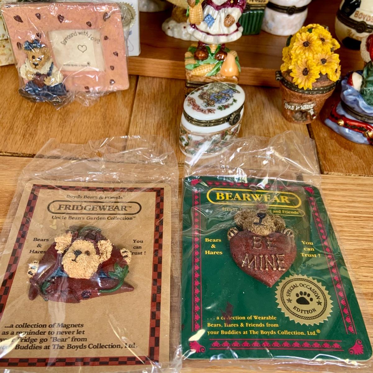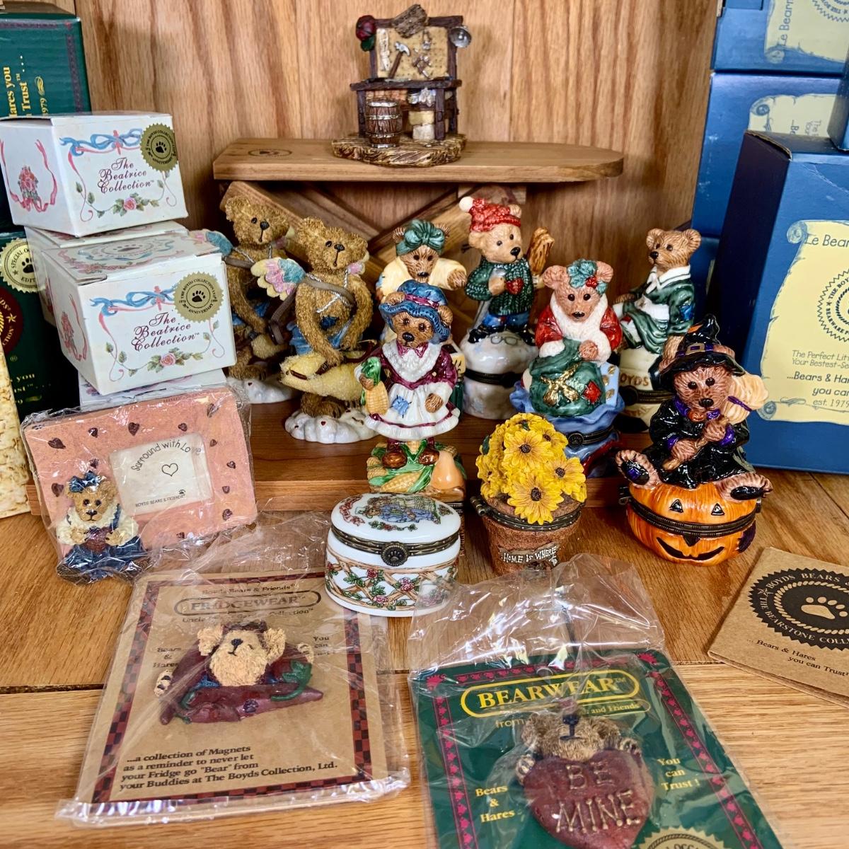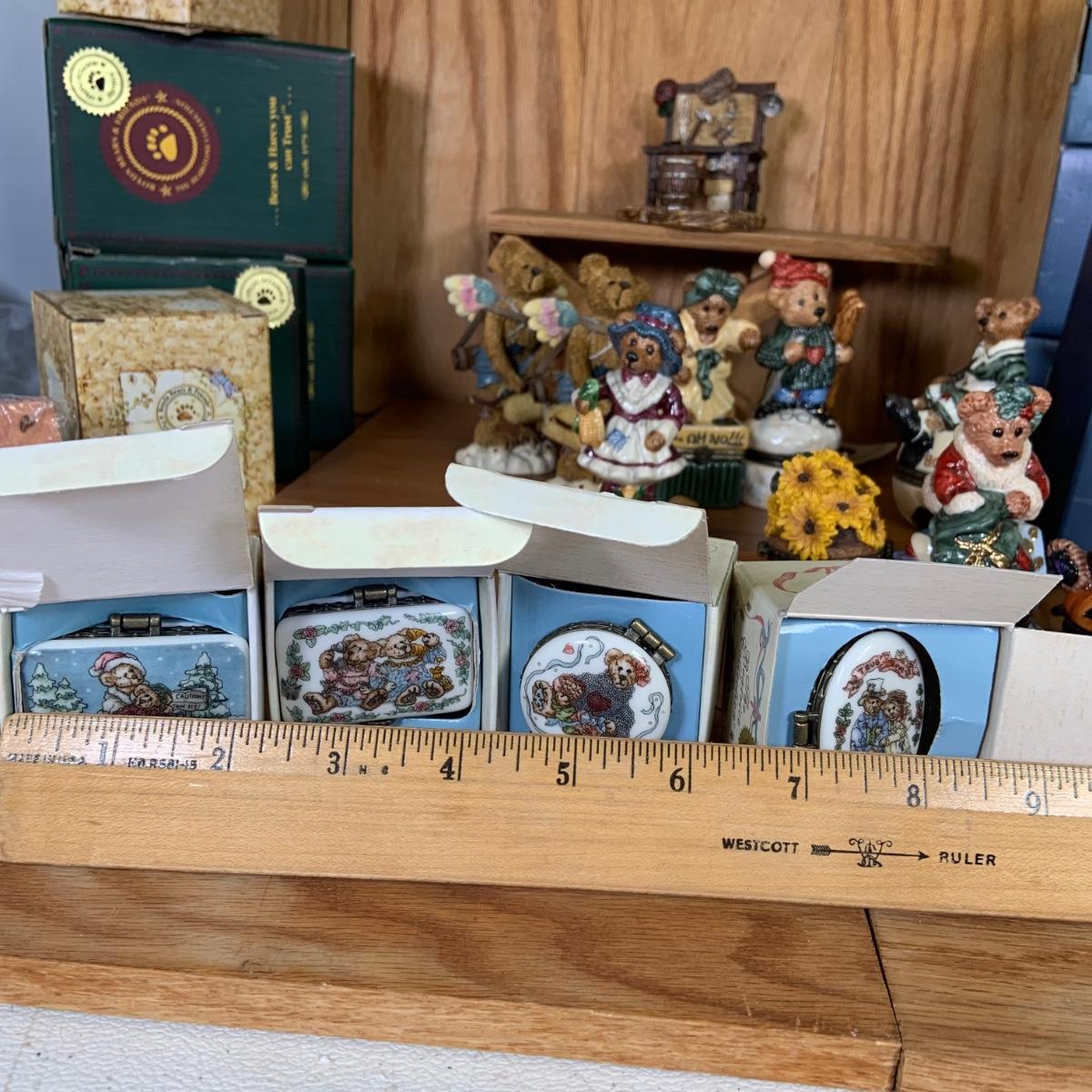 LOT:295: Boyds Bears Figurines, Trinket Boxes, Pins Magnets Miniature Ironing Board and More
