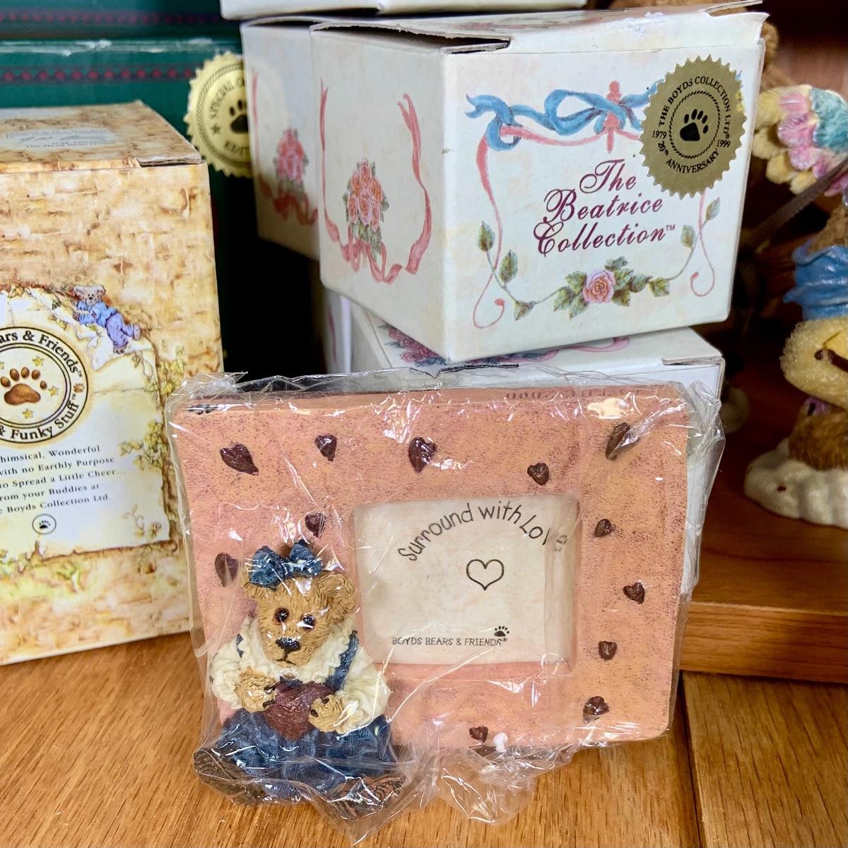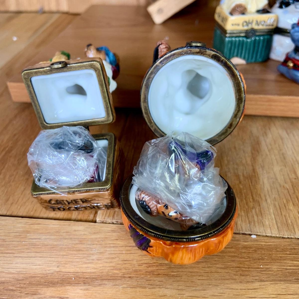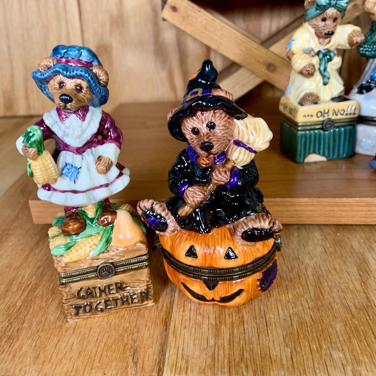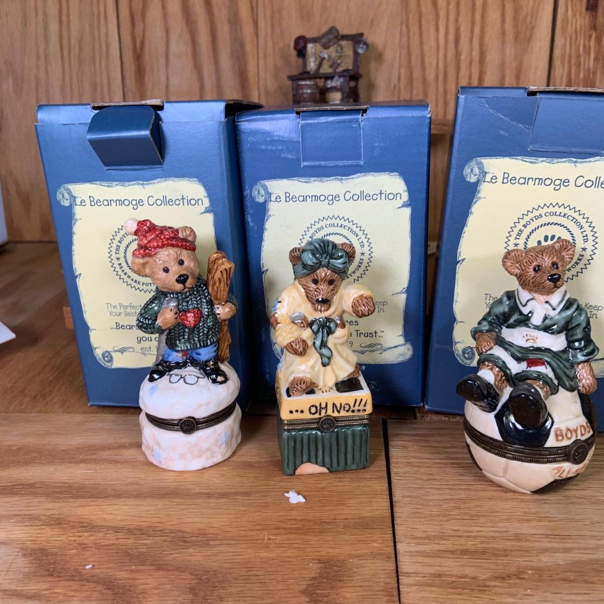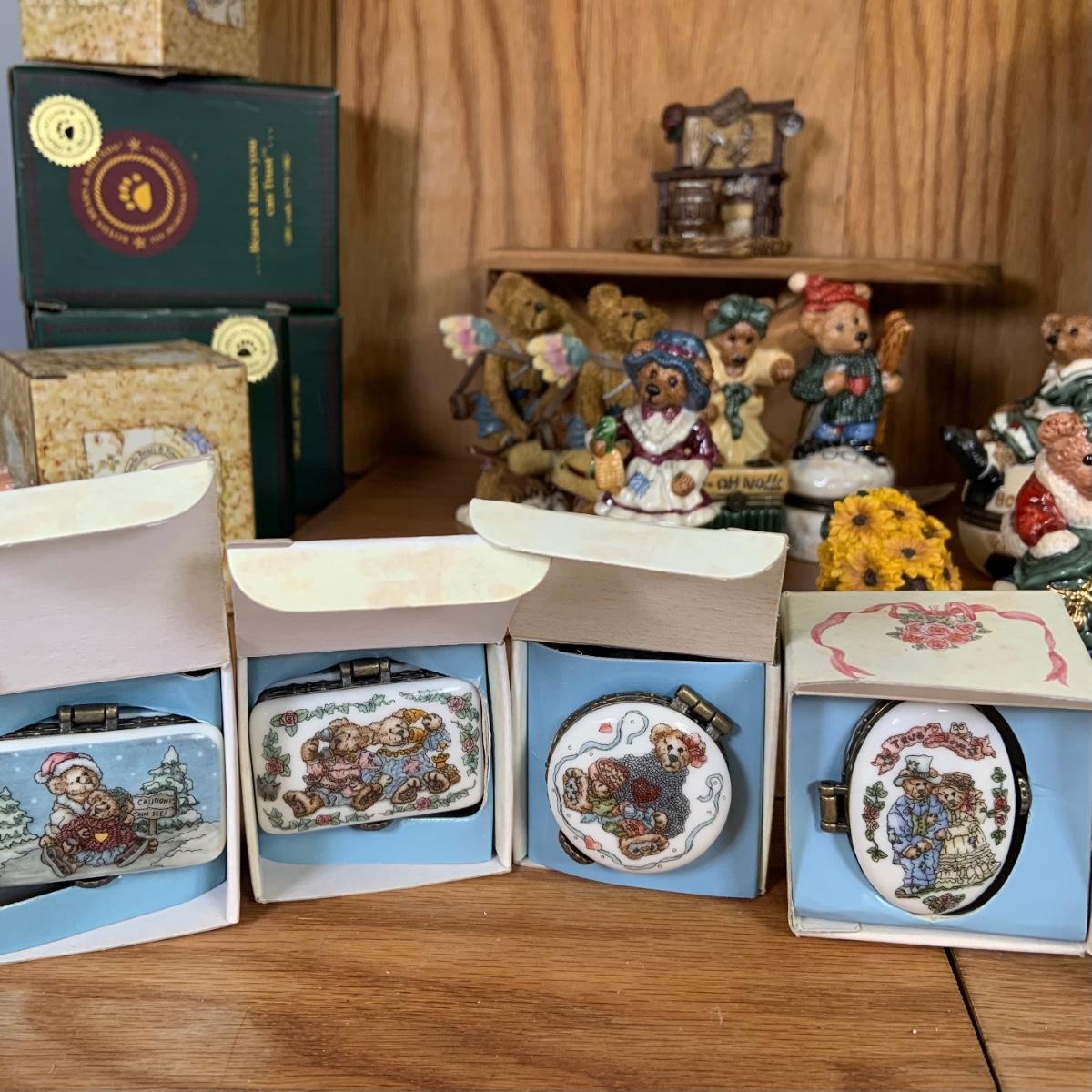 LOT:295: Boyds Bears Figurines, Trinket Boxes, Pins Magnets Miniature Ironing Board and More